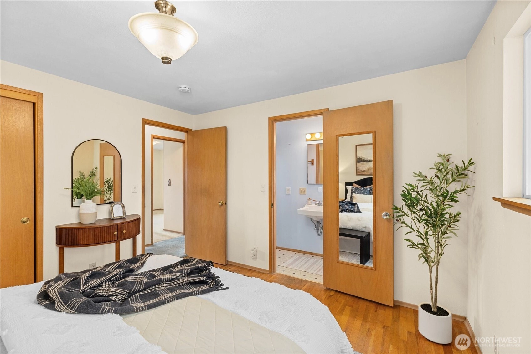Original owners are leaving this amazing Shoreline gem behind, it awaits your finishing touches. Lovingly cared for and well maintained throughout the years. Upstairs, the hidden gem is the original hardwood floors under the carpet(!) and you'll find a spacious family room complete with a fireplace, formal dining area and back deck access while the kitchen boasts an eating nook and new vinyl plank floors. Down the hall, 2 large guest rooms, full guest bath and primary bedroom with it's own .75. Downstairs you'll find additional family space complete with a wet bar, .25 bath and back patio/yard access. The lot is huge, flat, well maintained and gets plenty of light. We are close to light rail, shopping and highly rated Shoreline Schools