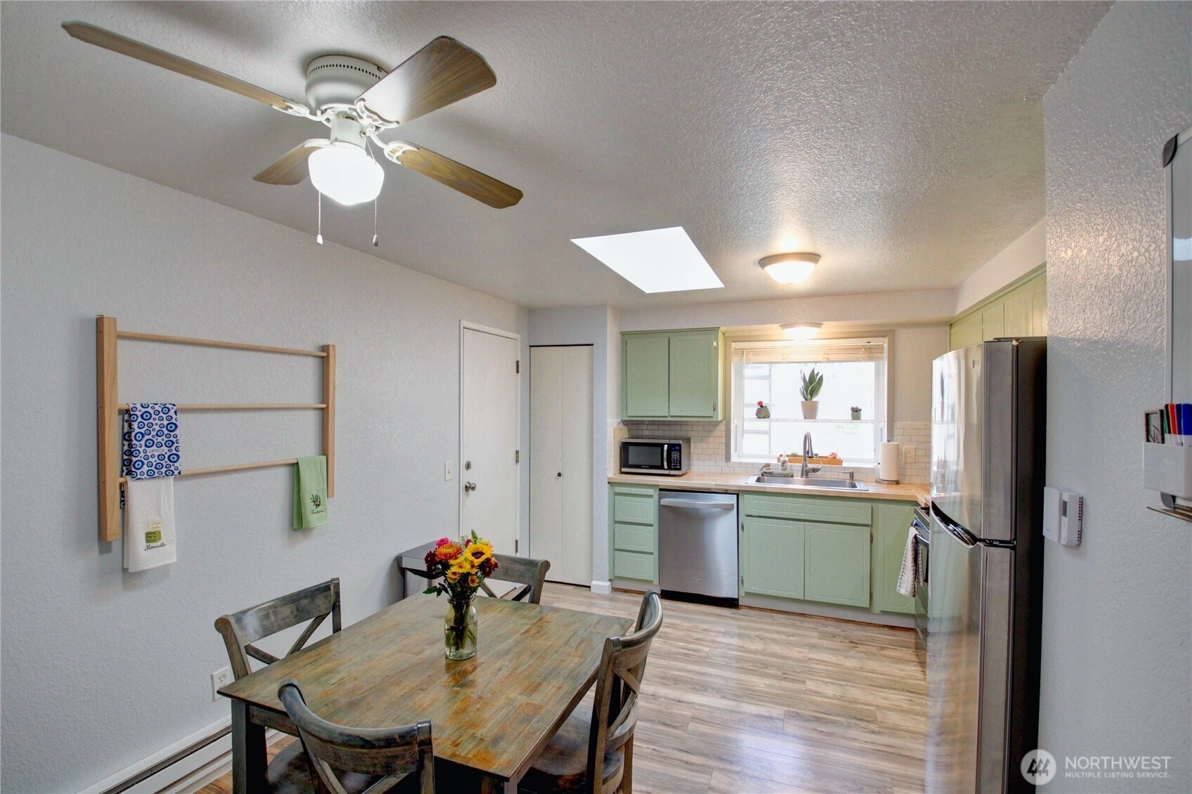 Welcome to your ideal single-story condo. This cozy home features 2 bedrooms, 1 bath, and a 1-car attached garage. Enjoy the warmth of a wood fireplace, with abundant light from two skylights brightening the space. Modern upgrades include luxury vinyl flooring, a newer roof and water heater, double-pane windows, and fresh paint. The updated kitchen is practical and stylish. Located just minutes from restaurants, parks, schools, and NAS Whidbey, this condo is both charming and convenient, offering an easy, relaxed lifestyle. Don’t miss your chance to make this wonderful condo your new home!