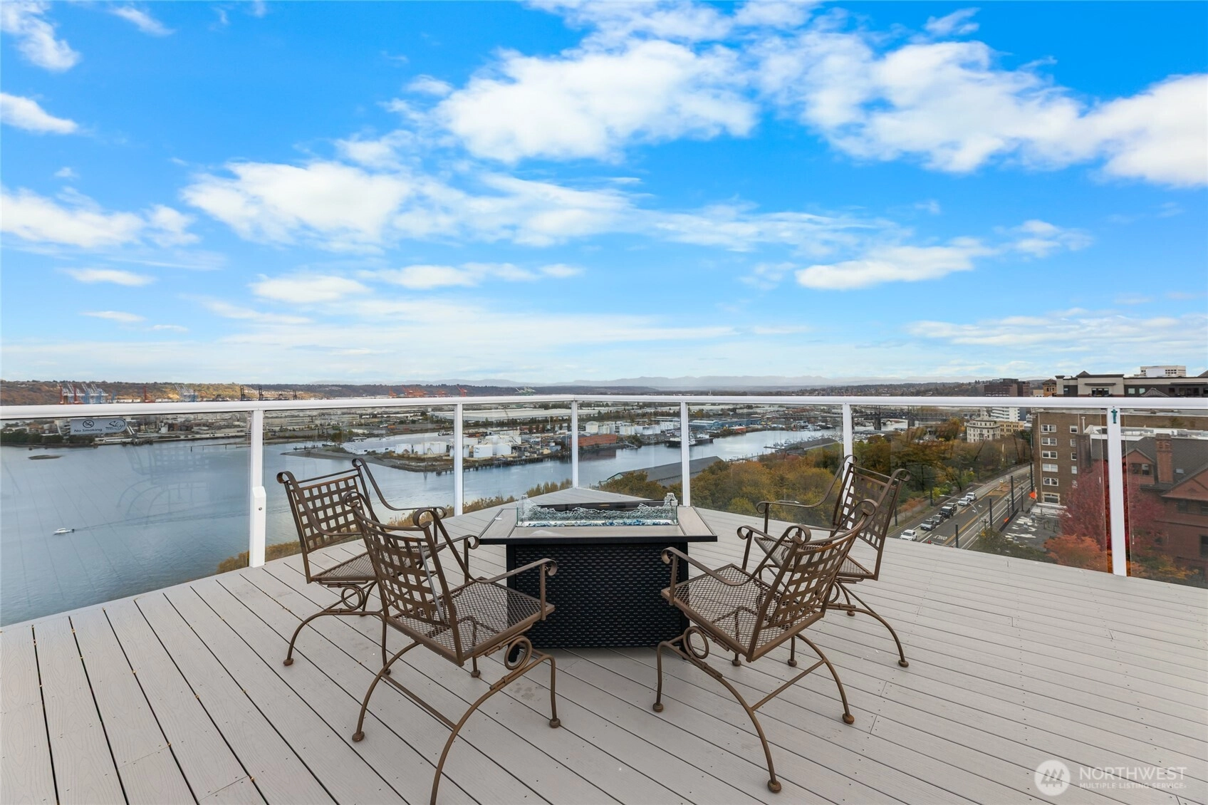 Prime location in Sky Terrace! Conveniently near the entrance, no stairs when coming from Broadway. Bright and open with windows overlooking Puget Sound, lush trees, and stunning Mount Rainier views from both the balcony and sliding window. Enjoy year-round comfort and easy access to Tacoma Light Rail, Wright Park, Stadium Thriftway, and neighborhood favorites like McMenamins and Antique Row. The rooftop patio offers 2700 sq ft of outdoor space with panoramic mountain, bay, and city views, perfect for BBQs or relaxing with friends. Includes assigned, gated parking and low HOA dues.