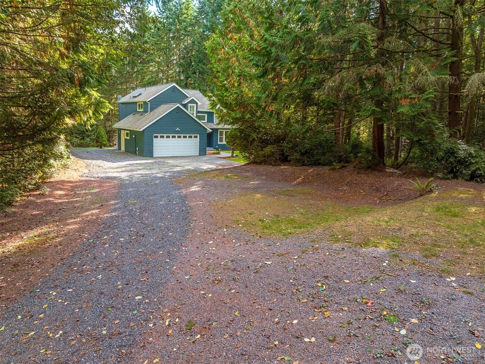 Nestled at the end of a quiet road in the heart of Suquamish, this gated 5.6-acre retreat offers unmatched privacy & serenity. Fully renovated in 2025, the home boasts Hardy plank siding, new solid plank flooring, new drywall, paint & trim, expansive windows that frame the surrounding timbered wonderland. Inside, granite countertops complement updated cabinets in both the kitchen & bathrooms. The new floors and a quartz-lined shower adds a modern sophistication. The luxurious five-piece master bath features a soaking tub & walk-in shower, creating a spa-like escape. Situated on 5.6 acres there is room for ADU or a detached garage. A desirable location near ferries, schools, and services, this property blends convenience with natural beauty.