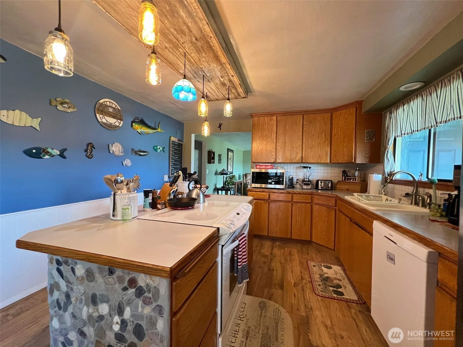 High above the fog, this beautiful home has a view of the top of Mt. Rainier and the Klickitat Valley! Fresh flooring, fresh kitchen, fun little hidden greenhouse and room for a large tribe this one is a keeper! The shop is large with a machine shed/open shop on one end and 2 stalls with hay storage on the other. Fenced and ready for a pony or three! Wonderful mature orchard and landscape. Adorable garden shed with a covered hot tub patio, chicken coop/condo and more! 8 outlets are generator friendly, there is a canning/cold room and the pellet stash can stay. This is Eagle country with several trees full of Eagles and their young. Do not miss this one, definitely one of a kind!