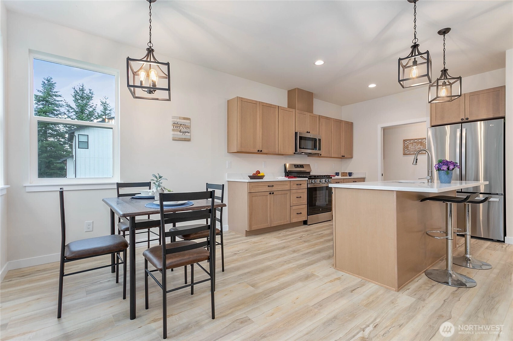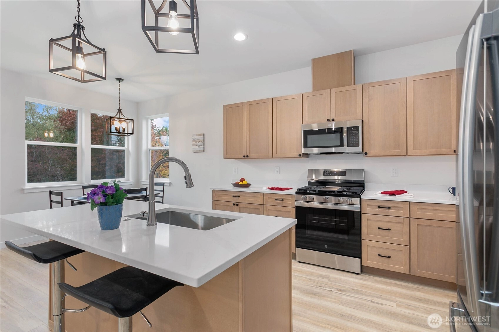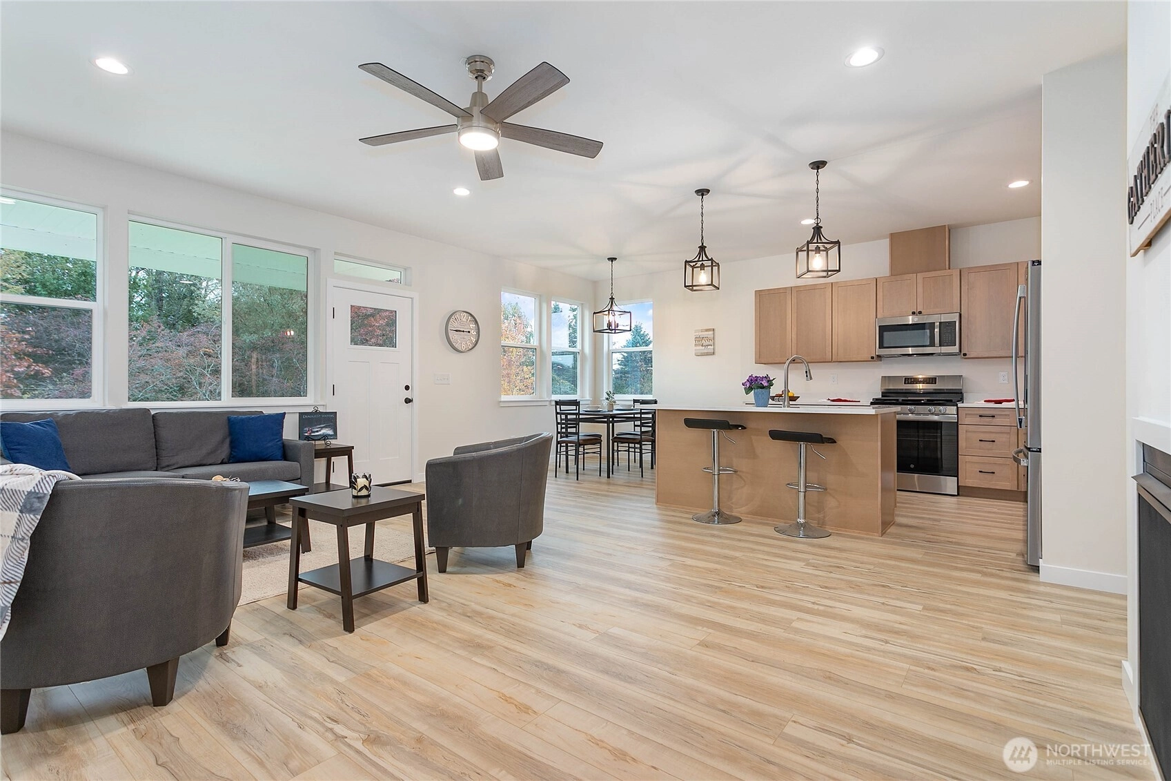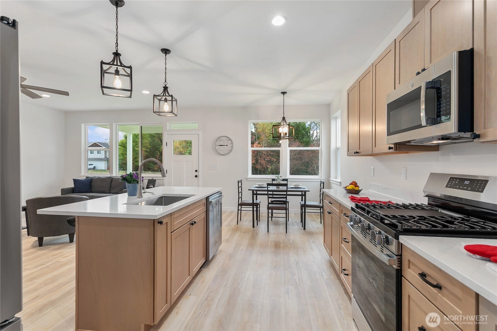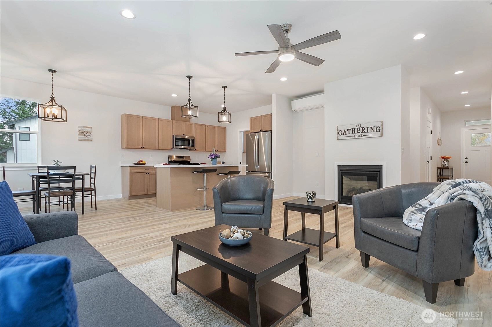 Stunning new construction home offers the perfect blend of modern design & comfortable living on a generous lot that provides endless possibilities for outdoor enjoyment. This beautiful home features an open concept that seamlessly connects the main living areas, creating a welcoming atmosphere that’s ideal for daily life and entertaining. Kitchen is fully equipped w/ SS appliances, quartz counters, big island & pantry. Large living room w/ a wall of windows brings in natural light thru out. Cozy fireplace brings warmth on those chilly evenings. Enjoy the large primary bedroom, walk-in closet & bathroom with gorgeous tile shower & dual sinks! Ductless mini splits in every room for added comfort and a large backyard w/ covered patio. WOW!