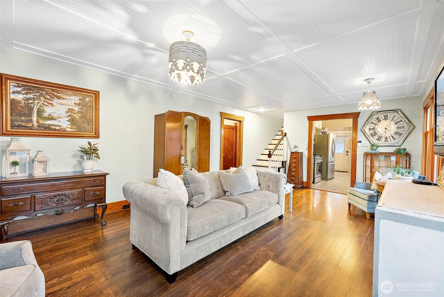 Discover the perfect combination of timeless charm, versatile living space, an extraordinary shop and a desirable location in the heart of Sumner in this centennial craftsman. A picture perfect covered porch welcomes you into this 4 bedroom 2 bath home with beautifully refinished hardwood floors, built-ins, an updated kitchen, character throughout and ample natural light. 2 bedrooms, a full bath and laundry all on the main level, a spacious loft and 3rd bedroom and bath upstairs, and a 4th bedroom plus a versatile den downstairs! A massive detached 3-car garage/shop provides all the space you need! Large stamped rear patio and fenced yard. Conveniently located just blocks from the Sounder, Sumner’s shops, dining, and easy freeway access.