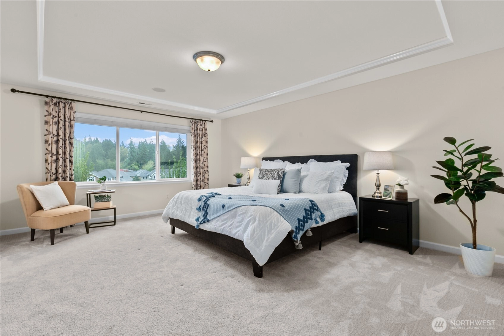 Welcome to this stunning 5 bdrm/2.75 former model home in Sienna Park. Offering 2,724 sq ft of beautifully designed living space. Spacious, open floor plan, a main floor office, & an upstairs bonus room. Gourmet kitchen with updated appliances, slab granite & hardwood flrs. Retreat to the lux primary suite, thoughtfully crafted, ideal for relaxation. Expansive windows & sliding doors flood the home w/natural light. Model home upgrades include A/C, full fence, blinds, & accent paint. Step outside to your private backyard oasis, complete w/patio & mature landscaping. Oversized 2-car garage for a home workshop/extra storage space plus EV charger. Close to Mill Creek Town Center, schools, Light Rail & easy access to I-5/405.