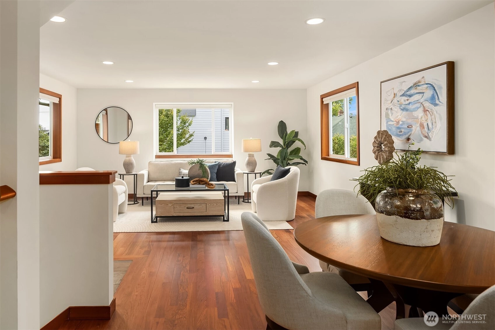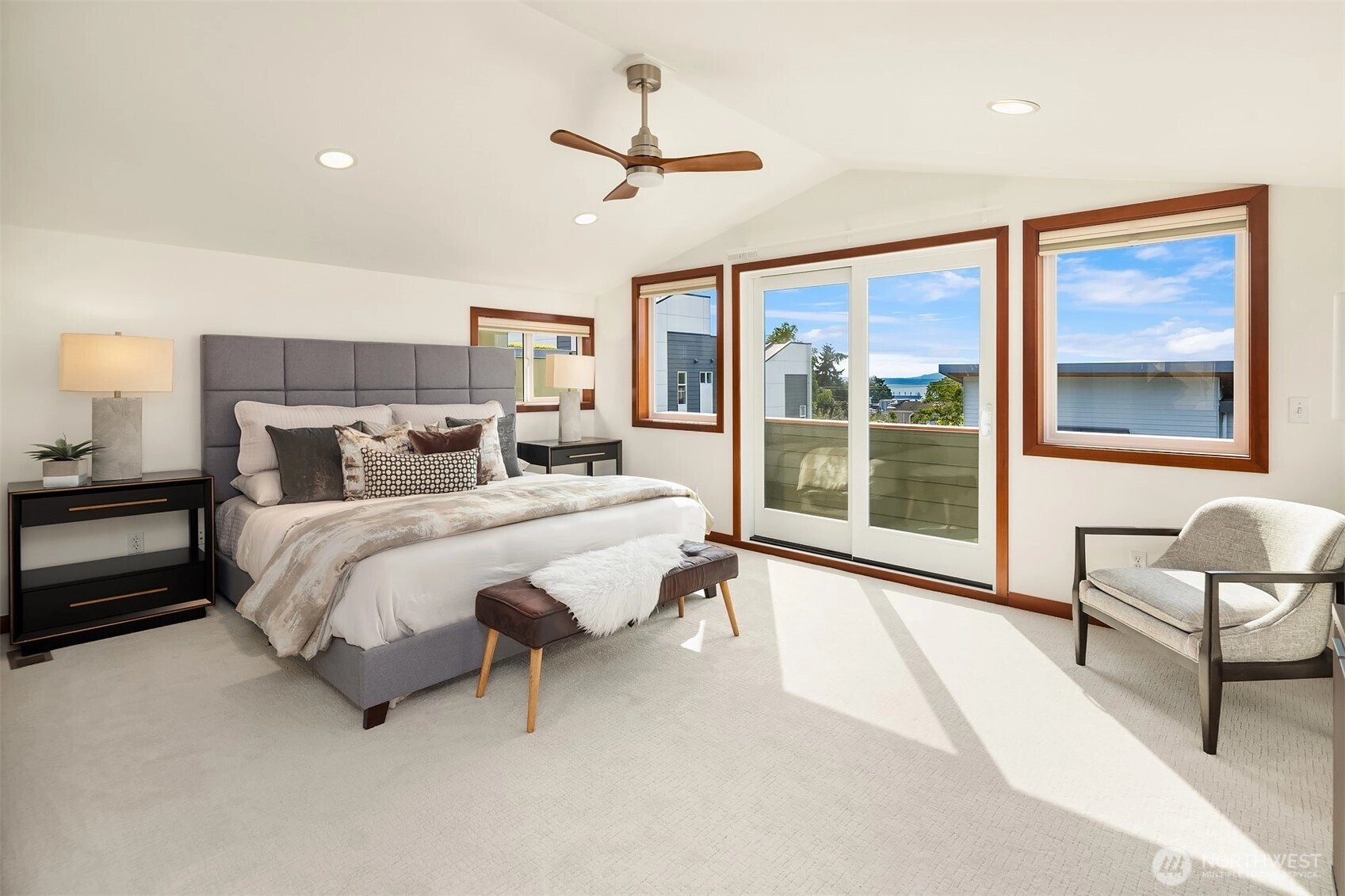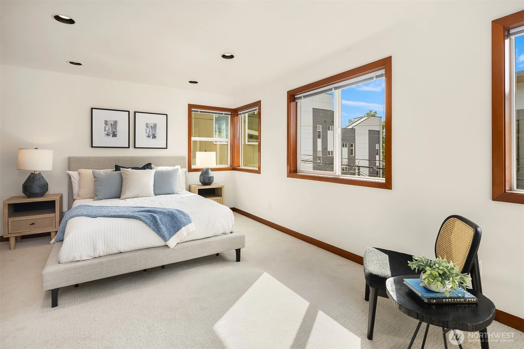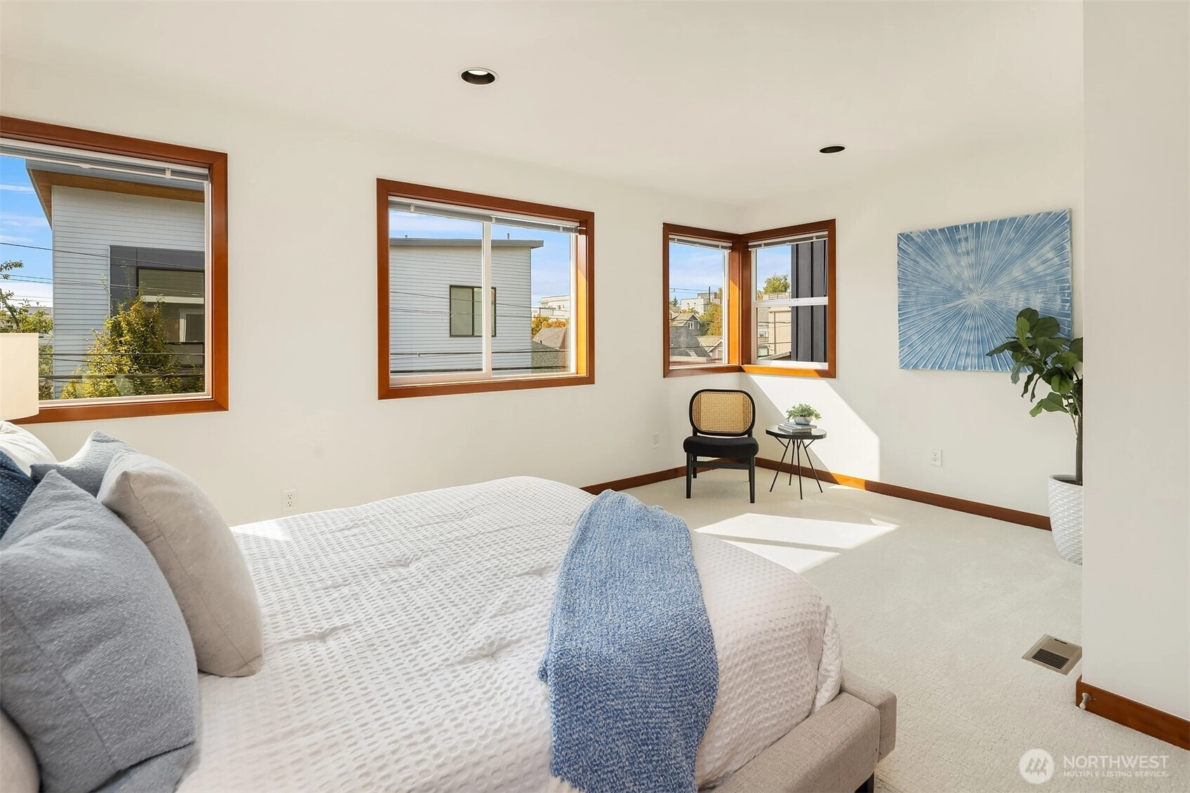 Majestically perched on the hills of Queen Anne with views of the Puget Sound & Olympic Mountains, this luxurious NW Contemporary single-family home has been meticulously maintained & recently upgraded in better than new turn-key condition! Spacious open design with grand windows & sophisticated finishes drenched in natural light. Main floor with slate entry, Brazilian hardwoods & stunning Cherry kitchen wrapped in granite with high-end appliances, peninsula bar & walk-in pantry. Penthouse primary with cathedral ceiling, full-length balcony & dream ensuite with soaking tub. Lavish new bath on 2nd floor + 4th bed with 2nd ensuite downstairs. Low-maintenance grounds with private garden patio. Garage with ample storage + driveway parking & AC!