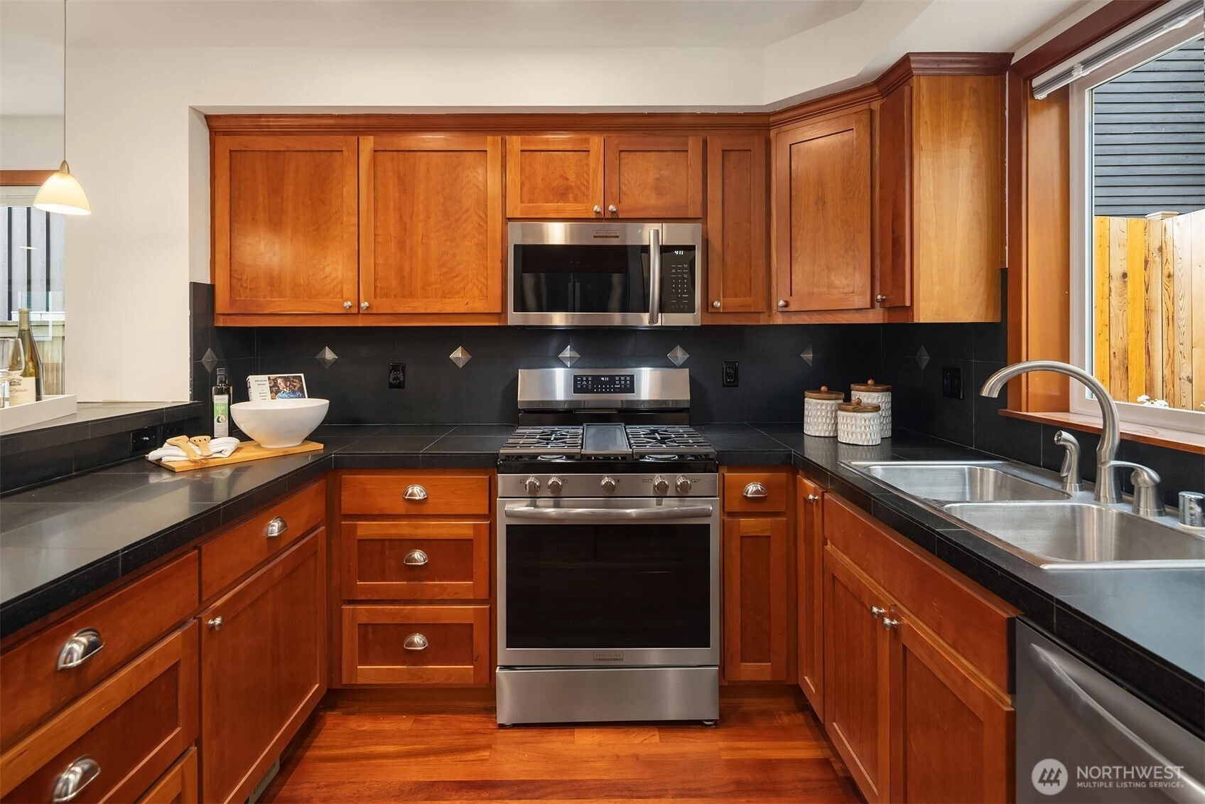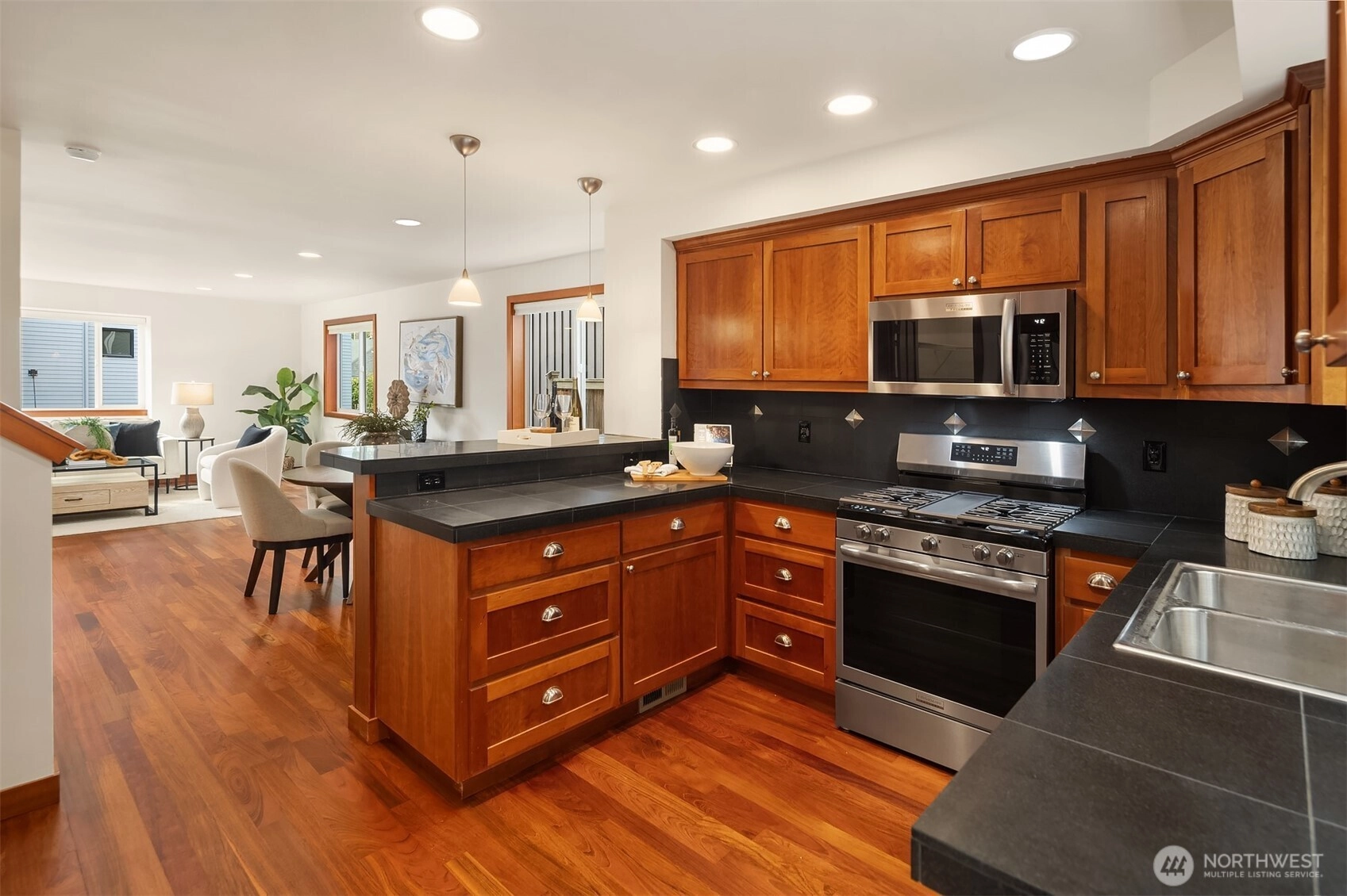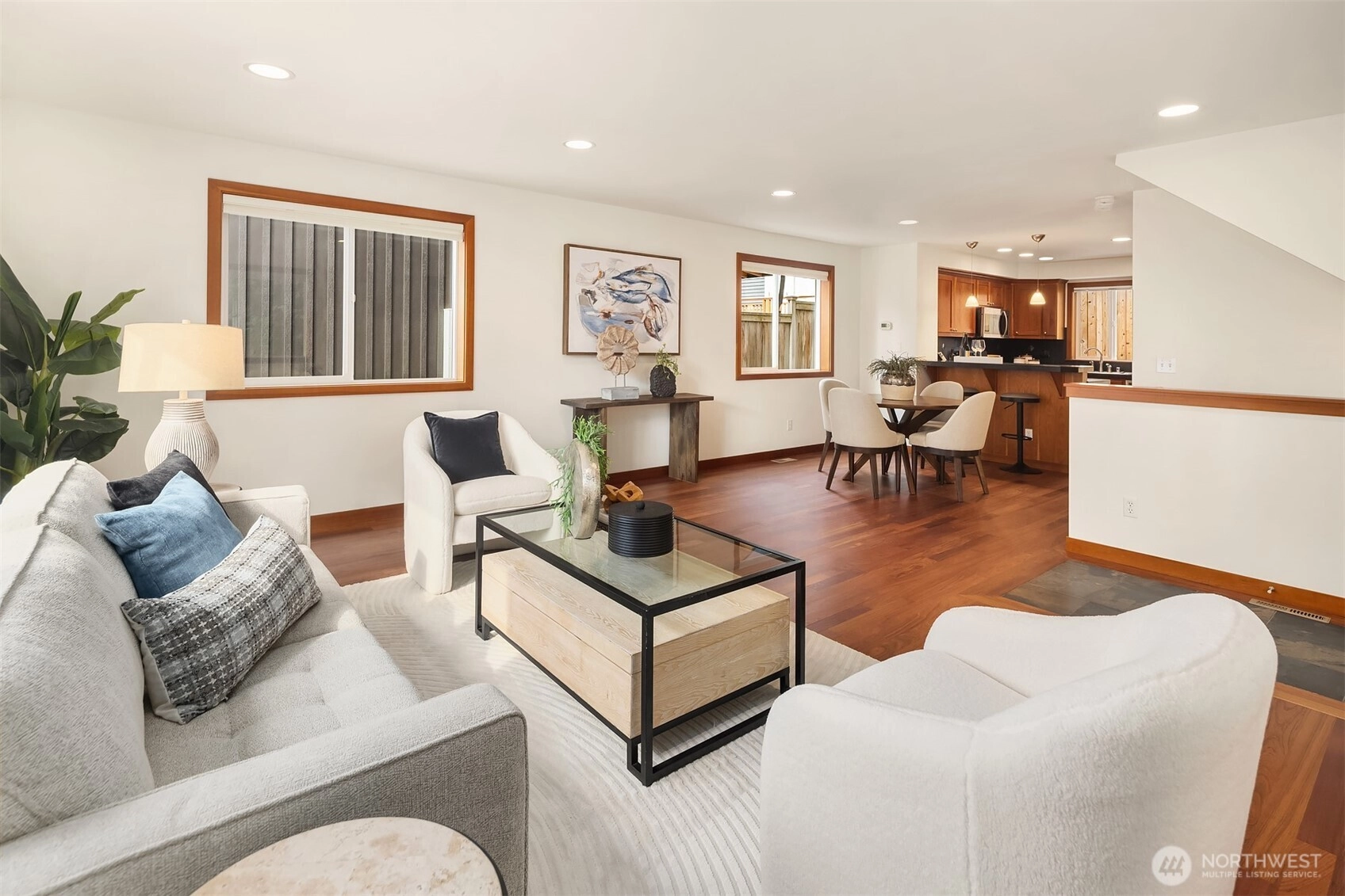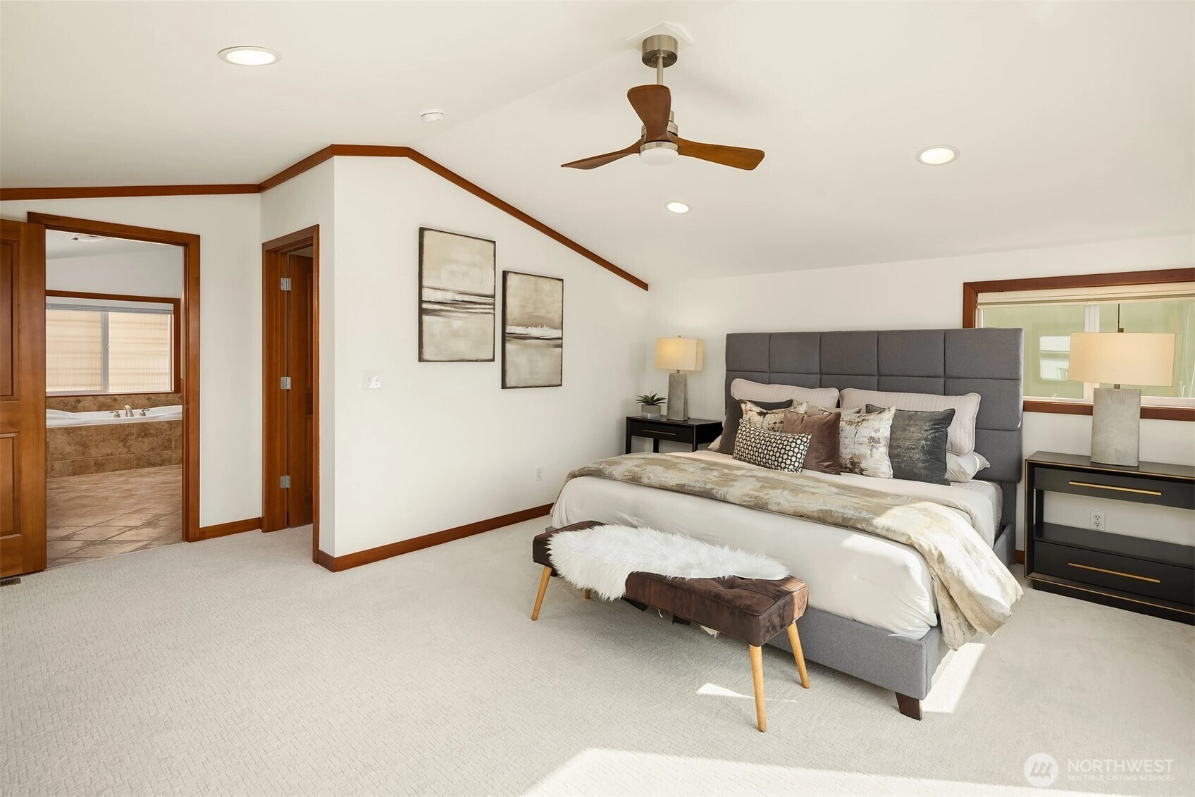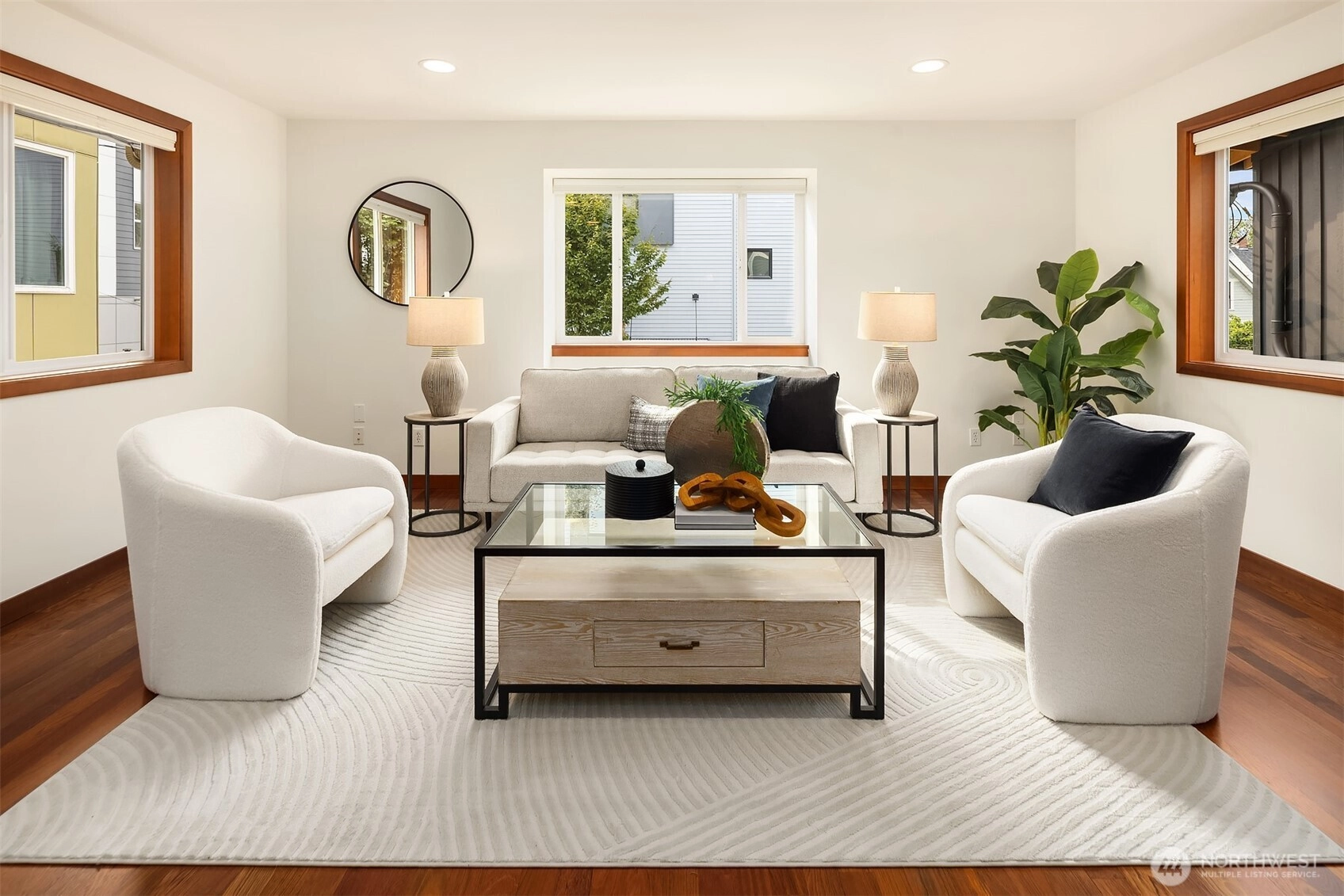 Majestically perched on the hills of Queen Anne with views of the Puget Sound & Olympic Mountains, this luxurious NW Contemporary single-family home has been meticulously maintained & recently upgraded in better than new turn-key condition! Spacious open design with grand windows & sophisticated finishes drenched in natural light. Main floor with slate entry, Brazilian hardwoods & stunning Cherry kitchen wrapped in granite with high-end appliances, peninsula bar & walk-in pantry. Penthouse primary with cathedral ceiling, full-length balcony & dream ensuite with soaking tub. Lavish new bath on 2nd floor + 4th bed with 2nd ensuite downstairs. Low-maintenance grounds with private garden patio. Garage with ample storage + driveway parking & AC!