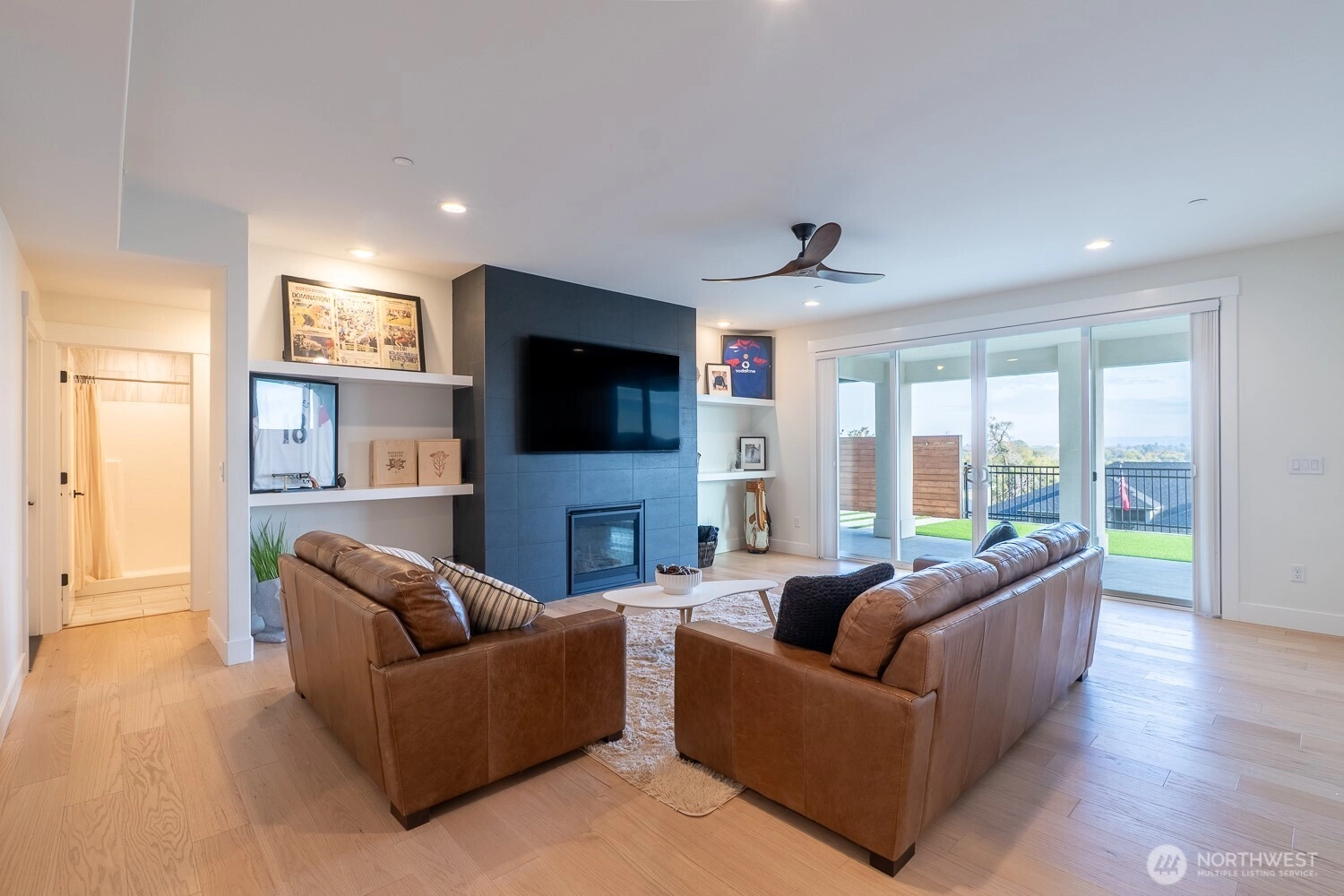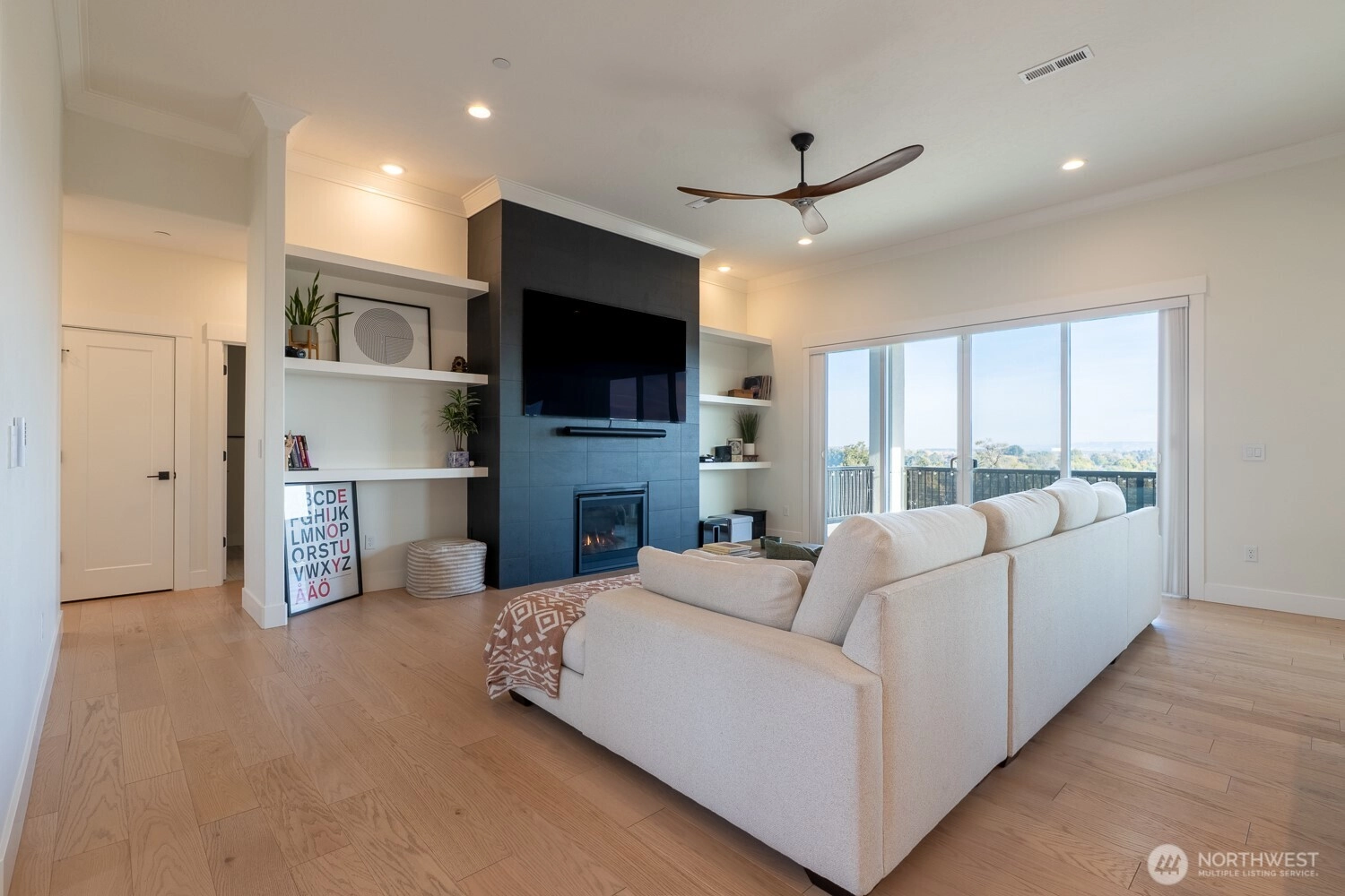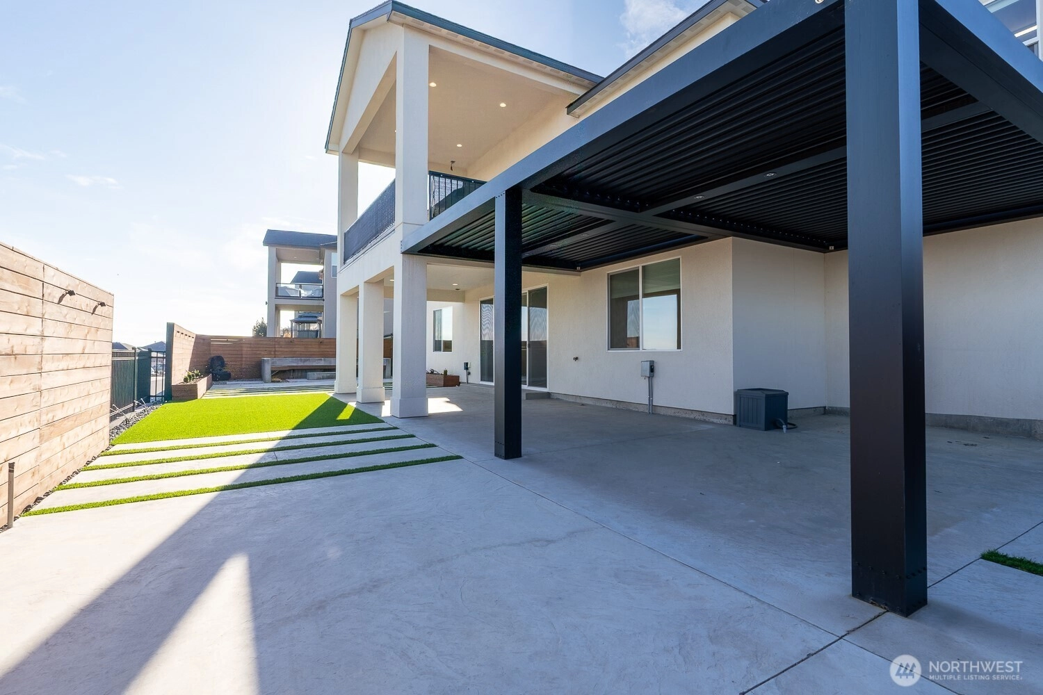 Experience refined style and everyday comfort in this 5 BD, 4 BA home with a walk-out basement and sweeping Yakima River views. The light-filled main level features open-concept living with a floor-to-ceiling tiled fireplace and a gourmet kitchen with quartz counters, large island, stainless appliances, corner pantry, and under-cabinet lighting. LVP flooring flows throughout. Dual primary suites offer flexibility for guests or multi-generational living. Enjoy smart Lutron controls, custom office, and an entertainer’s backyard with engineered retaining wall, StruXure pergola, fire pit, hardscaping, planter boxes, and hookups for hot tub or outdoor kitchen.