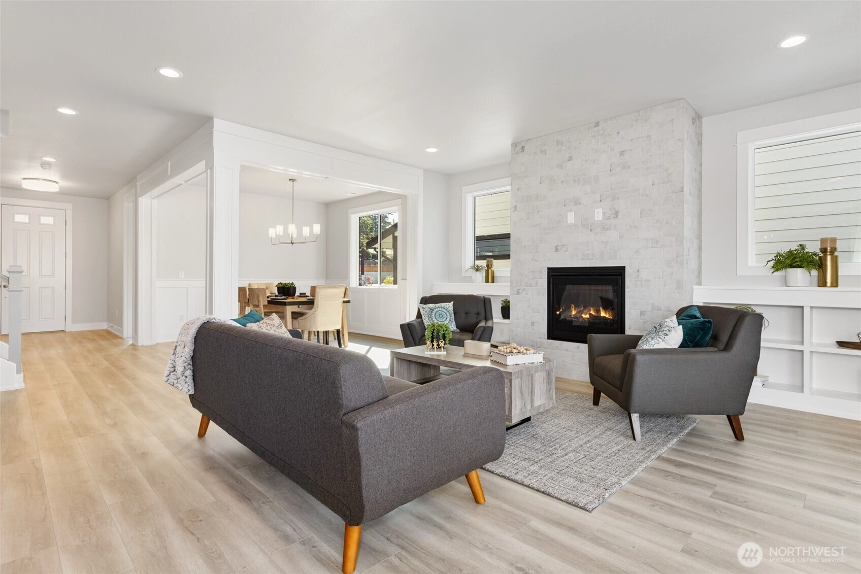 FINAL OPPORTUNITY! Luxury 5-bed Azure NW new construction w/ complete mother-in-law suite in Edgewood WA. This stunning 4,080sf home features gourmet kitchen w/ stainless appliances, quartz counters, oversized island & walk-in pantry. Open great room w/ gas fireplace flows to covered outdoor living space w/ fireplace—perfect for year-round entertaining. Primary suite w/ vaulted ceilings includes spa bath, soaking tub & walk-in closet w/ custom built-in organizer. Complete lower level suite w/ kitchenette, bedroom, full bath & living room—ideal for multi-generational living, guests, or rental income. 5 bed | 4 bath | 2024 build | Heat pump & AC | 2-car garage | Fenced yard | No HOA | Near shopping, schools, JBLM & I-5. Move-in ready!