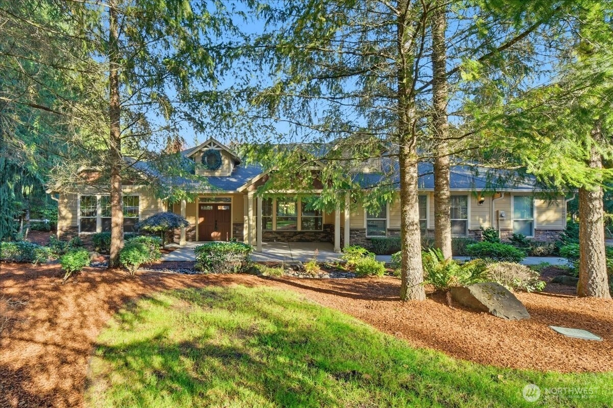 Welcome to your dream home! This stunning 3-bedroom, 2.5-bath residence is beautifully situated on 1.4 acres of lush landscaping, offering both privacy and tranquility. Enjoy a bright and airy open floor plan with a cozy bonus room/office, perfect for remote work or gatherings. The gourmet kitchen features stainless steel appliances, elegant cabinetry, and a spacious island ideal for entertaining. A stunning stone fireplace creates a warm centerpiece in the living room, complemented by large windows that invite natural light and serene outdoor views. Step outside to discover a beautifully landscaped yard, perfect for summer barbecues or relaxing in nature. Don’t miss this incredible opportunity to create lasting memories!
