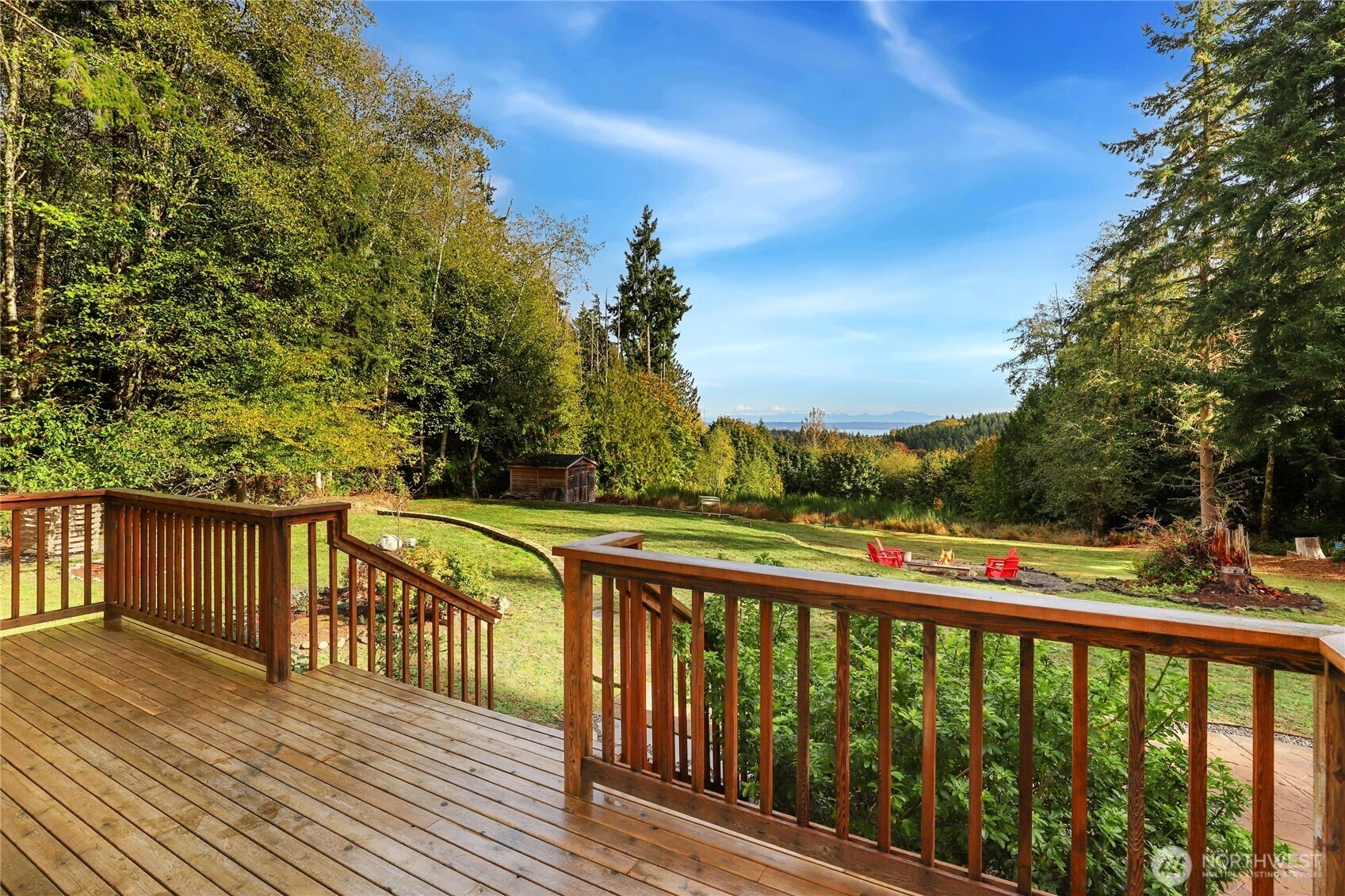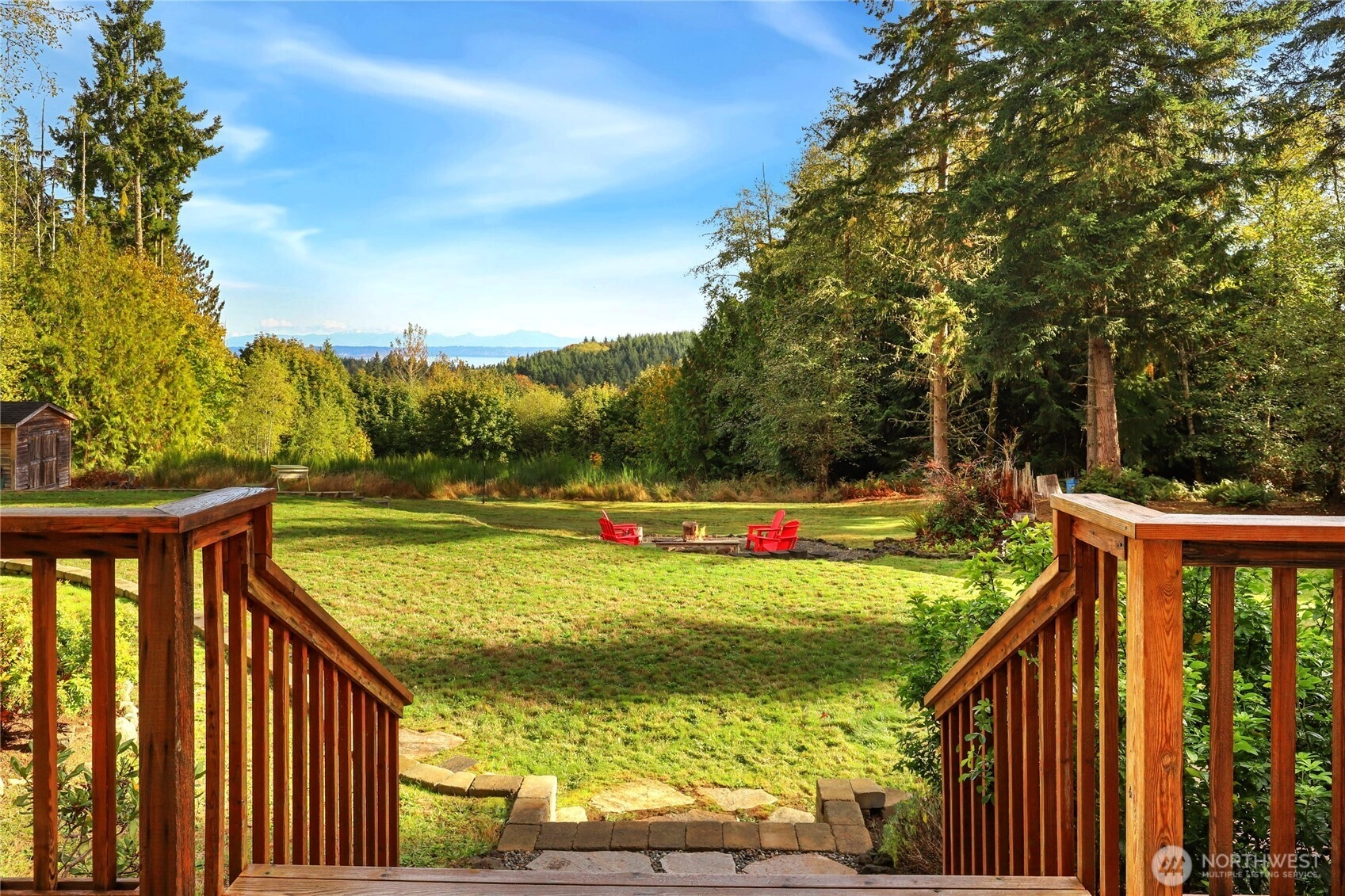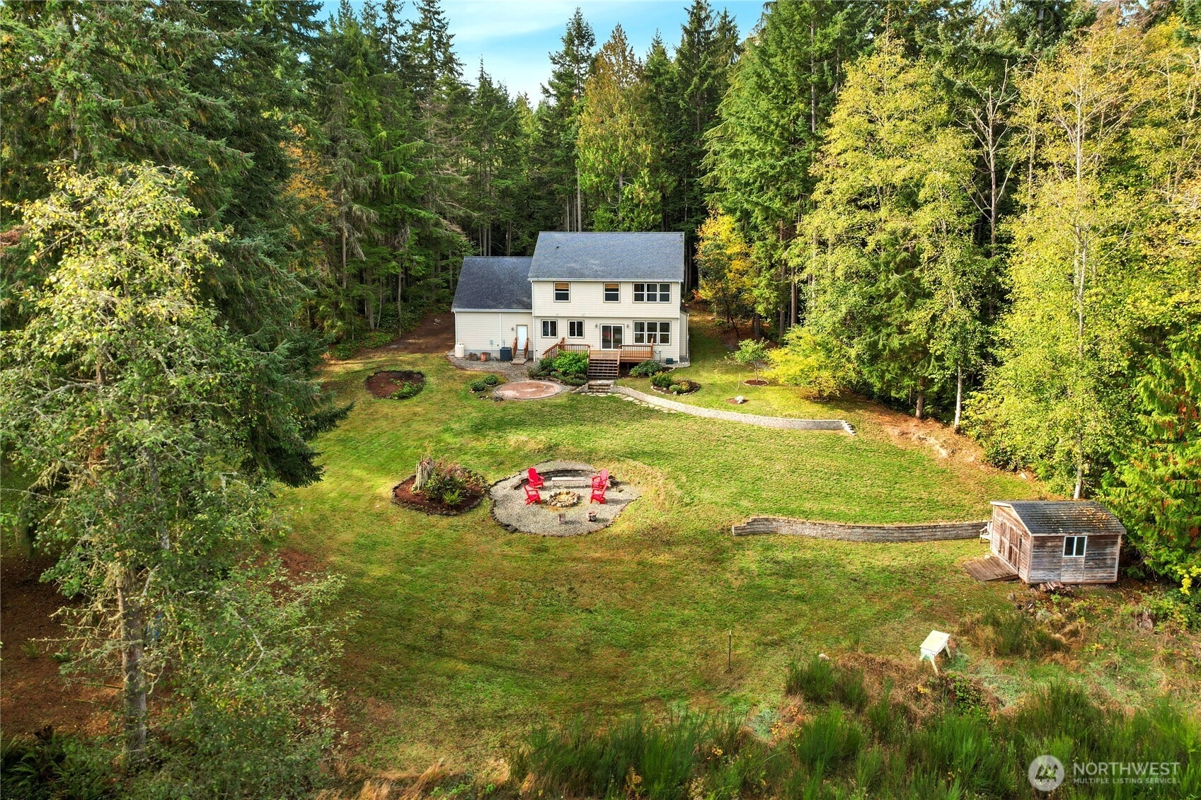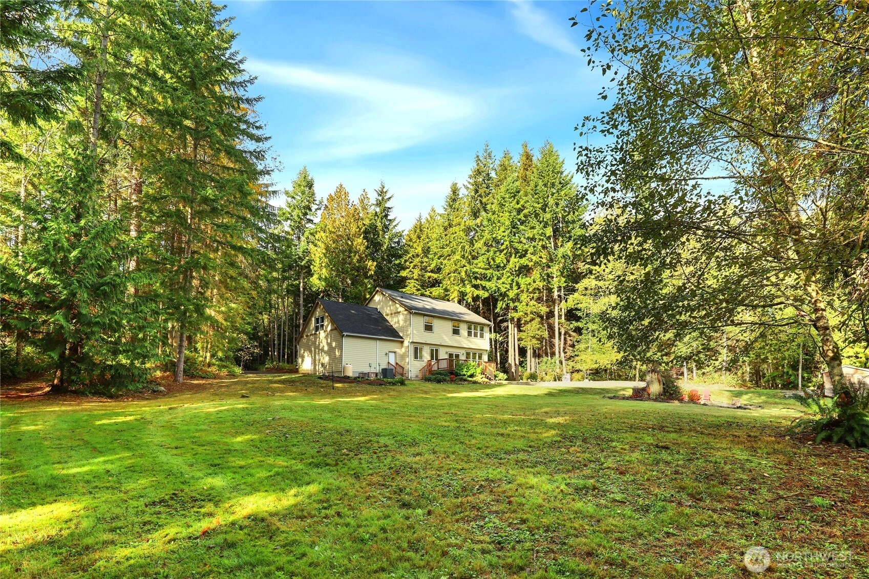 Private & peaceful 5.5-acre retreat only minutes to Kingston waterfront & ferry. Nearly 3,000 sq ft home showcases lovely Mountain & Sound views, plus quintessential charming covered front porch. Inviting foyer anchored by welcoming staircase sets the tone for a spacious traditional interior. Main level open layout includes living room & great room w/gas fireplace, view windows, & slider to freshly stained deck. Entertainers will enjoy formal dining room, butler’s pantry & expansive eat-in kitchen w/ island, newer appliances & ample cabinetry. Upstairs find all 4 bedrooms + bonus room including primary suite w/vaulted ceiling, WIC & full bath. Fiber optic cable provides top-speed connectivity! For Hobby Farmers & Gardeners a dream canvas!