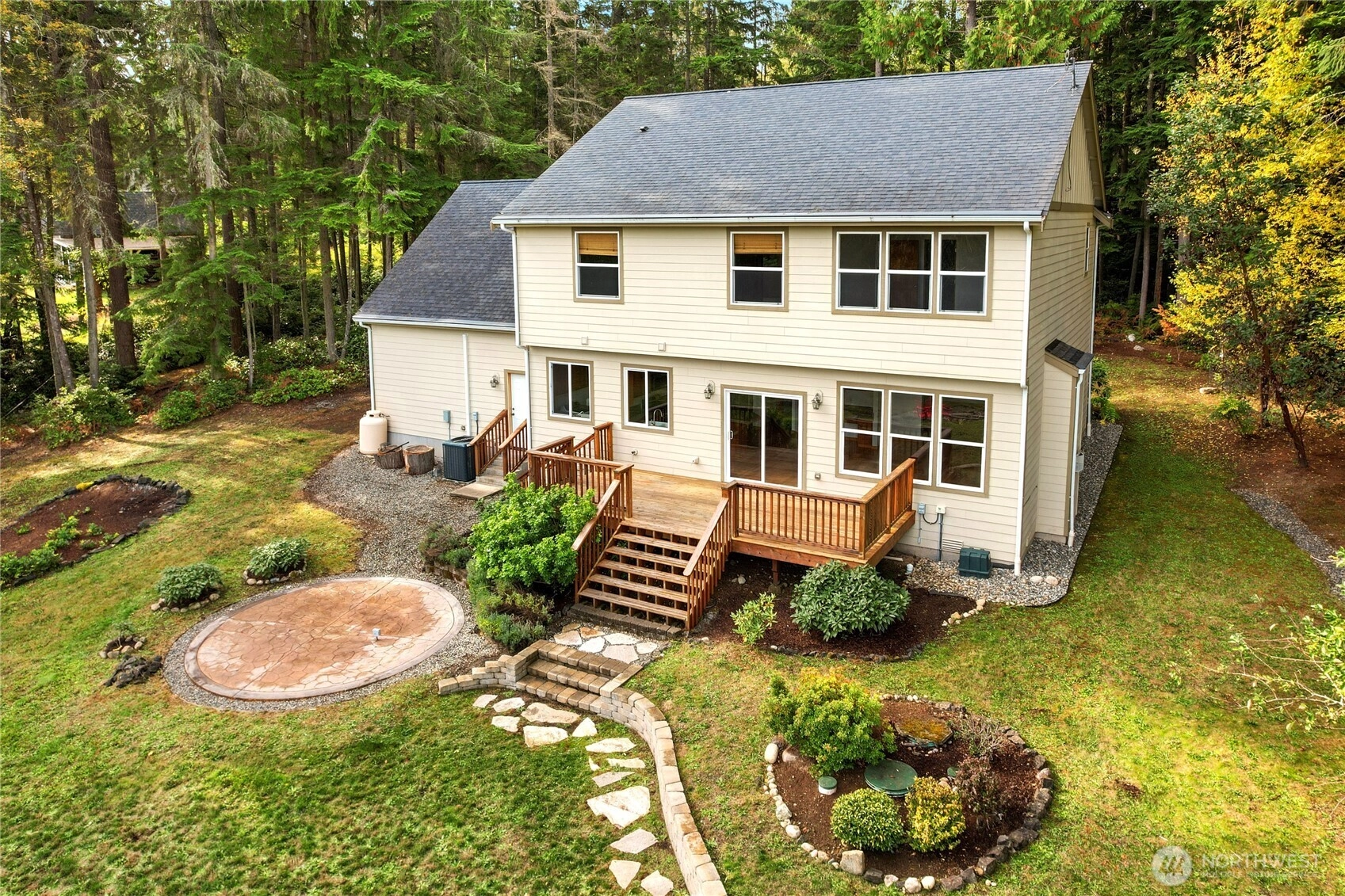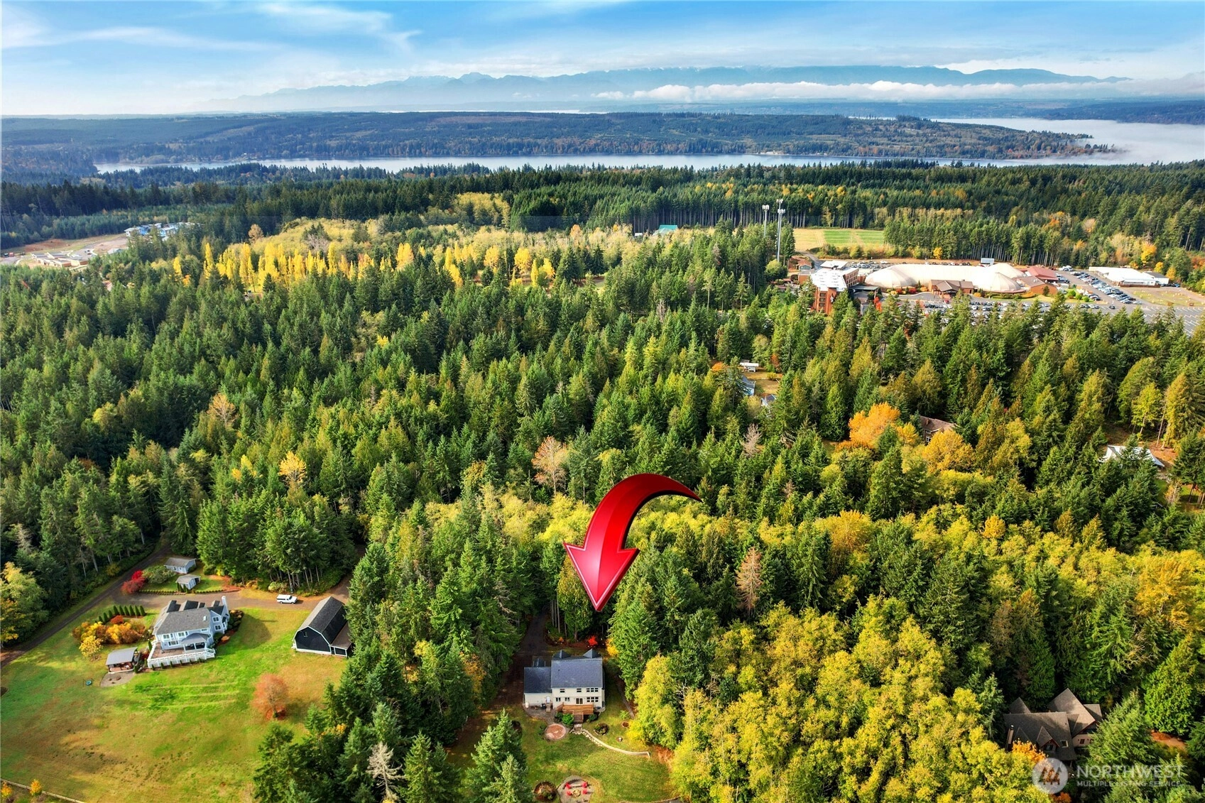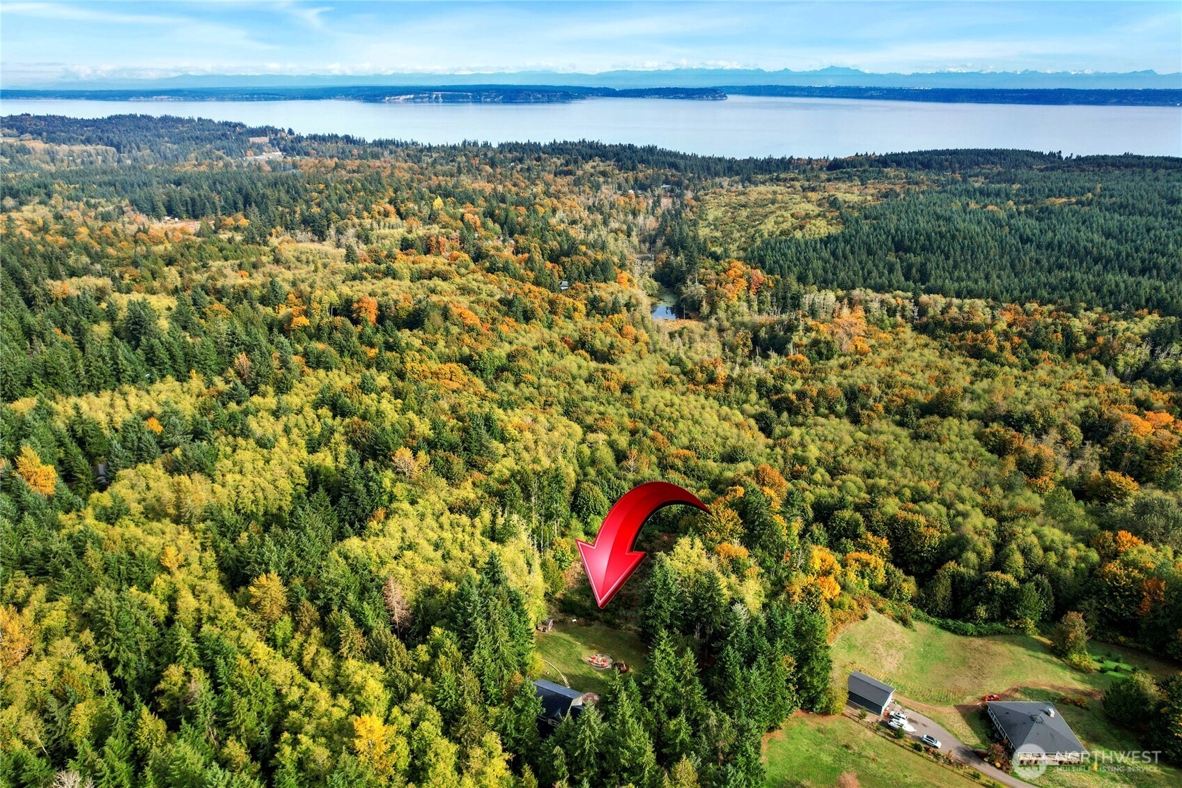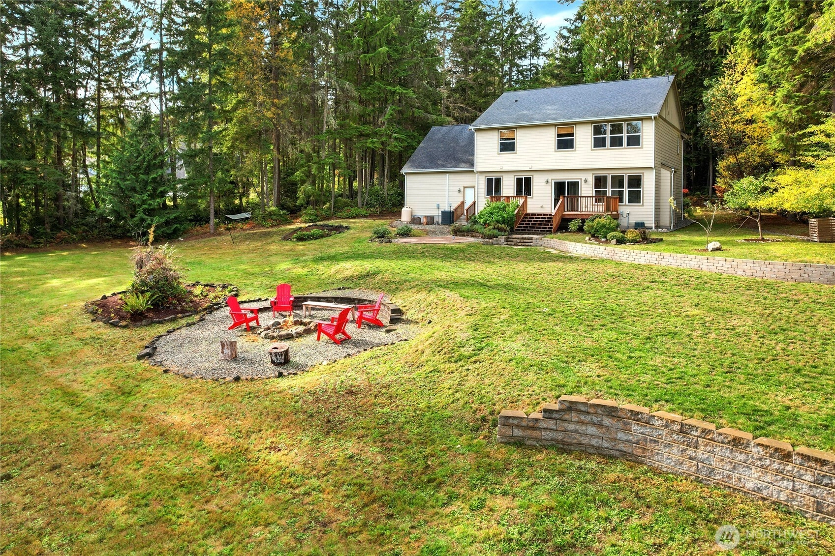Private & peaceful 5.5-acre retreat only minutes to Kingston waterfront & ferry. Nearly 3,000 sq ft home showcases lovely Mountain & Sound views, plus quintessential charming covered front porch. Inviting foyer anchored by welcoming staircase sets the tone for a spacious traditional interior. Main level open layout includes living room & great room w/gas fireplace, view windows, & slider to freshly stained deck. Entertainers will enjoy formal dining room, butler’s pantry & expansive eat-in kitchen w/ island, newer appliances & ample cabinetry. Upstairs find all 4 bedrooms + bonus room including primary suite w/vaulted ceiling, WIC & full bath. Fiber optic cable provides top-speed connectivity! For Hobby Farmers & Gardeners a dream canvas!