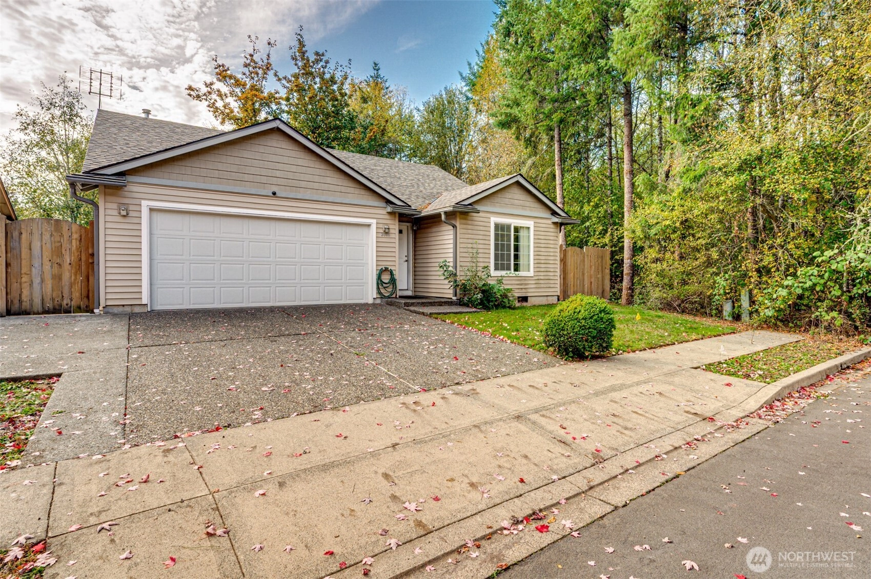 Discover this beautifully maintained single-level ranch in Parkview Trails! Tucked away on a quiet cul-de-sac backing to tranquil wetlands, it offers privacy and peaceful living. Featuring 3 bedrooms, 2 baths, and central air, this home is designed for comfort. The primary suite includes a walk-in shower, and the hallway laundry adds convenience. Enjoy the 21x7 covered patio, private partially fenced yard, and 12x10 shed—ideal for relaxing or entertaining. Appliances included! Updates include a 3-year-old 50-year roof, leaf guard gutters, and transferable warranty. A hardwired security system is ready for connection. Minutes from Downtown Battle Ground, parks, and shopping—this move-in ready gem blends small-town charm with modern ease.