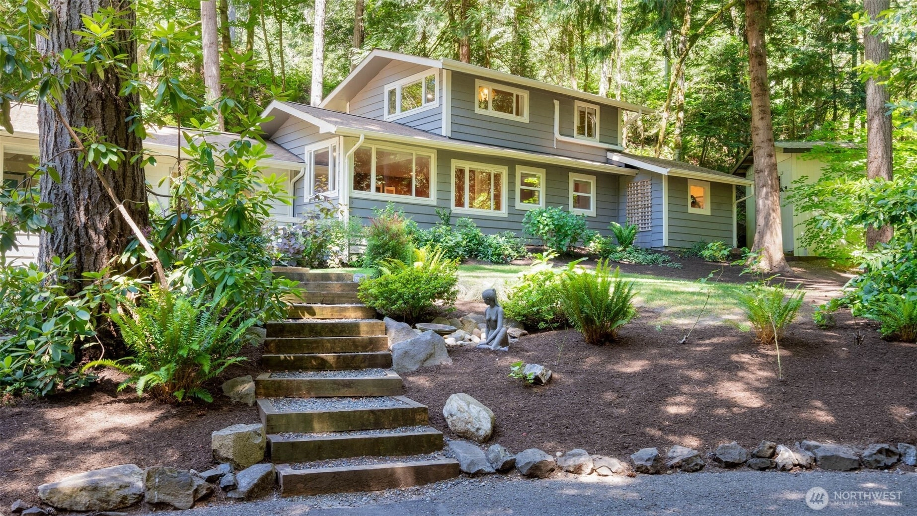 Tucked on a quiet road in a perfect Bainbridge Island location, this sprawling Baker Hill cottage offers a beautiful blend of tranquility & accessibility w spacious main level living. Two living spaces w separate entrances, perfect for multi-gen living or a creative work/live space. Airbnb? Sure! Take in the thoughtful updates with vintage charm. Entertain on the deck looking over the beautifully maintained & established park-like garden space. Just up the hill from charming Pleasant Beach Village shops and pool & minutes from Winslow shops/Seattle ferries. Public trails and beach access nearby. Relax in this soulful retreat and use the space to do it all.