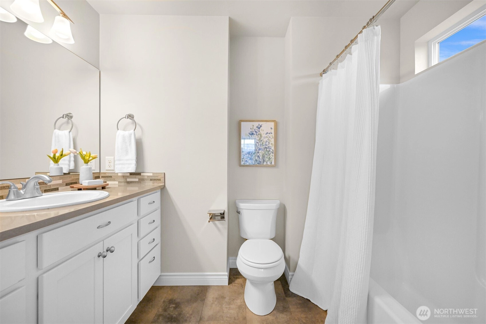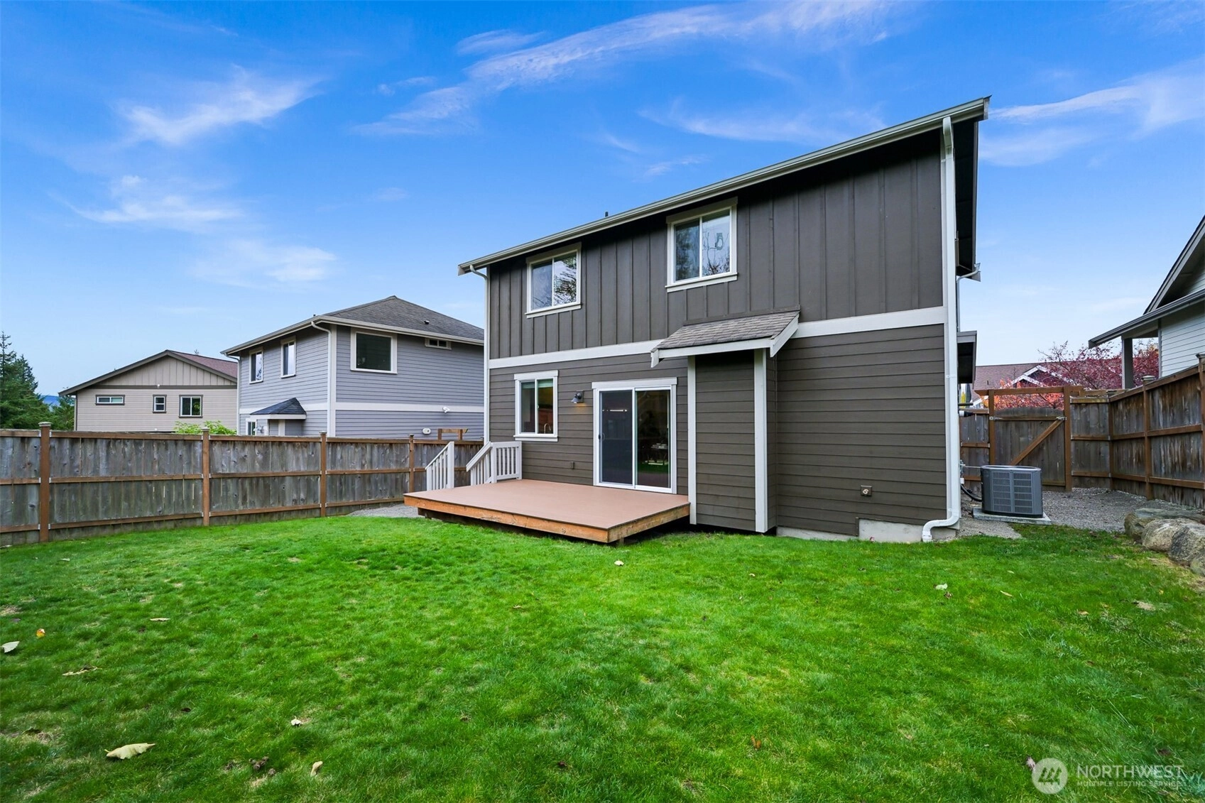 Beautiful Craftsman-style home tucked away on a quiet cul-de-sac, just steps from the neighborhood park! Enjoy living in the sought-after King Mountain community, w/convenient proximity to local amenities, trails, & more. Covered front porch welcomes you into an open-concept main level perfect for entertaining w/hardwood floors extending through kitchen, dining, & living areas. Kitchen features granite countertops, shaker cabinets, SS appliances + farm sink, stylish tile backsplash & large island. Recently added AC. Light & bright year round w/seamless indoor-outdoor living. Sliding door leads you to spacious deck, fully fenced backyard & access to extra storage. Upstairs has primary bed, 2 additional bed, 2 baths, w/floor to ceiling tile.