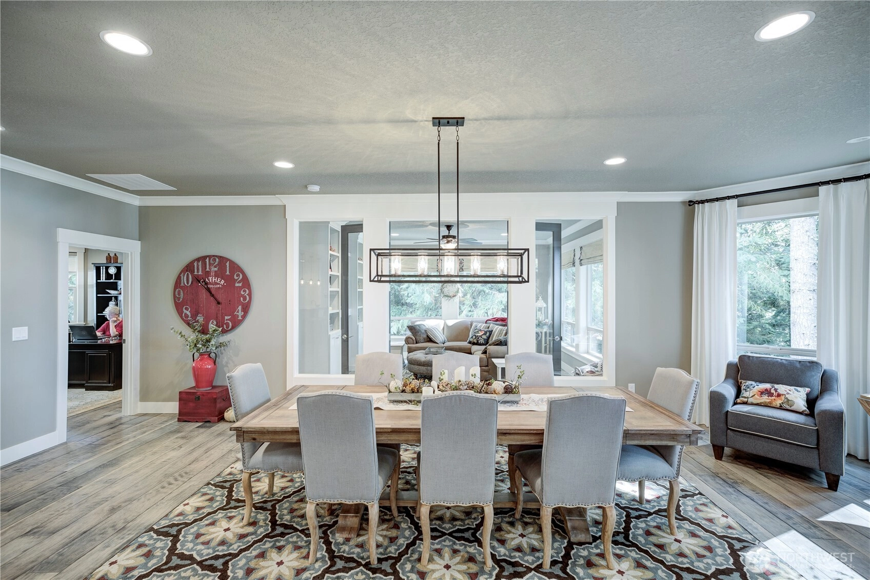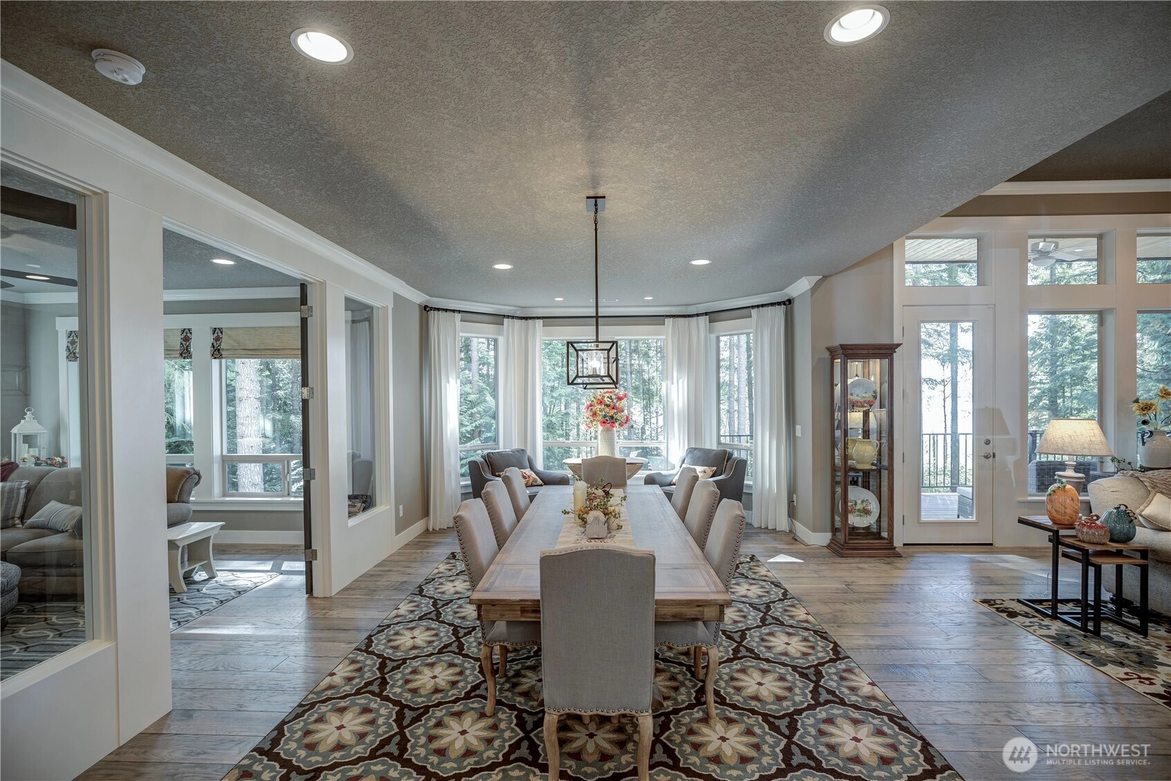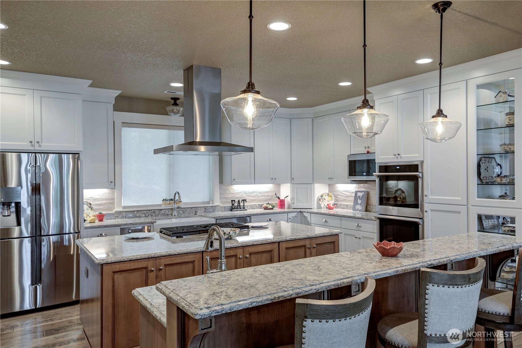Discover lakeside living at its finest in this immaculate 2017 home with stunning Silver Lake and mountain views. Designed for comfort and style, the gourmet kitchen boasts granite counters, ceiling-high cabinets, butler pantries, double ovens, built-in microwave, 5-burner gas stove, and two oversized islands. Enjoy cozy evenings in front of 1 of 3 fireplaces. The spacious primary retreat overlooks the lake with spa bath; double sinks, soaking tub, and walk-in shower. A fully finished walk-out basement offers added living space with sliding doors, carpet, and bath off every bedroom. Built-in vacuum system. Outside is a quiet wooded setting with a huge 4-bay shop with 1 lrg RV bay & metal roof. A boater's dream -This home has it all!