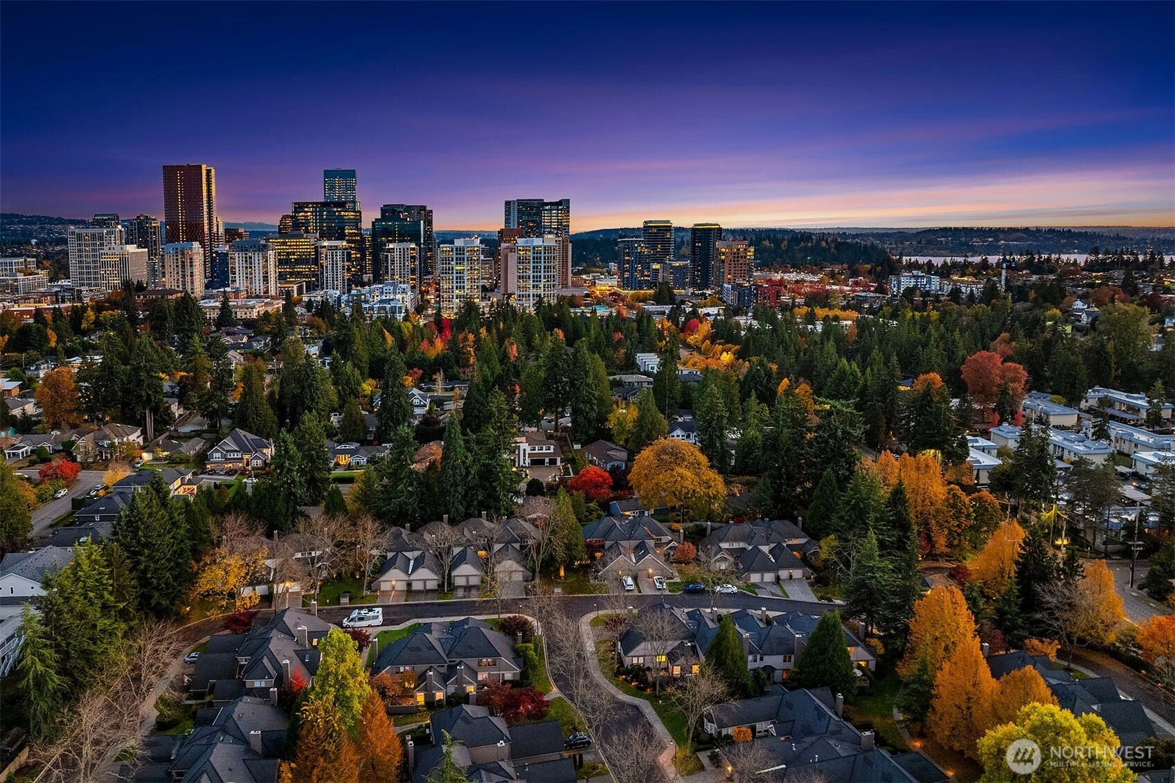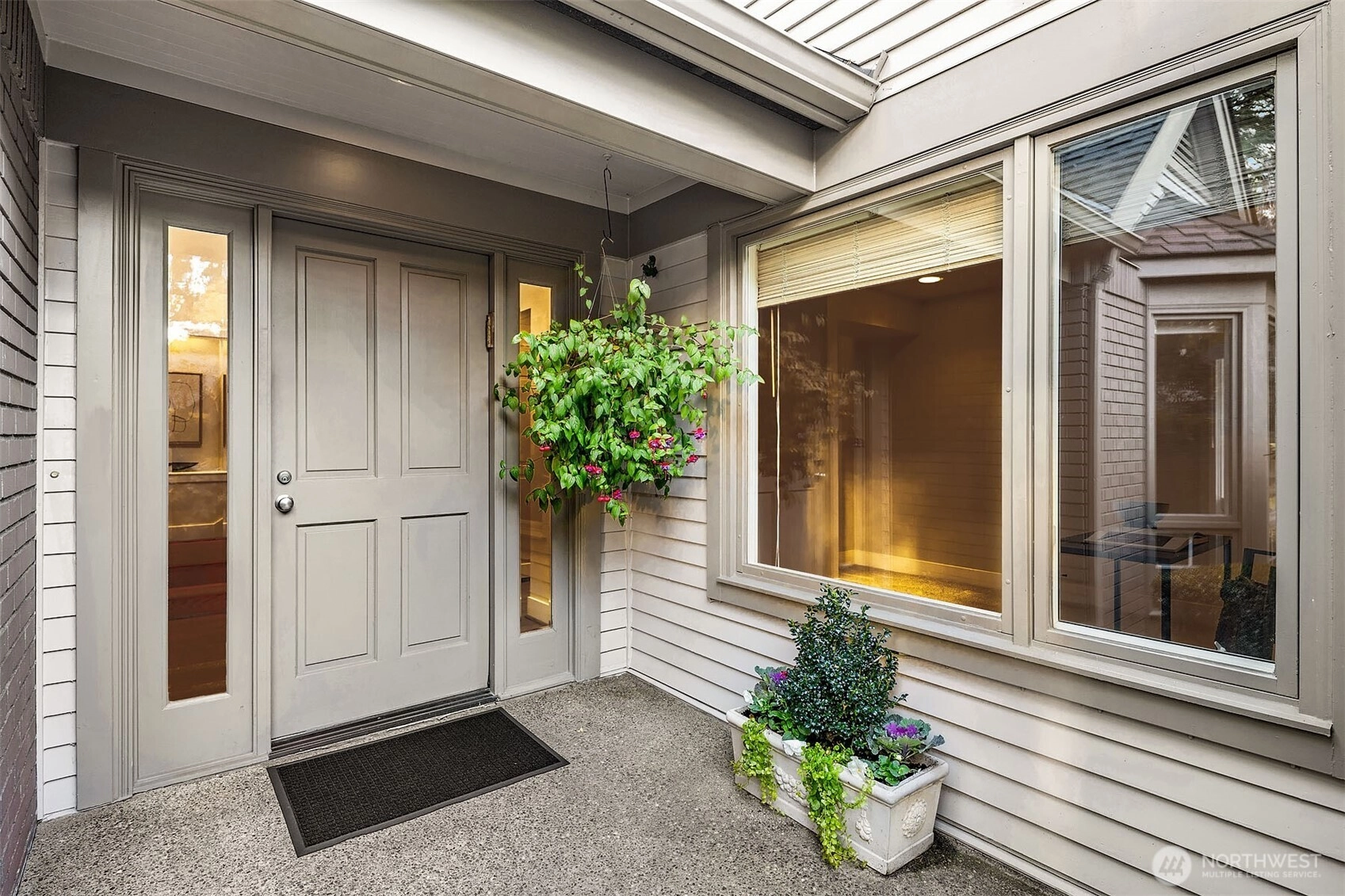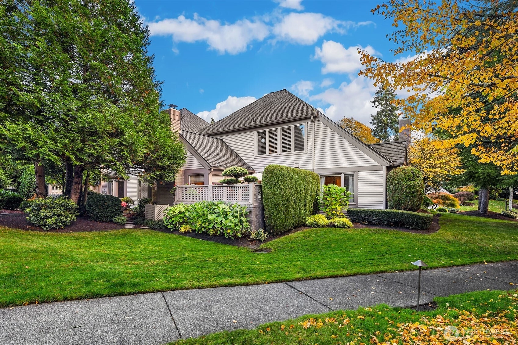 Experience refined living in this sought-after gated community, located just blocks from downtown Bellevue. This elegant townhome lives like a single-family home, offering a rare large corner lot and exceptional privacy. A beautiful entry opens to soaring ceilings and formal living and dining spaces that exude timeless style. The kitchen features slab granite countertops, stainless steel appliances, and an adjoining family room. Step outside to a private patio ideal for indoor-outdoor dining. A main-level bedroom provides flexibility for guests or a home office, while upstairs features a luxurious primary suite overlooking a view of manicured lawns. The secondary bedroom serves as a guest suite. Elegant Home - Premier Bellevue location.