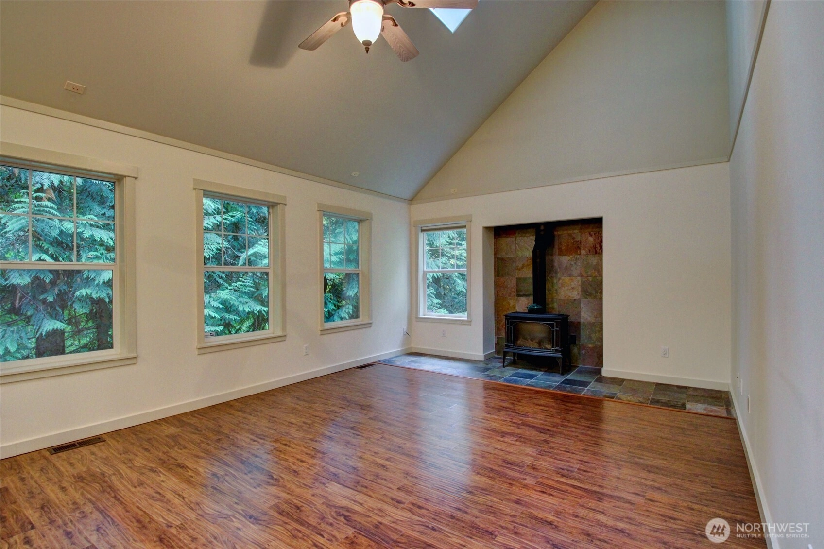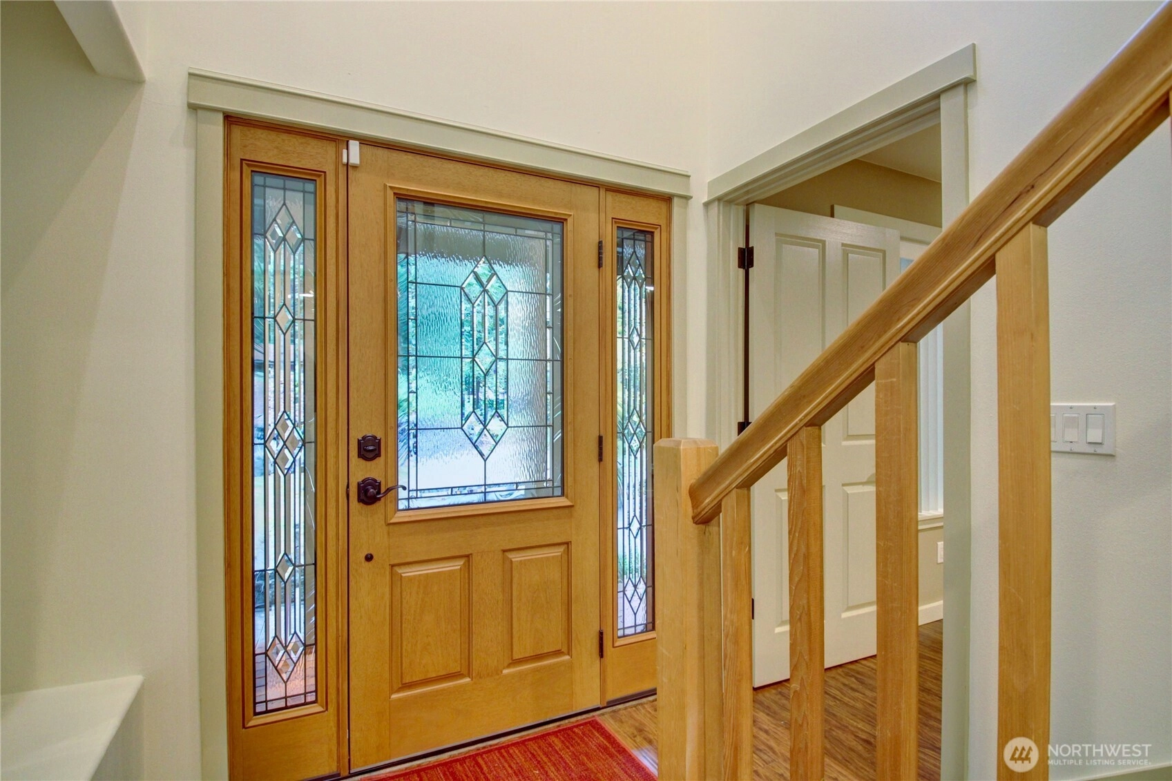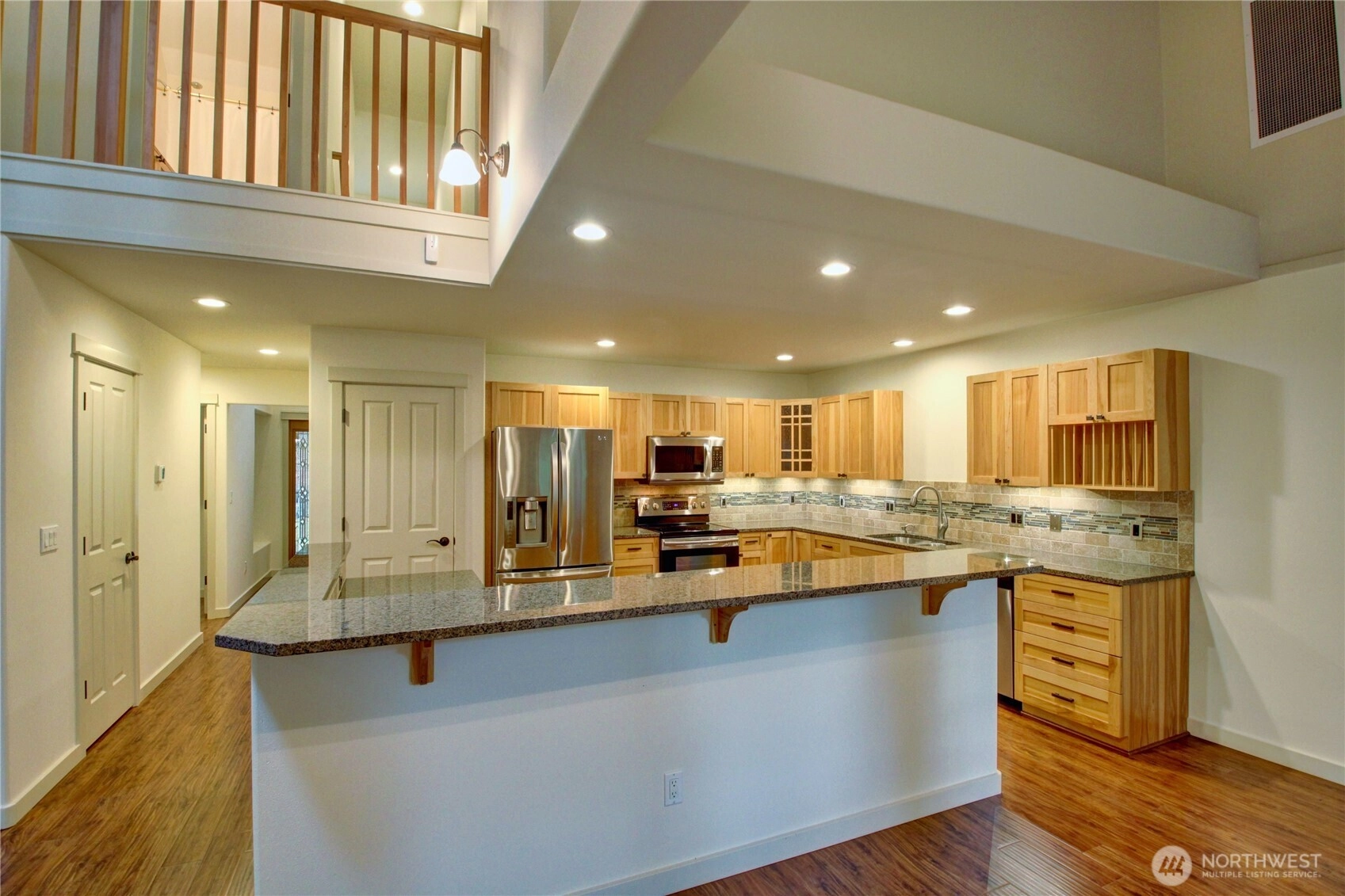 Enjoy loads of natural light and an easy access entry into this custom built 3-bedroom home - with office. Built in 2001, the home is located on a large double lot, has an open floor plan, and the primary bedroom & office are on the main level. The open kitchen has stainless steel appliances, walk-in pantry, slab granite counter tops, and a large island - which is wonderful for entertaining! The great room area has soaring ceilings, free standing gas stove, and access to the private rear deck. The primary bedroom has updated full bath (separate bath and shower) and walk-in closet. Updated heating / cooling system. A large 2-car garage and double lot complete the home. Nicely landscaped property.