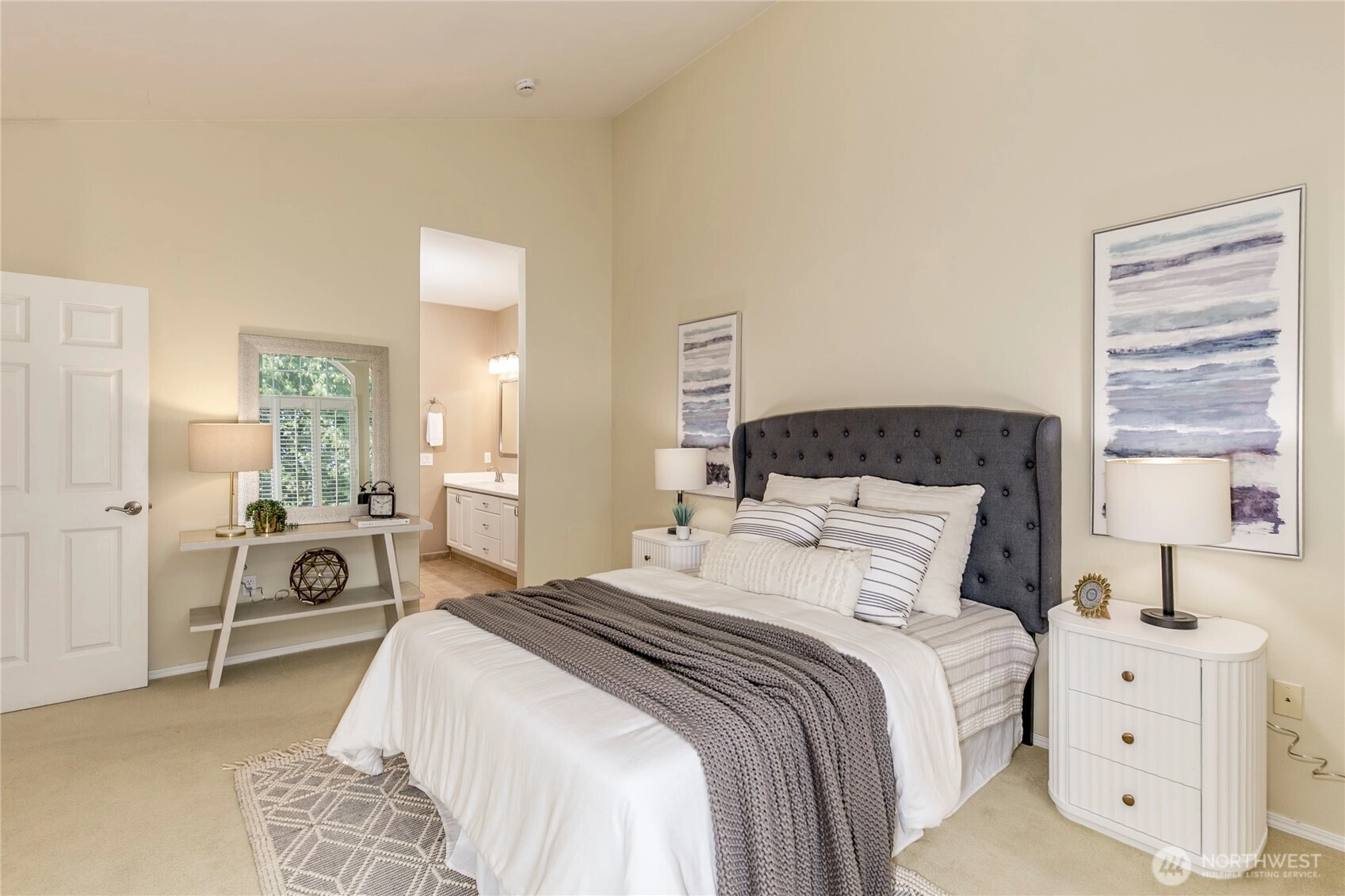 Beautiful Townhome in Mukilteo's sought after Martha's Vineyard. 2 Bdrms + Den, 1.75 Baths & 1448 asf w/ rare attached 2 car garage! Open layout features chef's kitchen w/ granite countertops, stainless appliances, lg pantry, breakfast bar & dining area. Living room is so special w/ vaulted ceilings, gas log fireplace and walls of oversized windows w/ plantation shutters to soak up tons of natural light. French door entry to the light & bright den/office space + sliders open to the private deck. Primary suite boasts vaulted ceilings, walk-in closet, and primary bath w/ double sinks & walk-in shower. Large secondary bedroom, full guest bath & good sized laundry as well! Newer furnace, brand new roof and a perfect Harbour Pointe location!
