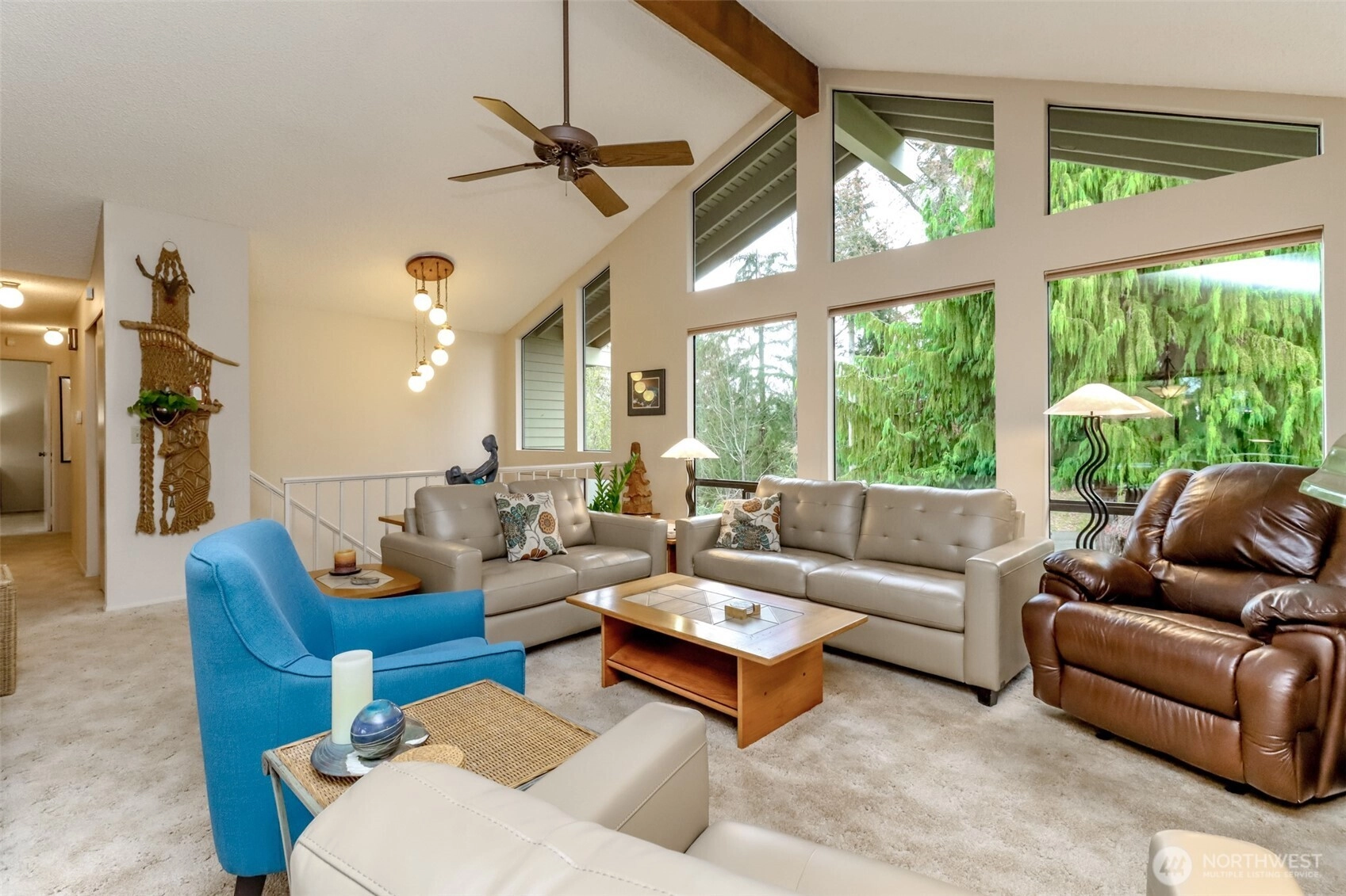 Meticulously maintained, fully-finished 2,760sf split-level home on .39acres overlooking the forested hillside of S Redondo w/seasonal views of the Puget Sound & Olympic Mtns. Hide away in your private, park-like cul-de-sac setting or enjoy the nearby Redondo Boardwalk w/scuba divers, beachcombers & kayakers. Welcome in to high vaulted ceilings, large picture windows, a spacious fireside living/dining room, beautifully renovated kitchen w/new cabinets, quartz counters, & SS appliances. Take sanctuary w/a view from the primary suite, +2 addl beds on the upper level. In the downstairs daylight, walkout basement is a warm & welcoming 2nd living area, spacious bedroom/craftroom/office & large laundry room. New roof & gutters 2024, HVAC comfort!