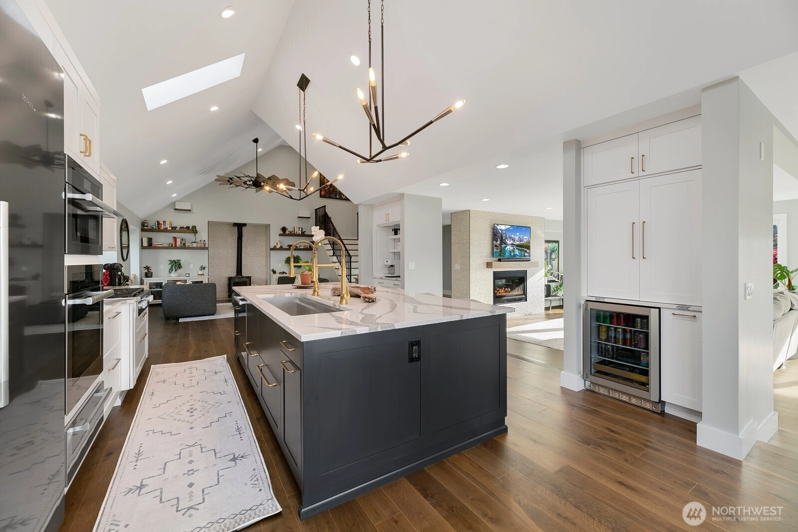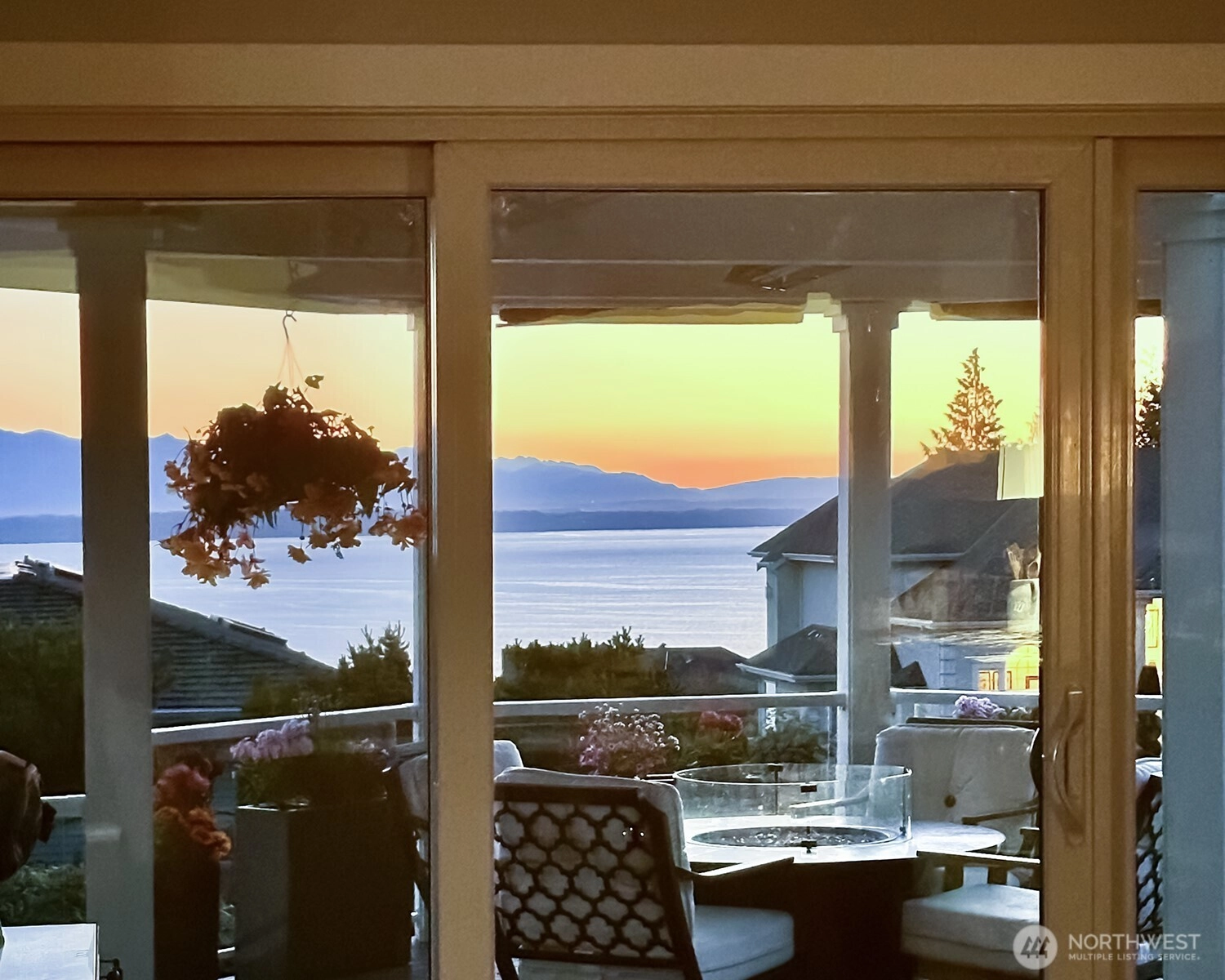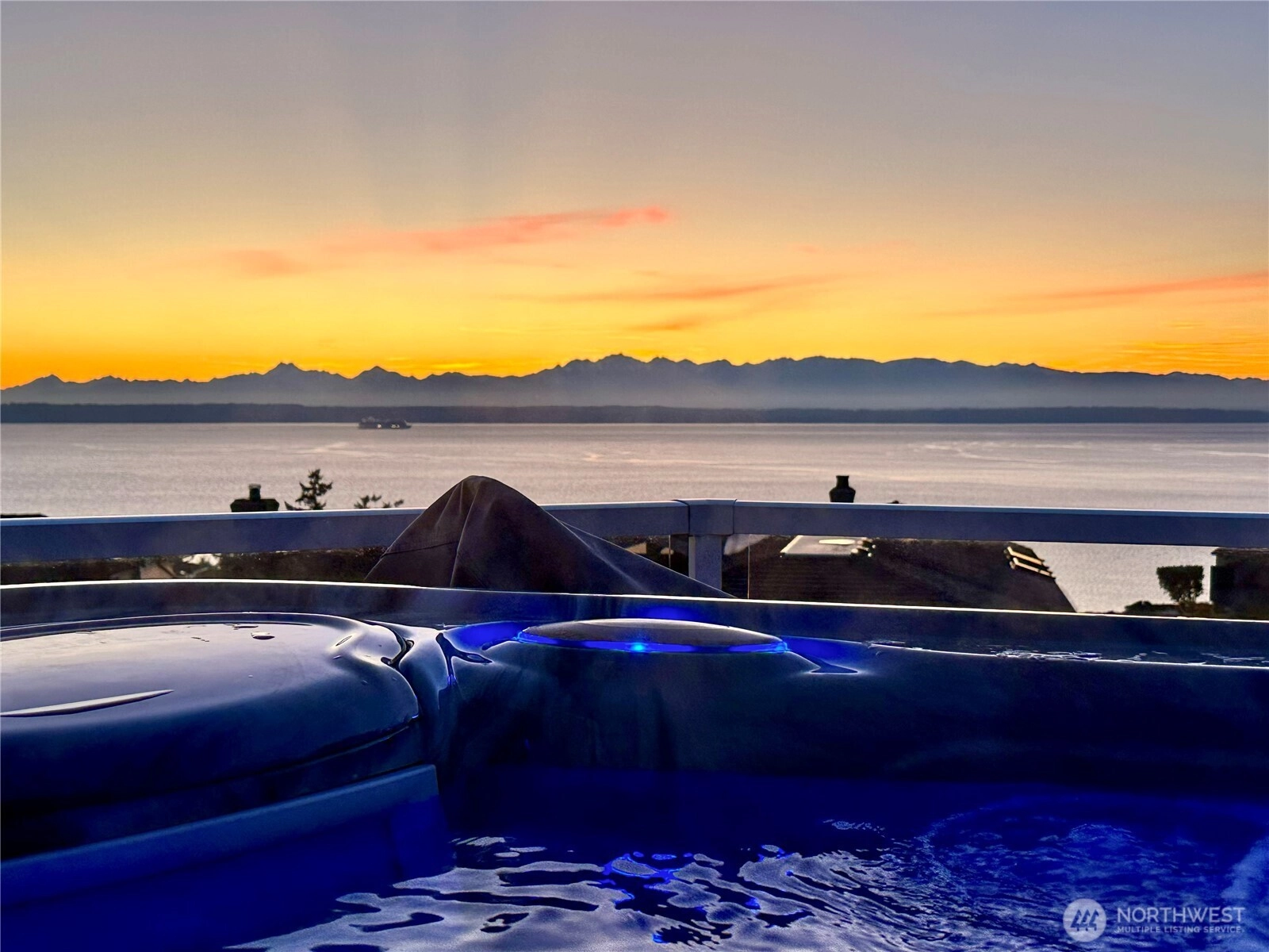 Perched above with sweeping Sound & mountain views, this breathtaking home captures the essence of luxury living. Every moment feels elevated; sunsets from the terraces or roof top deck, morning light across white oak hardwood floors, the warmth of 3 fireplaces glowing through open, artfully designed spaces. The chef's kitchen inspires gatherings w/its vaulted ceilings & top-tier finishes. Retreat to the upper primary suite for spa-like serenity, complete w/a sauna shower, fireplace, private view deck w/hot tub under the stars. 2nd primary on the main & 3 additional bedrooms complete the upper floor. 3-car attached garage. A rare fusion of timeless elegance, natural beauty, & modern indulgence; crafted to be experienced, not just admired.