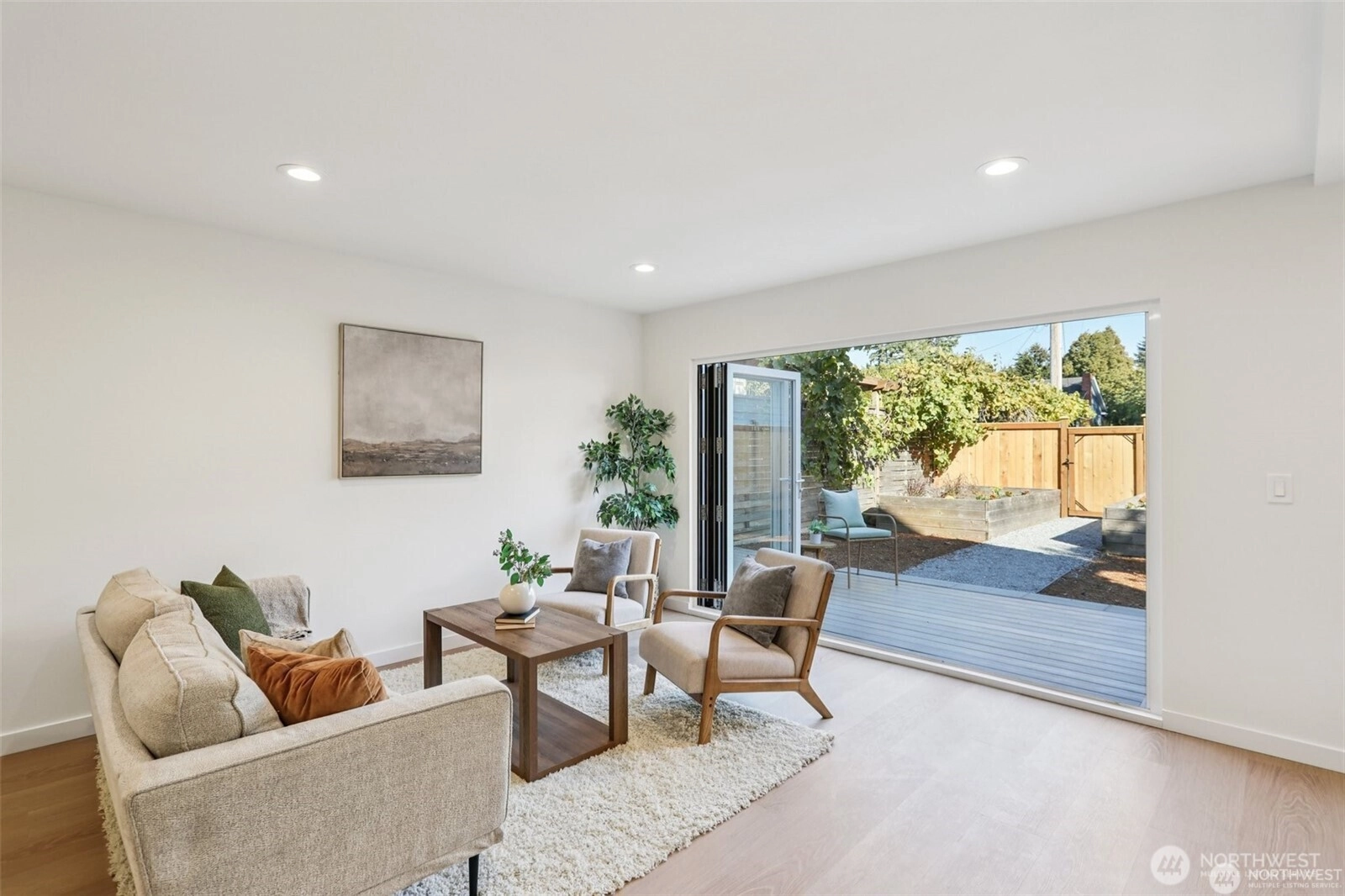 Stunning studs-out remodel with an effective year built of 2025! Every surface refreshed and reimagined in this modern 3-bed, 2-bath home. The open-concept living area opens through expansive folding glass doors to a spacious deck, beautiful garden space, and fully fenced yard—perfect for entertaining or quiet evenings outdoors. Inside, thoughtful updates, clean lines, and timeless finishes create a bright and welcoming feel throughout. All new systems for peace of mind. Two off-street parking spaces complete this turnkey home in a prime North Seattle location near Greenwood, Green Lake, and future light rail. Truly move-in ready and better than new!