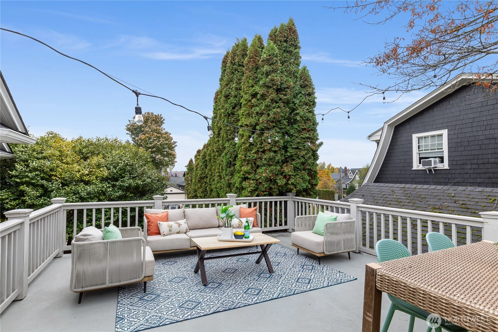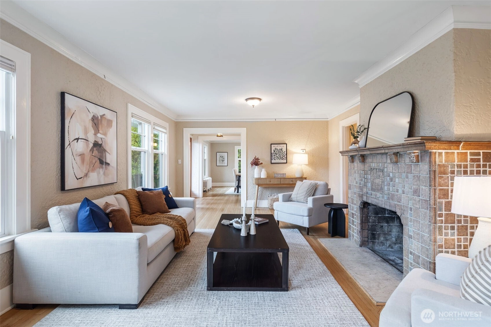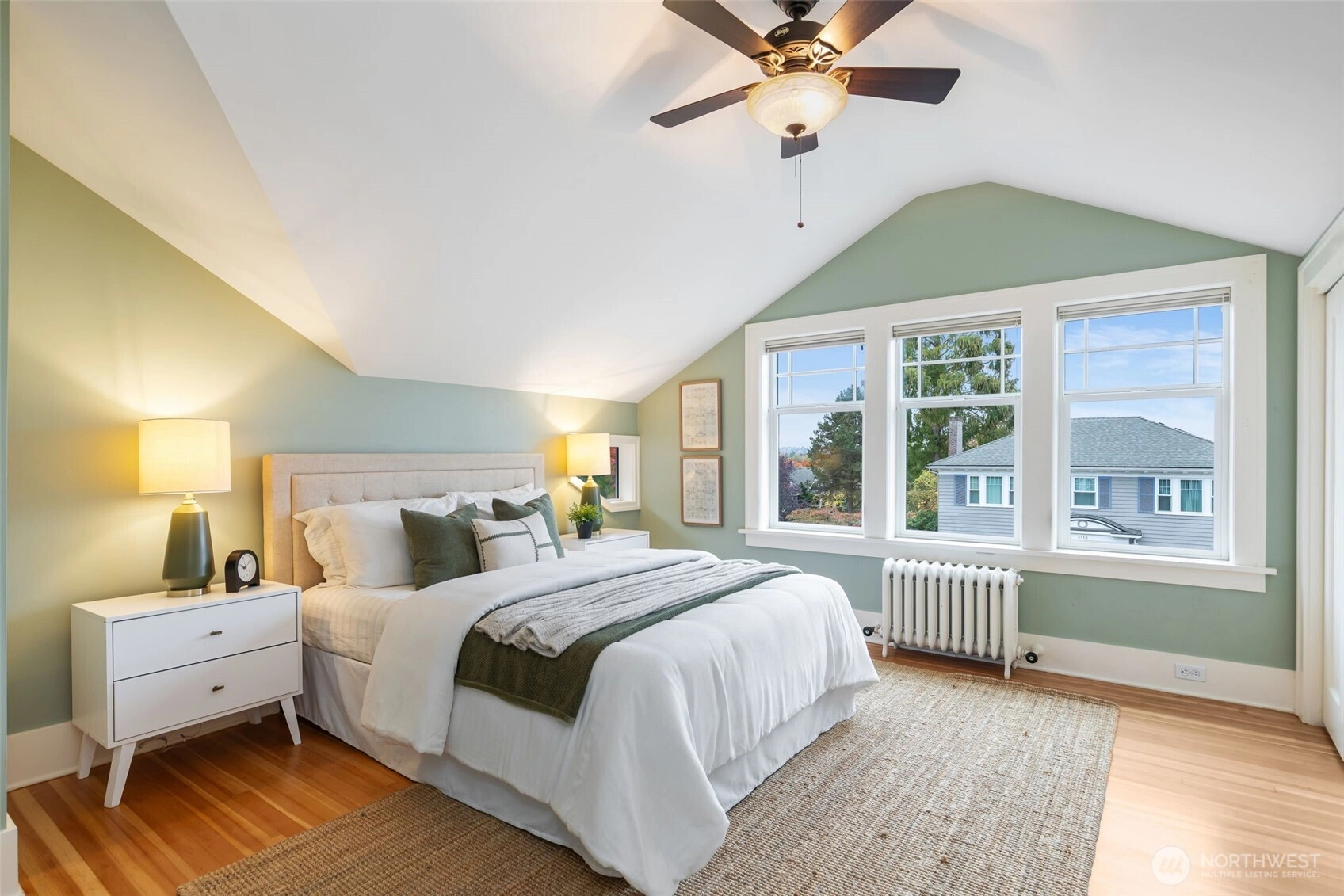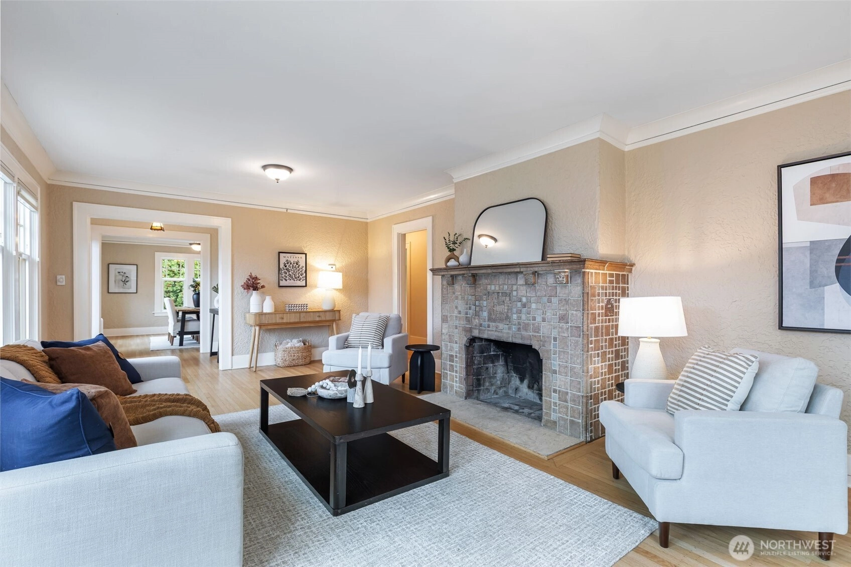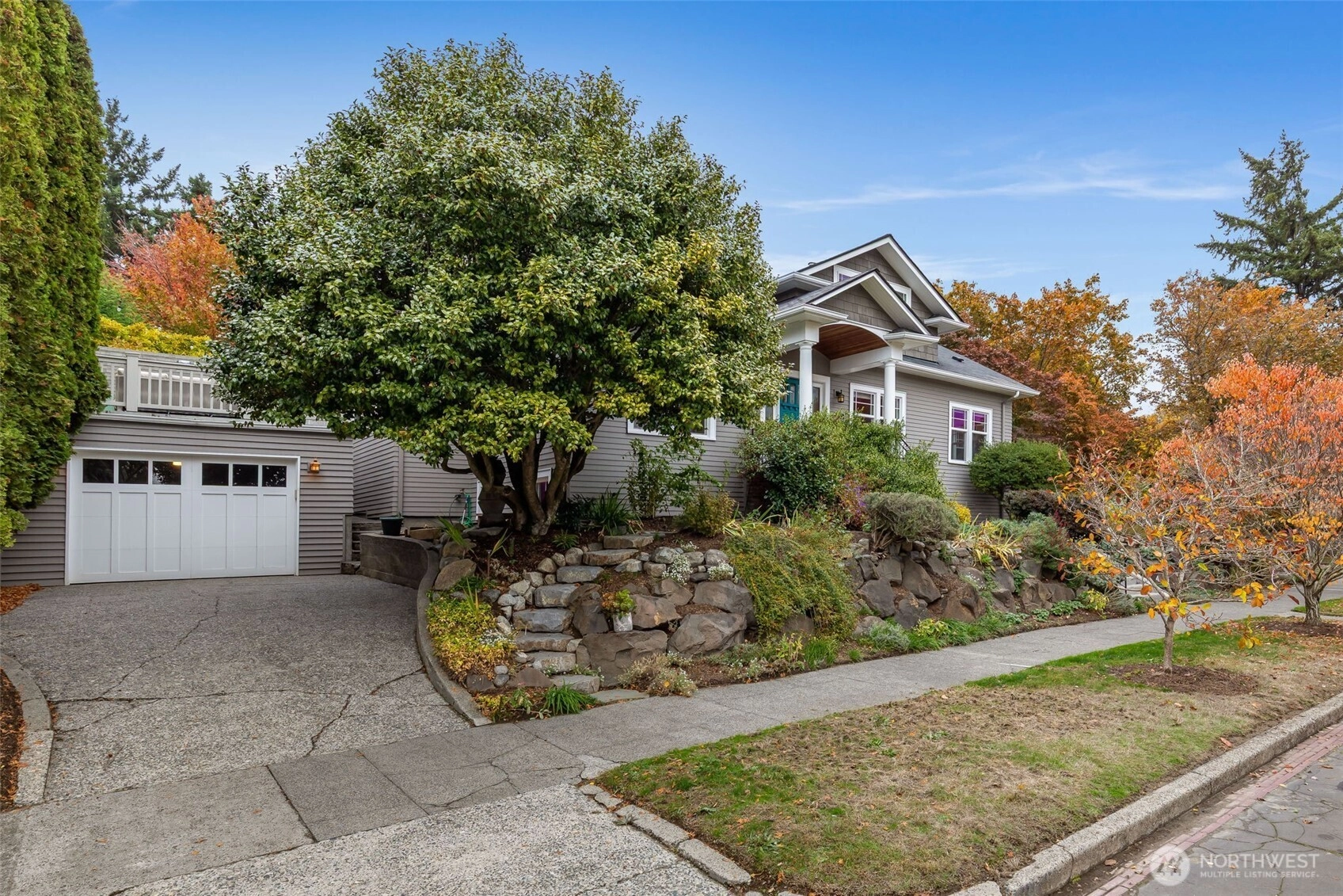 Set on the corner of an idyllic tree lined street in Mt Baker, this 5 bedroom house (all bedrooms above grade) captures the charm of 1922 and the convenience of today surrounded by landscaped gardens. Big south facing windows bathe the living and formal dining rooms with natural light. High ceilings, refinished hardwoods, picture rails, and a Batchelder fireplace showcased on the main floor with two spacious bedrooms and a beautifully remodeled large bathroom. Kitchen has been updated with easy access to the garage and huge entertainment deck. 3 bedrooms, huge closets, a spa inspired bath, plus an additional cozy central living space upstairs with Mt Rainier views. Basement has a finished rec room and tons of extra storage. Updated systems!