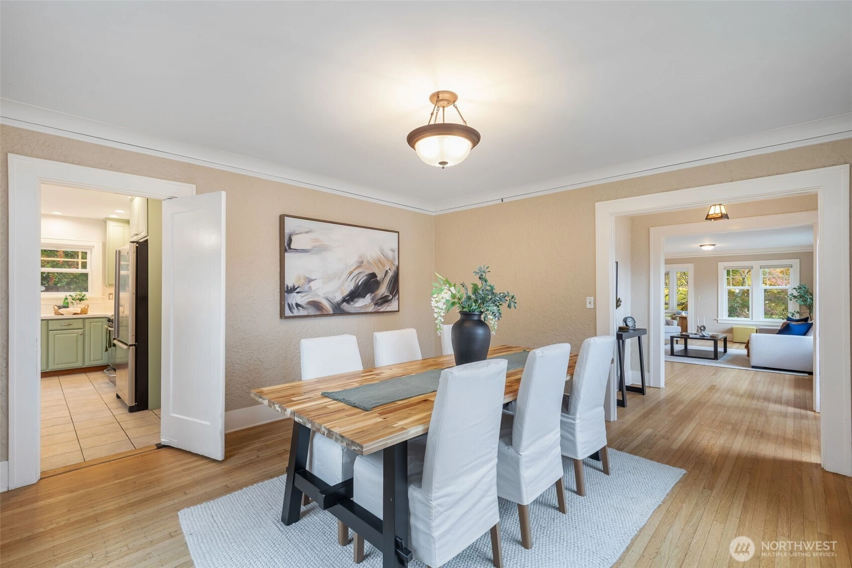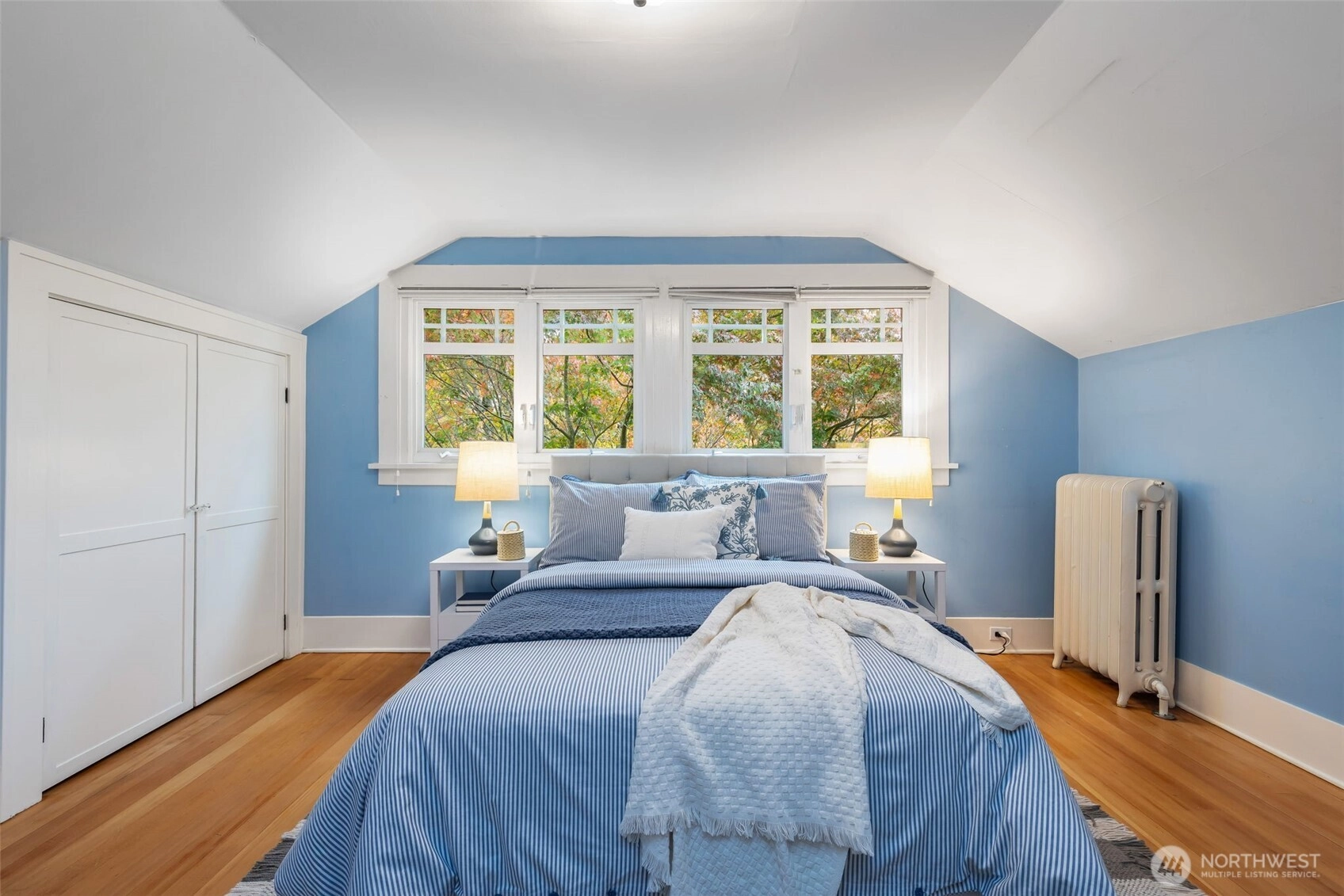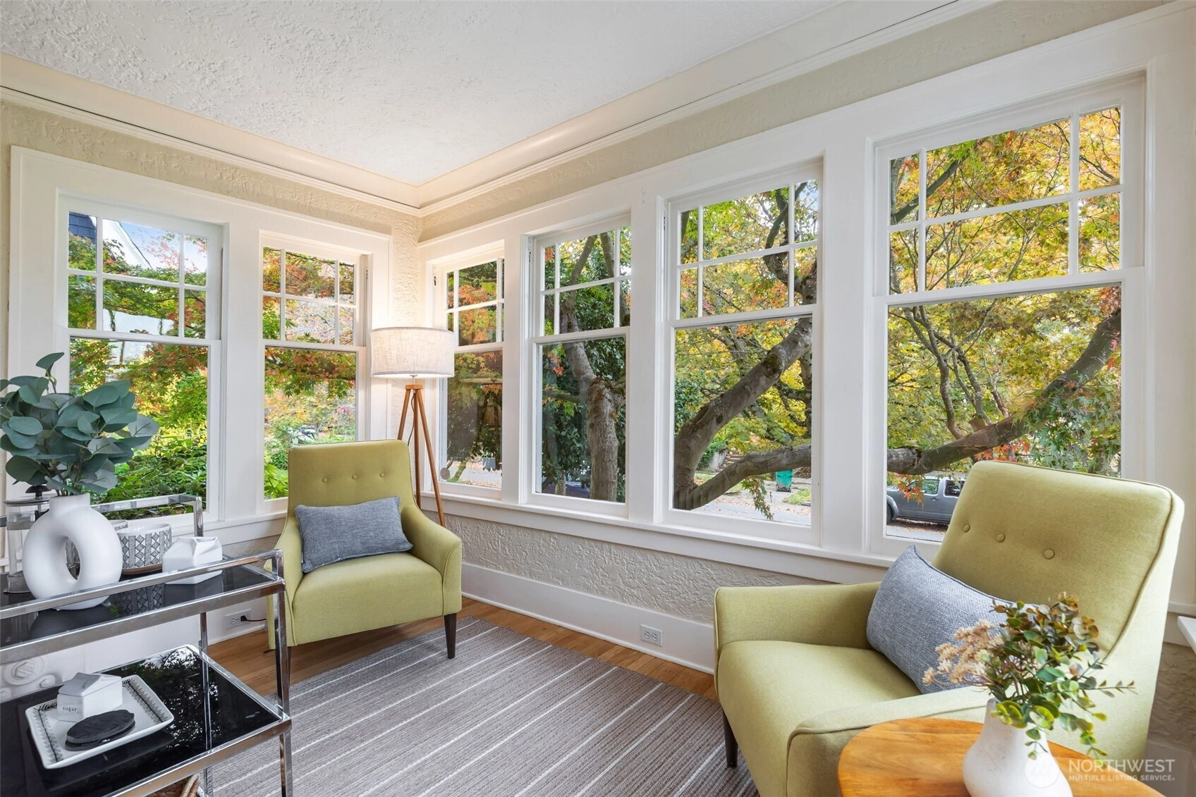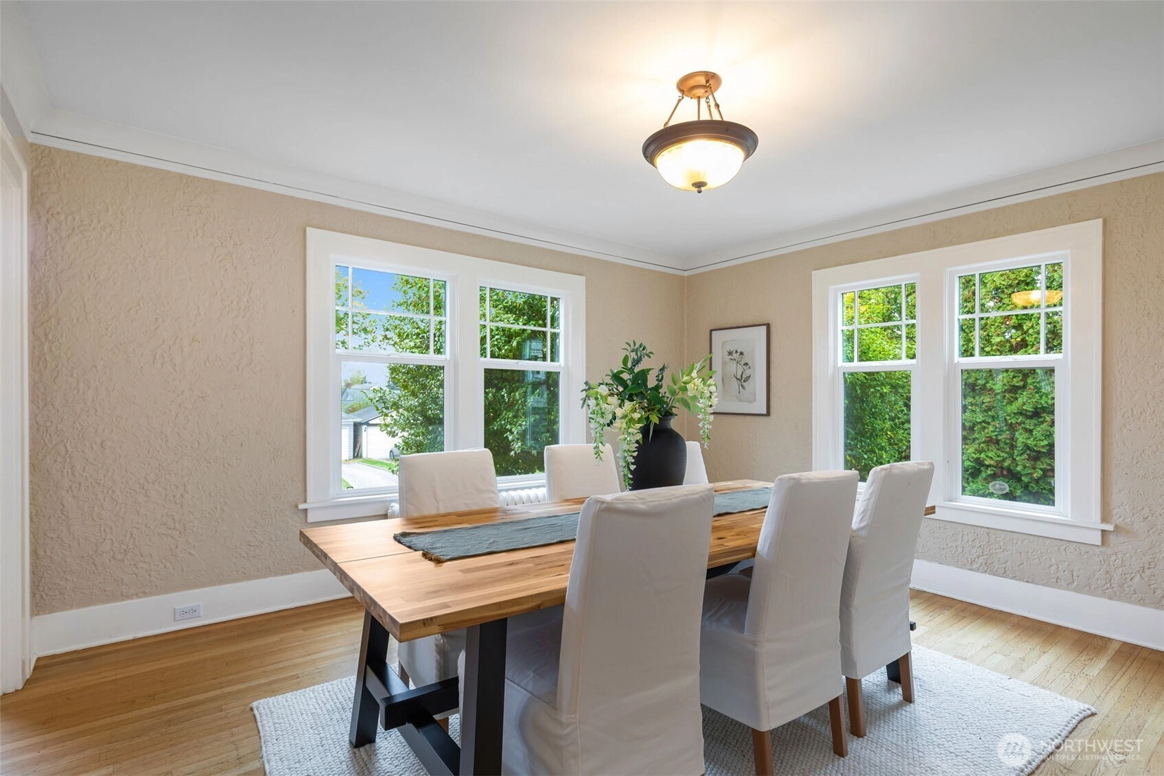 Set on the corner of an idyllic tree lined street in Mt Baker, this 5 bedroom house (all bedrooms above grade) captures the charm of 1922 and the convenience of today surrounded by landscaped gardens. Big south facing windows bathe the living and formal dining rooms with natural light. High ceilings, refinished hardwoods, picture rails, and a Batchelder fireplace showcased on the main floor with two spacious bedrooms and a beautifully remodeled large bathroom. Kitchen has been updated with easy access to the garage and huge entertainment deck. 3 bedrooms, huge closets, a spa inspired bath, plus an additional cozy central living space upstairs with Mt Rainier views. Basement has a finished rec room and tons of extra storage. Updated systems!