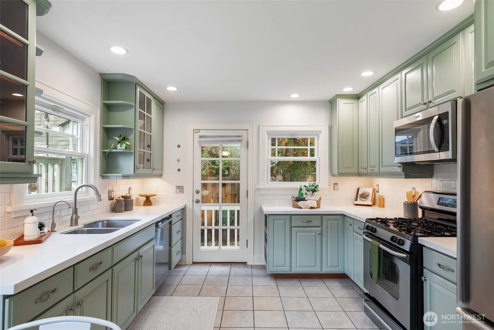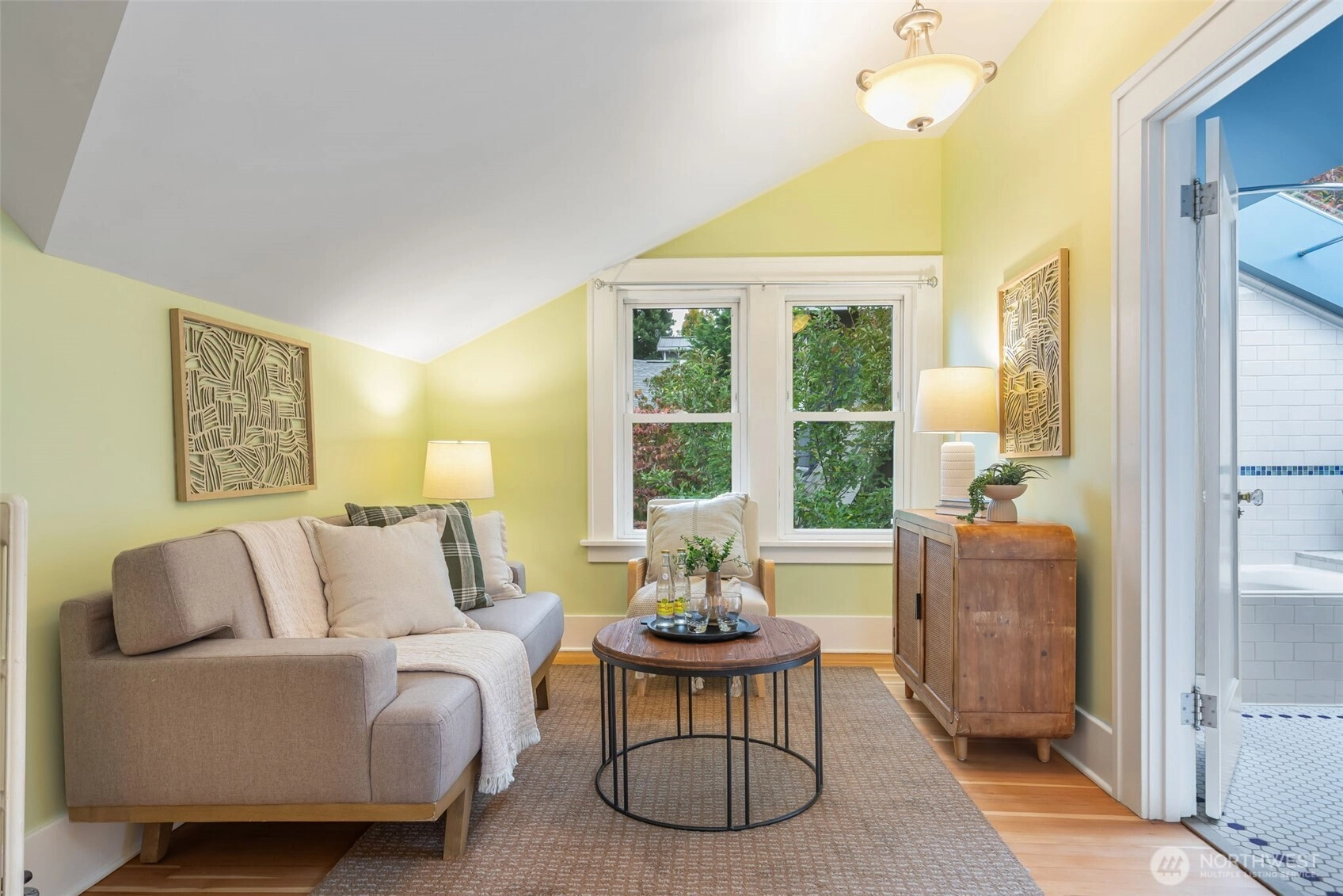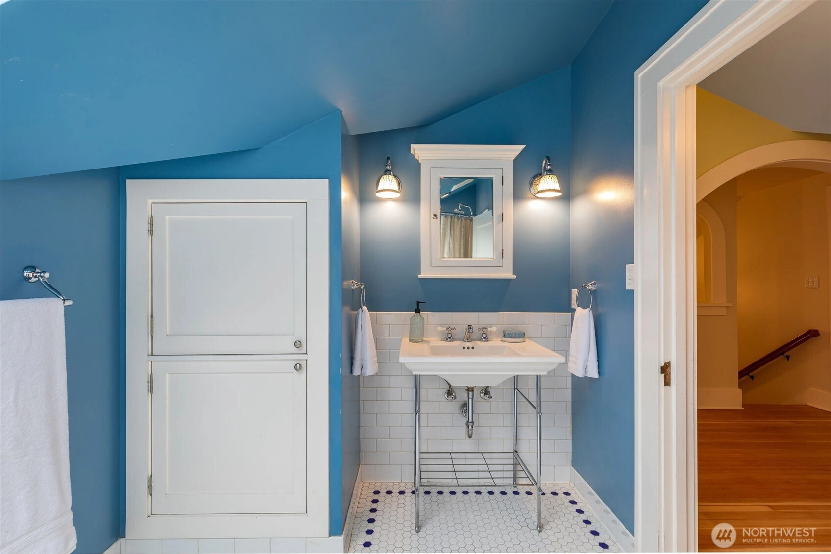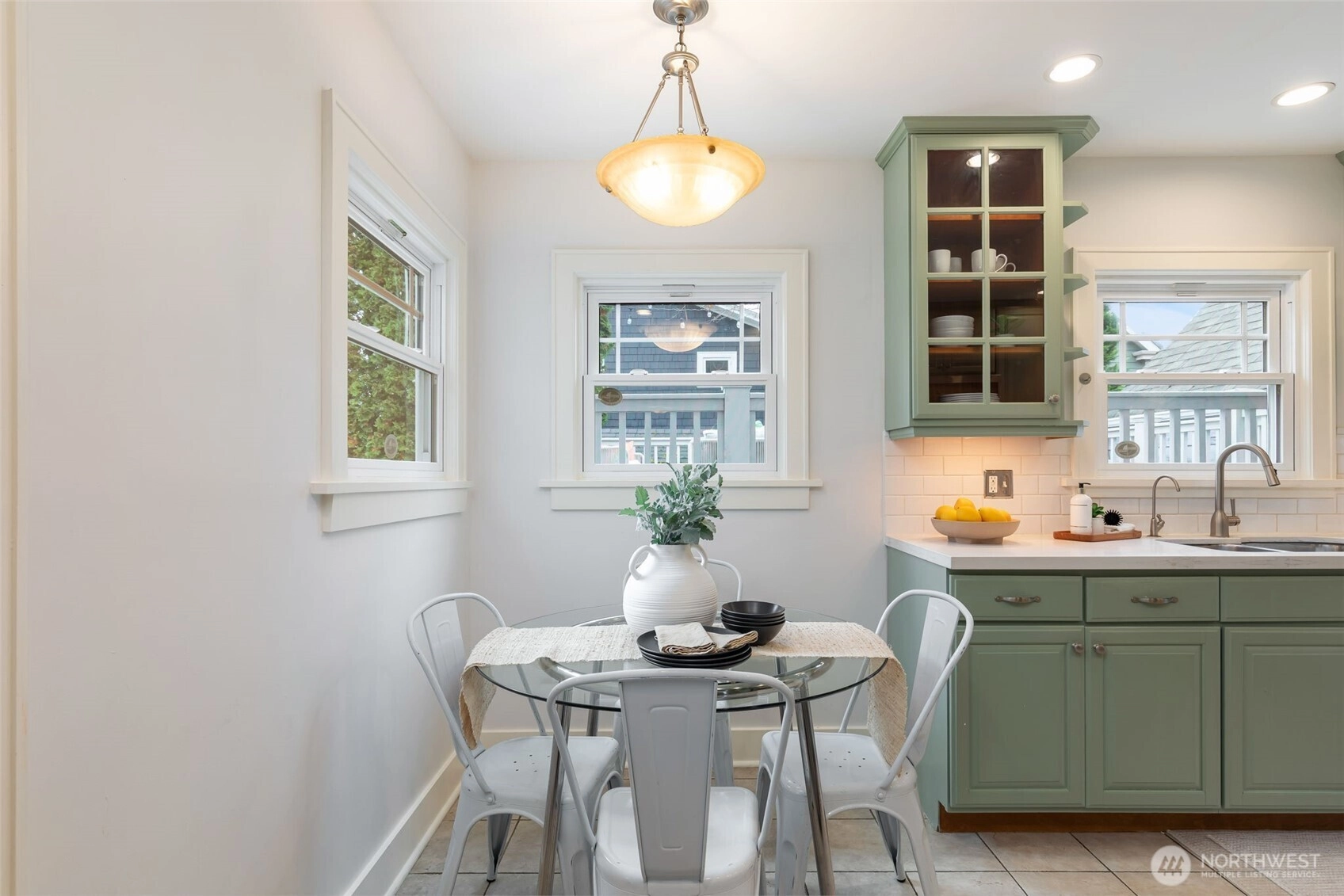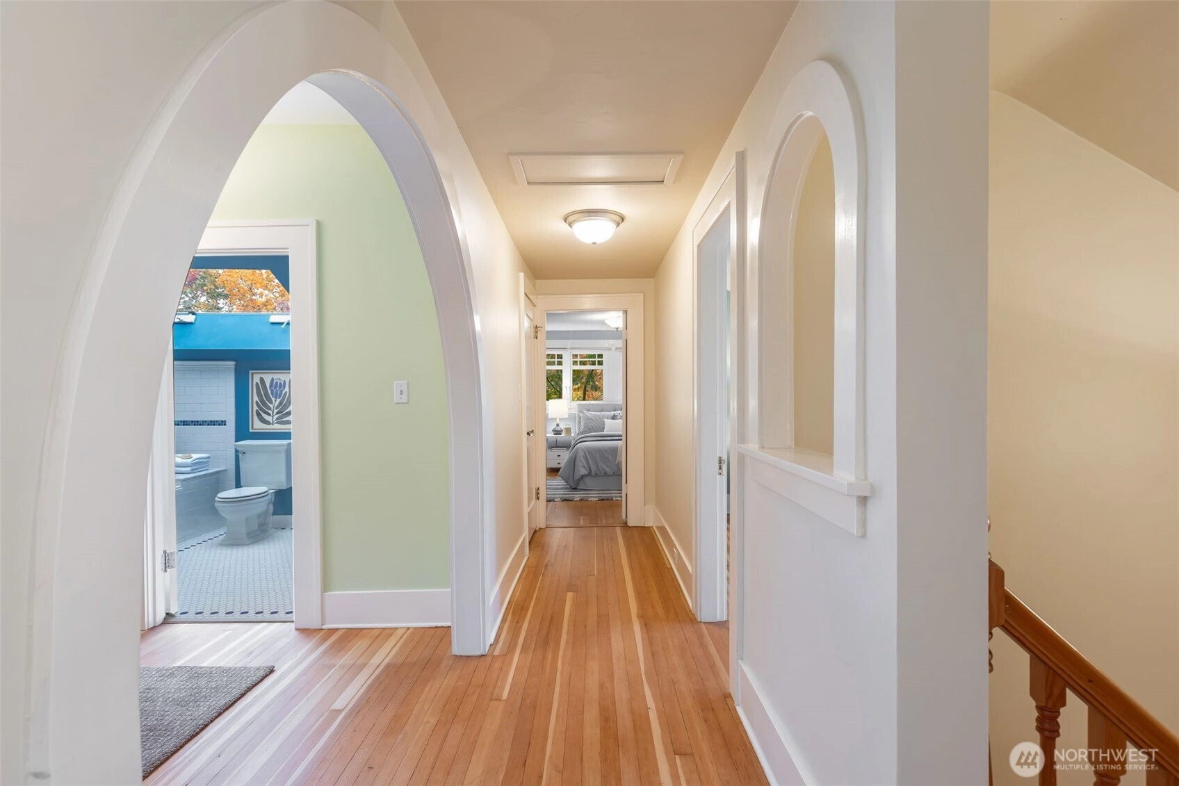 Set on the corner of an idyllic tree lined street in Mt Baker, this 5 bedroom house (all bedrooms above grade) captures the charm of 1922 and the convenience of today surrounded by landscaped gardens. Big south facing windows bathe the living and formal dining rooms with natural light. High ceilings, refinished hardwoods, picture rails, and a Batchelder fireplace showcased on the main floor with two spacious bedrooms and a beautifully remodeled large bathroom. Kitchen has been updated with easy access to the garage and huge entertainment deck. 3 bedrooms, huge closets, a spa inspired bath, plus an additional cozy central living space upstairs with Mt Rainier views. Basement has a finished rec room and tons of extra storage. Updated systems!