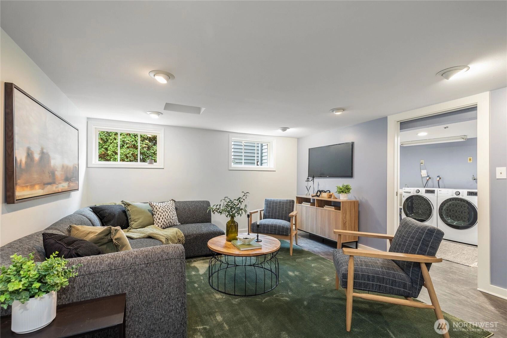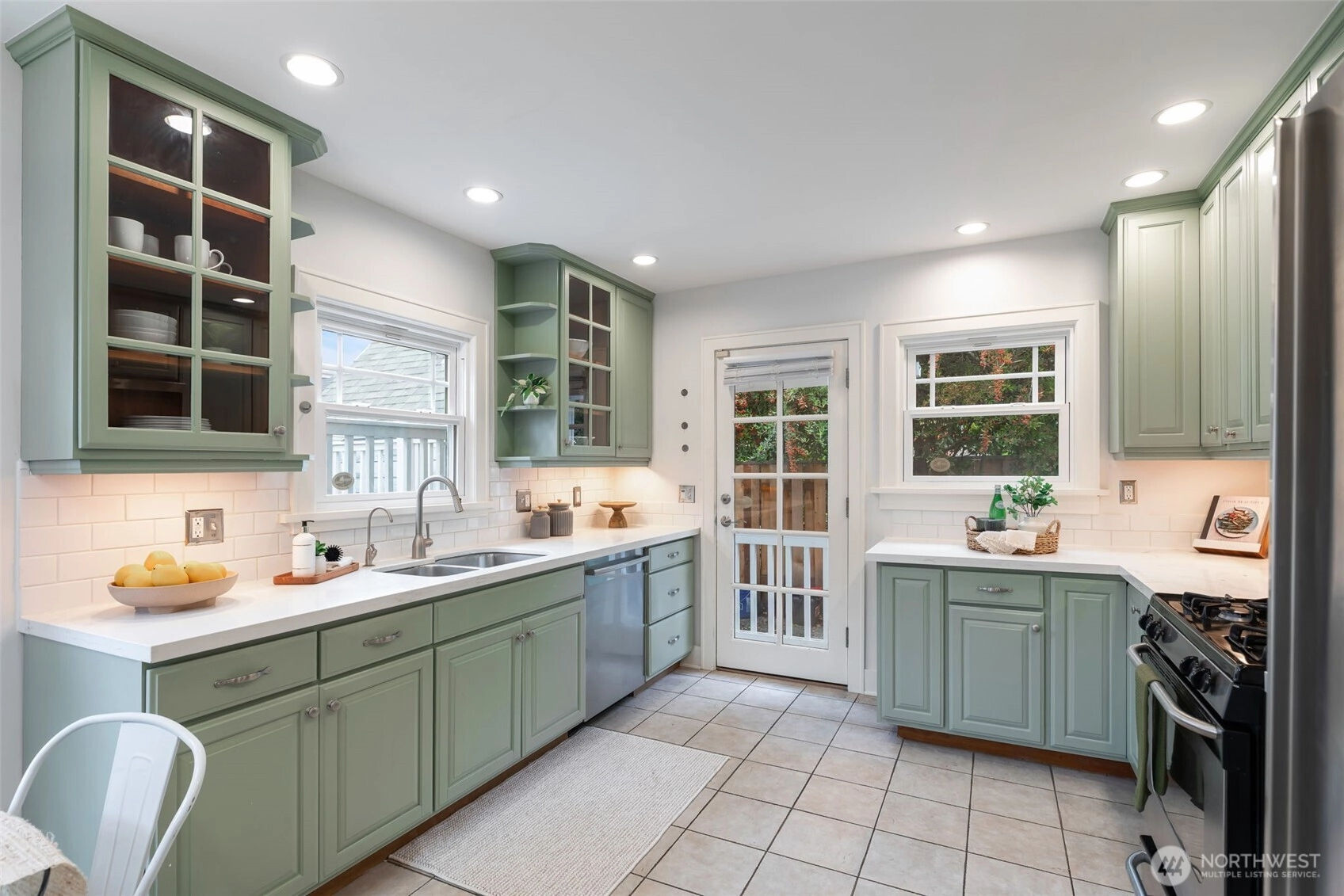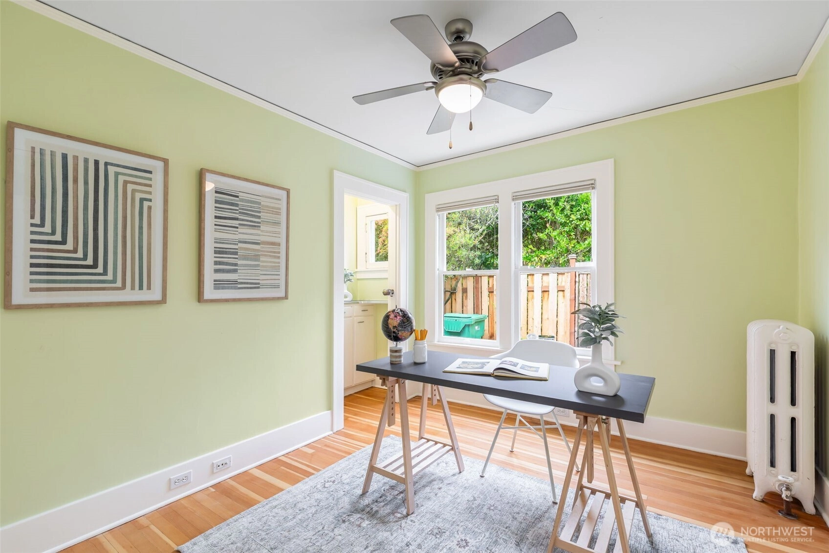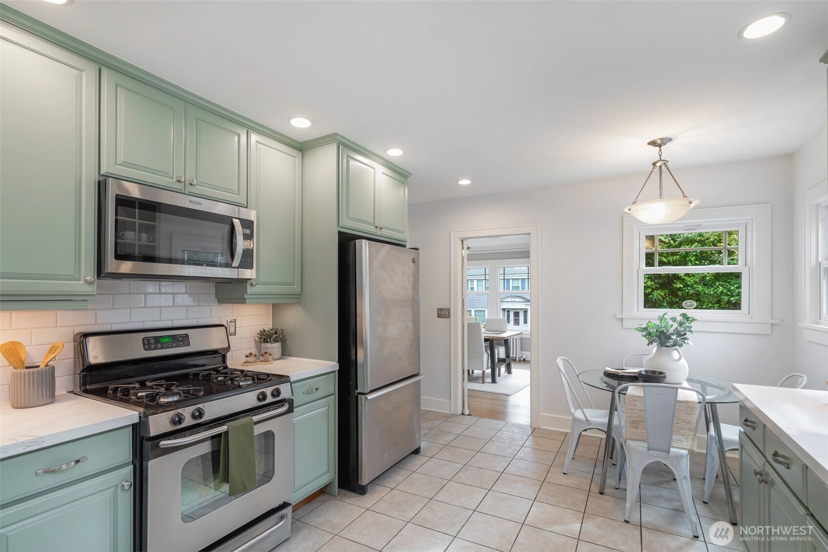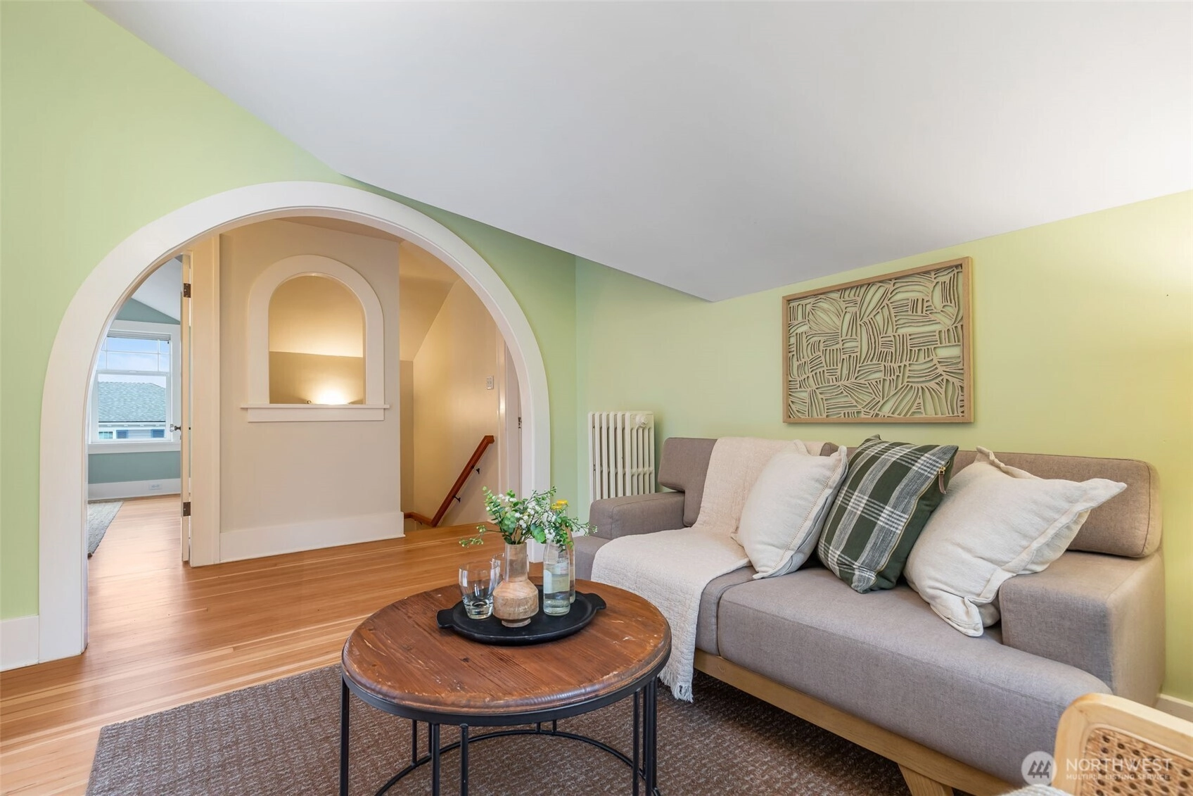 Set on the corner of an idyllic tree lined street in Mt Baker, this 5 bedroom house (all bedrooms above grade) captures the charm of 1922 and the convenience of today surrounded by landscaped gardens. Big south facing windows bathe the living and formal dining rooms with natural light. High ceilings, refinished hardwoods, picture rails, and a Batchelder fireplace showcased on the main floor with two spacious bedrooms and a beautifully remodeled large bathroom. Kitchen has been updated with easy access to the garage and huge entertainment deck. 3 bedrooms, huge closets, a spa inspired bath, plus an additional cozy central living space upstairs with Mt Rainier views. Basement has a finished rec room and tons of extra storage. Updated systems!
