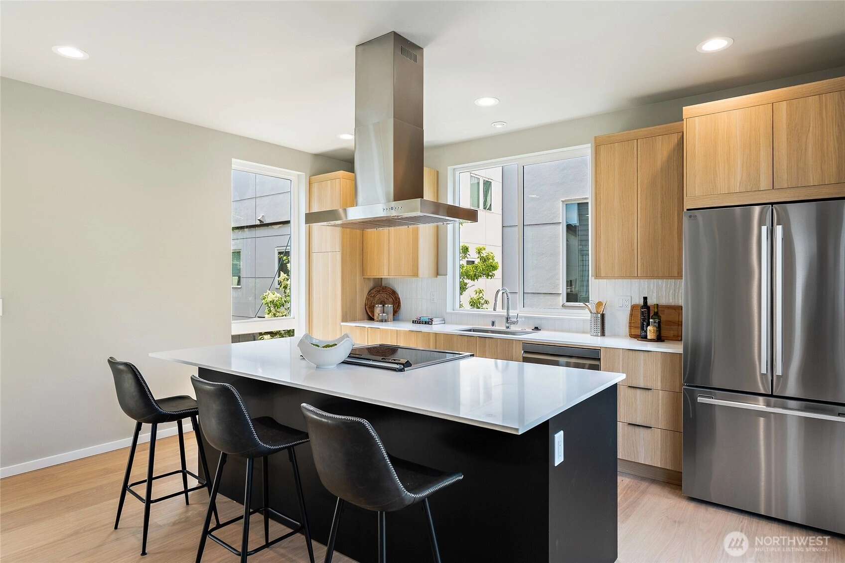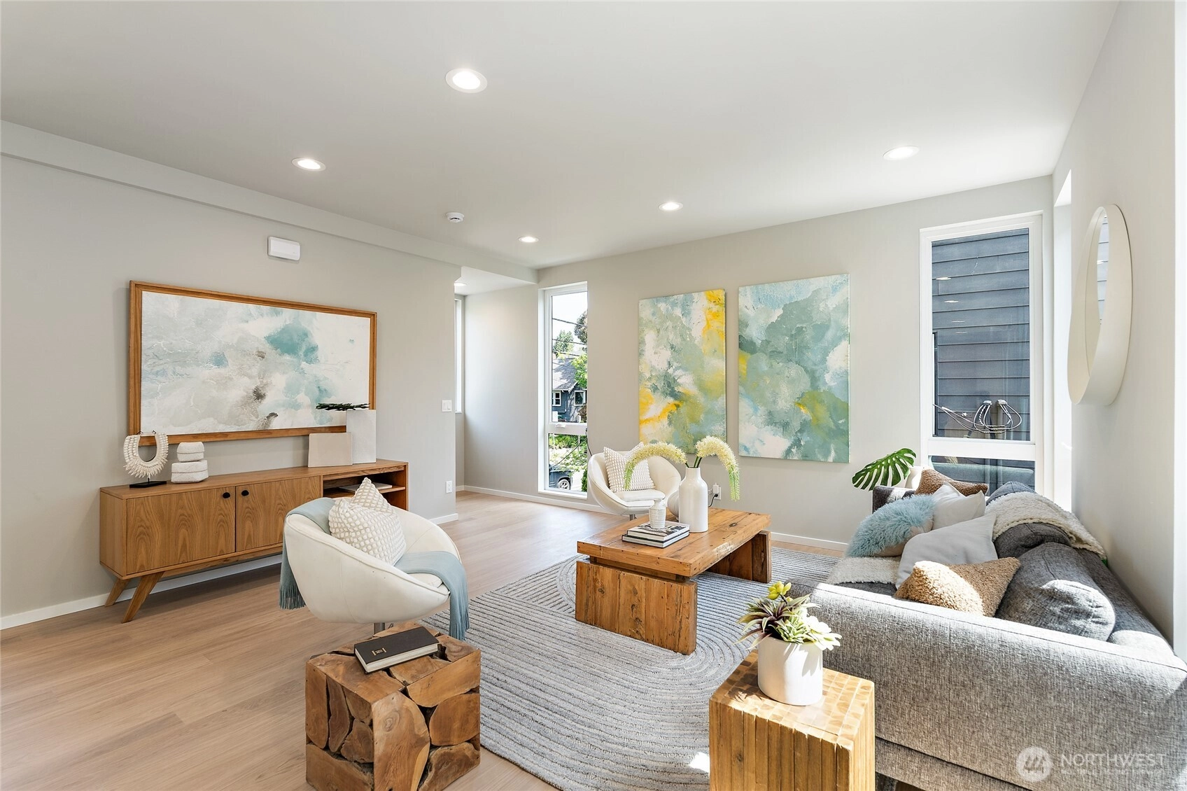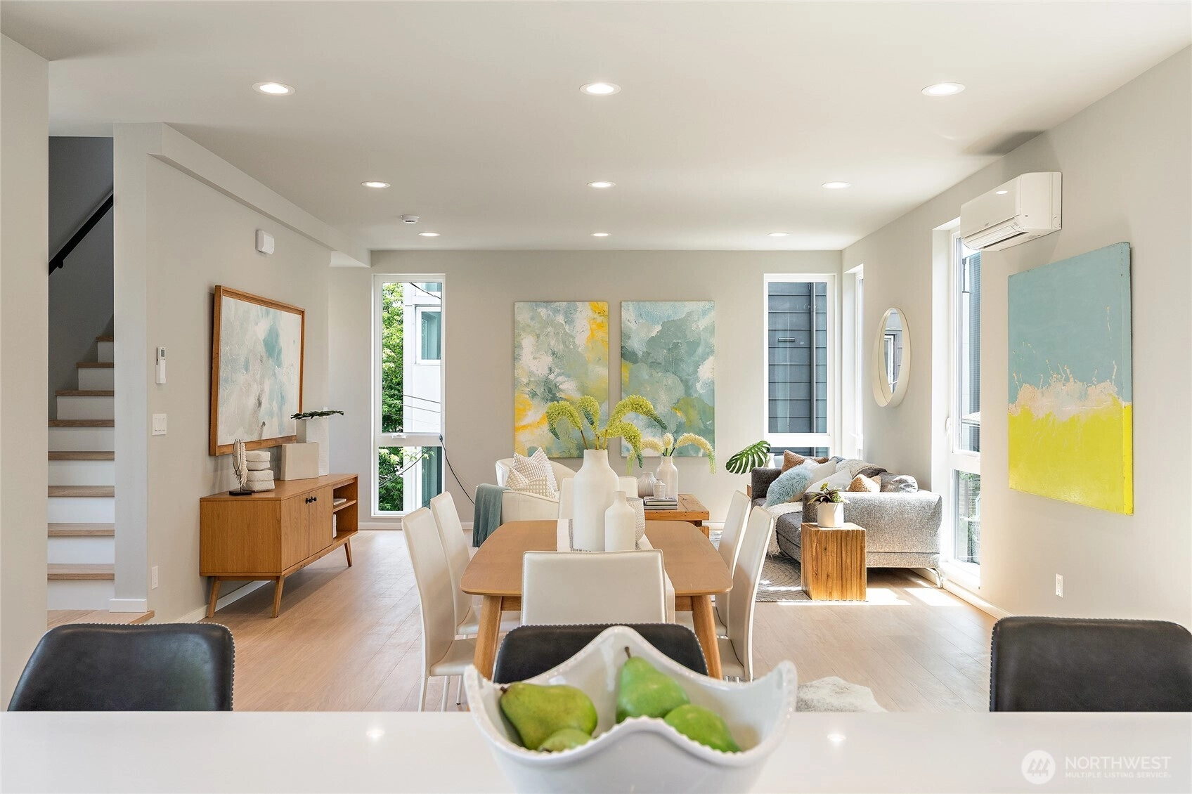 Welcome home to this luxury, Built Green home w/ no shared walls! Enjoy dedicated parking directly behind home & step inside to a thoughtfully designed entry-level featuring 2 spacious bedrooms, full bath & laundry area w/ washer/dryer. 2nd floor stuns with tall ceilings, large windows, & sun-drenched open-concept layout that seamlessly blends living, dining, and chef’s kitchen- equipped with top-tier appliances. Stay comfortable year-round with mini-split climate control on every level. The grand primary suite awaits on the 3rd floor complete with office nook, 5-piece bathroom, large walk-in closet, and stylish wet bar! End your day on the rooftop deck, where you can relax under the stars and soak in the charm of North Ballard.