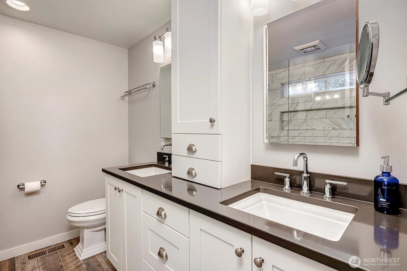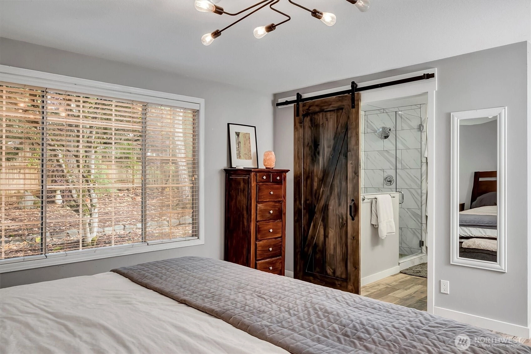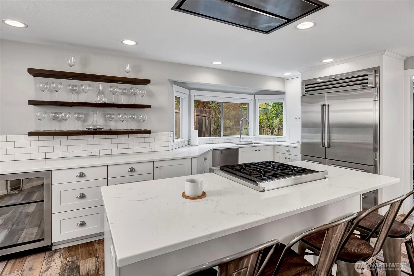 Beautifully updated rambler in the highly desirable English Hill community. This thoughtfully remodeled home features a stunning, fully updated kitchen with high-end Sub-Zero and Wolf appliances, slab quartz counters, and a spacious breakfast bar overlooking the inviting family room with heated floors. A/C! The open layout creates a perfect flow for everyday living and entertaining. The large primary suite offers a luxurious, completely updated bath, while two additional bedrooms and a full bath provide ample space for guests. No carpet throughout for easy maintenance. Enjoy outdoor living with a fenced yard and expansive mahogany deck. Quiet cul-de-sac location, top-rated Northshore schools, close in location to everything!