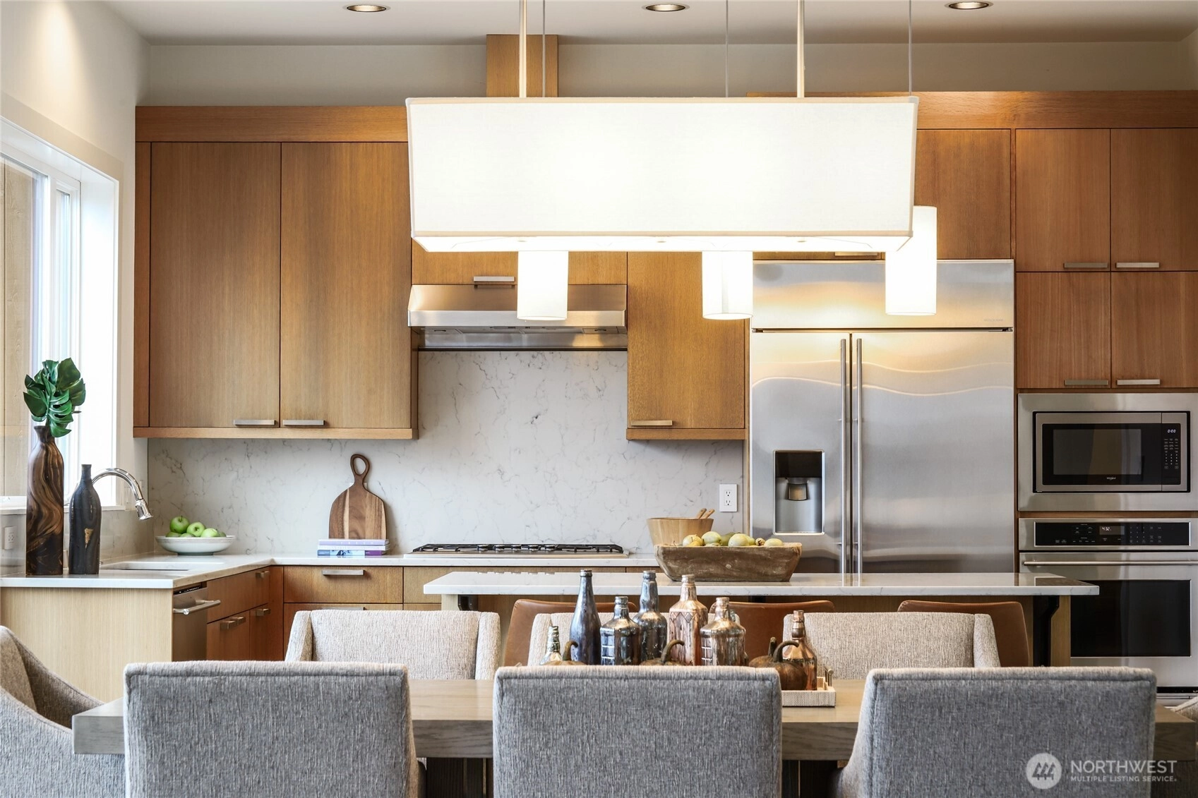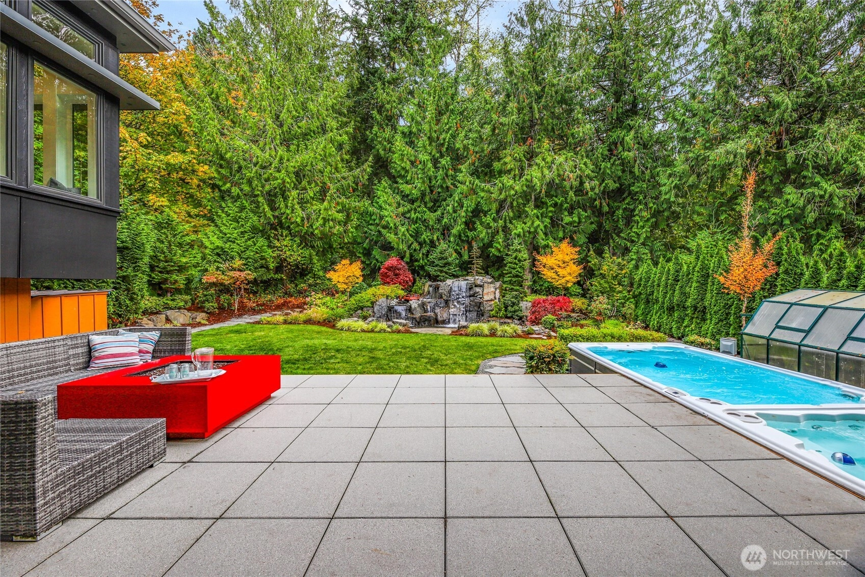Modern solar-powered resort living with panoramic views of Seattle, Bellevue, and Issaquah foothills, perched high in the Harrison St neighborhood! Live above the clouds, basking in sunshine even on misty mornings. Thoughtfully designed for light, art, and connection, featuring gallery-like spaces w/ stunning views. A luxurious Primary Suite w/ spa-inspired finishes. Indoor/outdoor living in a resort-style backyard with a spectacular water fall, modern fire pit, greenhouse, swim spa and a hot tub. Ideal for entertaining or unwinding in privacy. Nestled on a greenbelt lot with a finished 3-car garage, solar array, and over $700K in premium upgrades since last sale. Truly modern, mindful, magnificent!