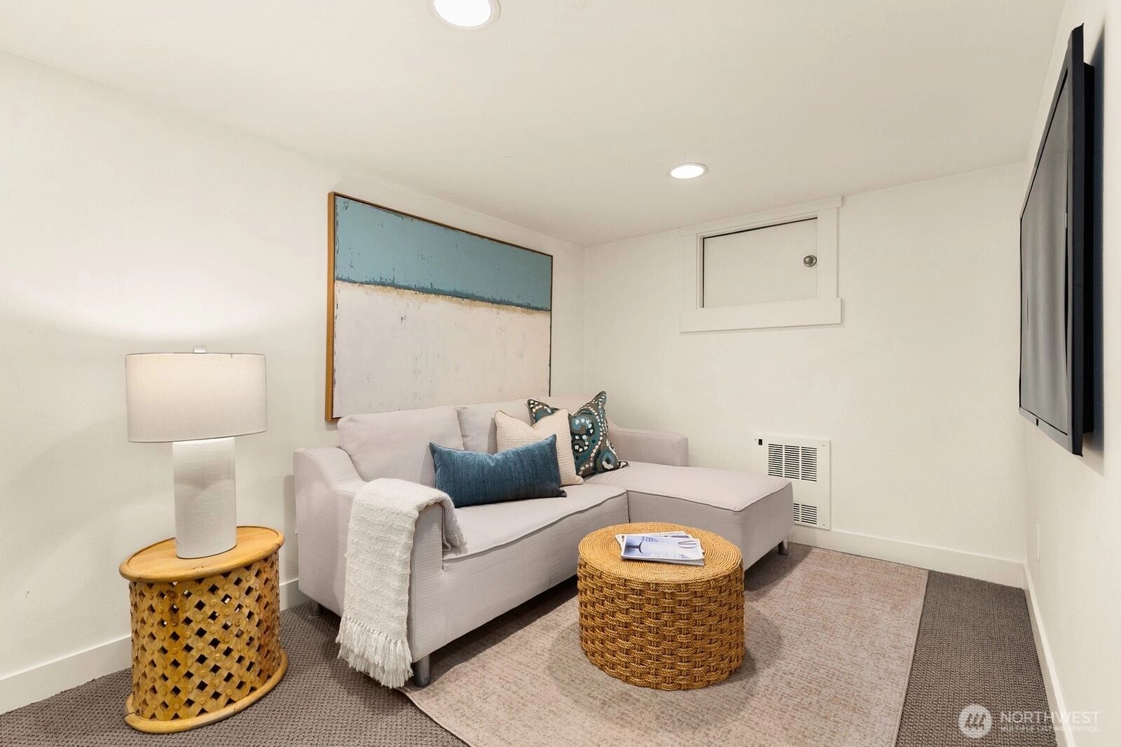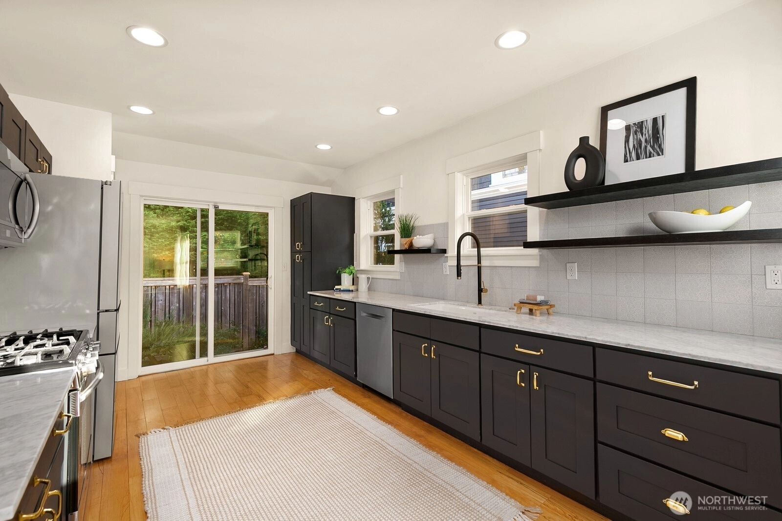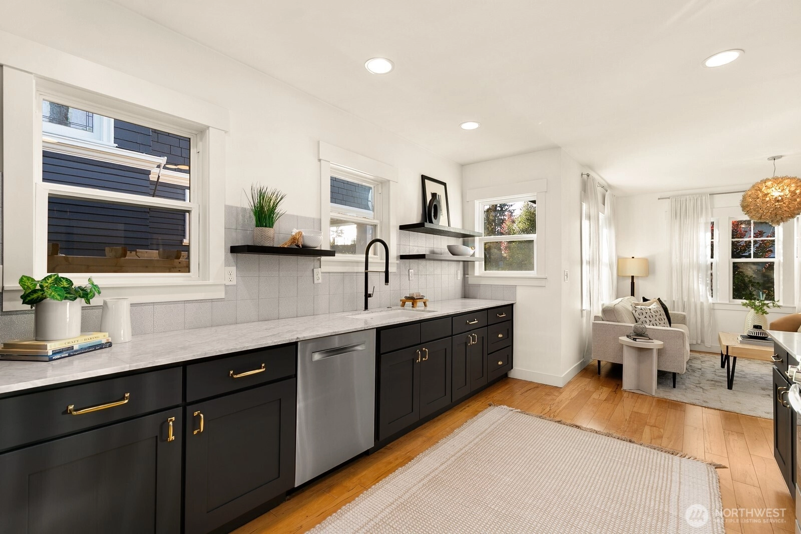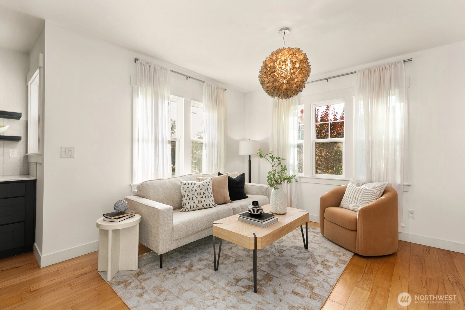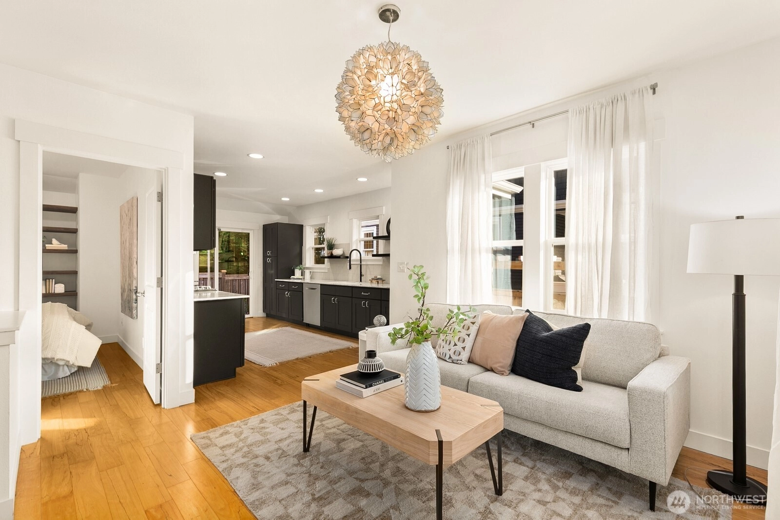 Thoughtfully upgraded and charming corner-lot home in beautiful Leschi! This home offers 4 bedrooms with California Closets, and a beautifully remodeled primary en-suite bathroom with a free-standing tub. The open-concept kitchen has been upgraded with elegant marble counter tops and beautiful Ann Sacks tiles. Radiant floor heating. A fully finished basement provides a large bedroom, a completely remodeled bathroom and a bonus room that can be used as a tv room, play room, or whatever your needs might be. Sit back and relax on the inviting front porch. Easy access to Madrona's restaurants and shops. Off-street parking.