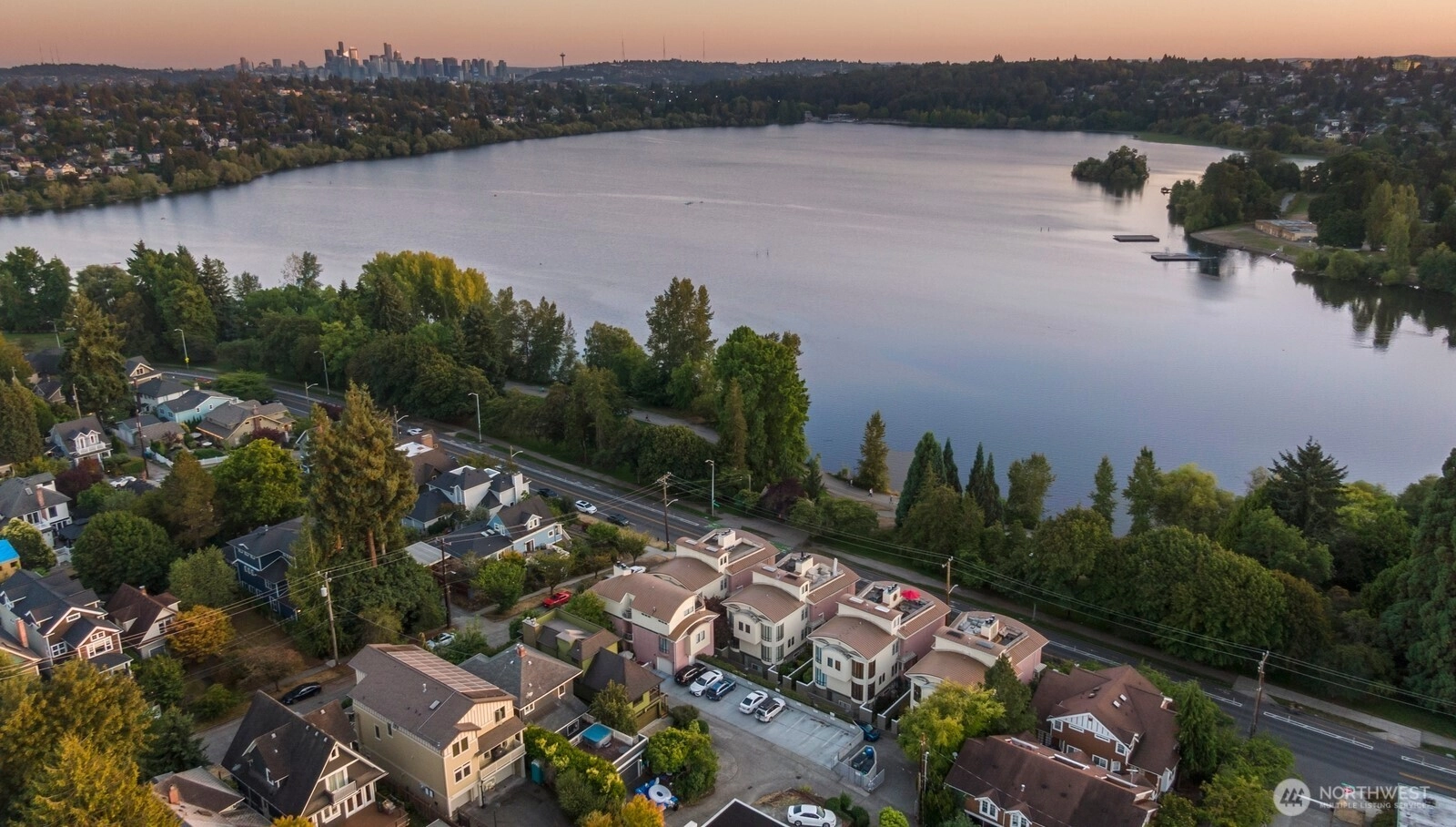 Want a breathtaking front row seat to the changing seasons? Live here and walk Green Lake or to restaurants, shopping and more! This spacious 1,487 sqft condo, lives bigger due to the flow of space and the ample closets (with built-ins!), laundry and 2 bed/1.75 bath on the second floor. And the roof-top deck serves as a lake-view bonus living room. Easy commute and steps from Green Lake, you get serenity, sophistication, walkability, and convenience. These properties rarely on the market and the 14-unit building is well-run by a collaborative/experienced HOA. No pet restrictions, covered parking, garden space and great light on every floor. Seller willing to put money towards closing or dues. Add your touches and make this your very own.