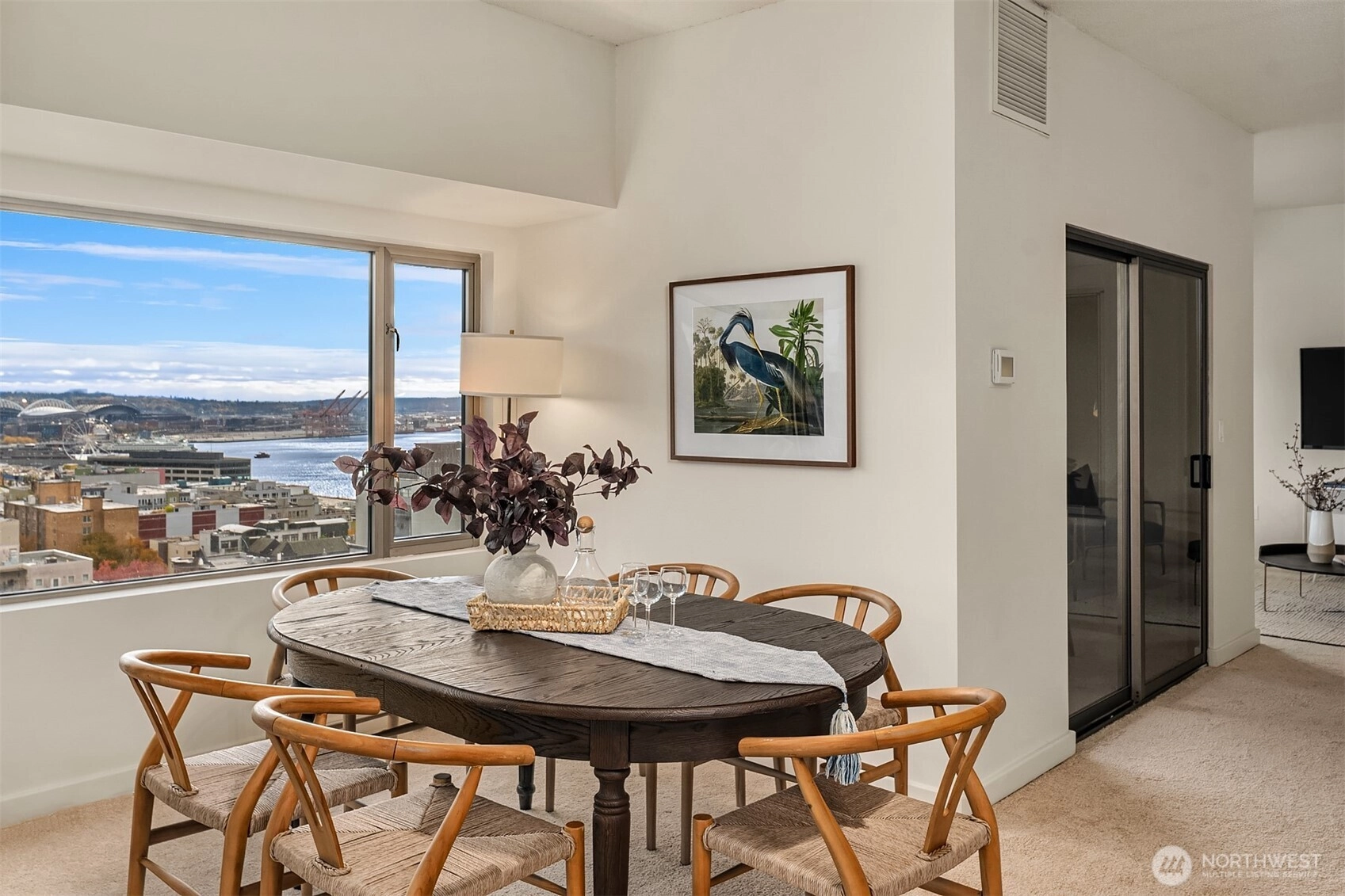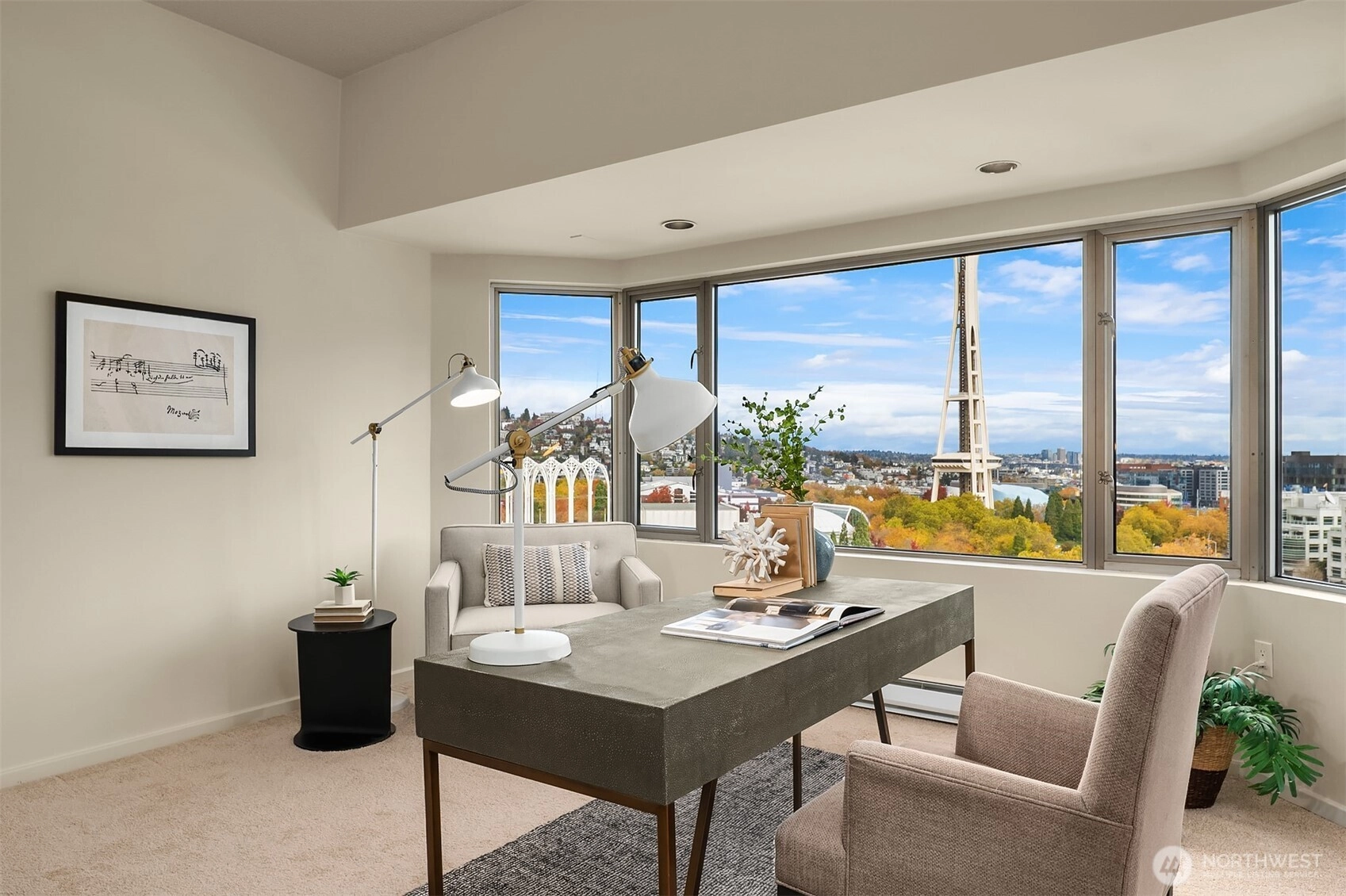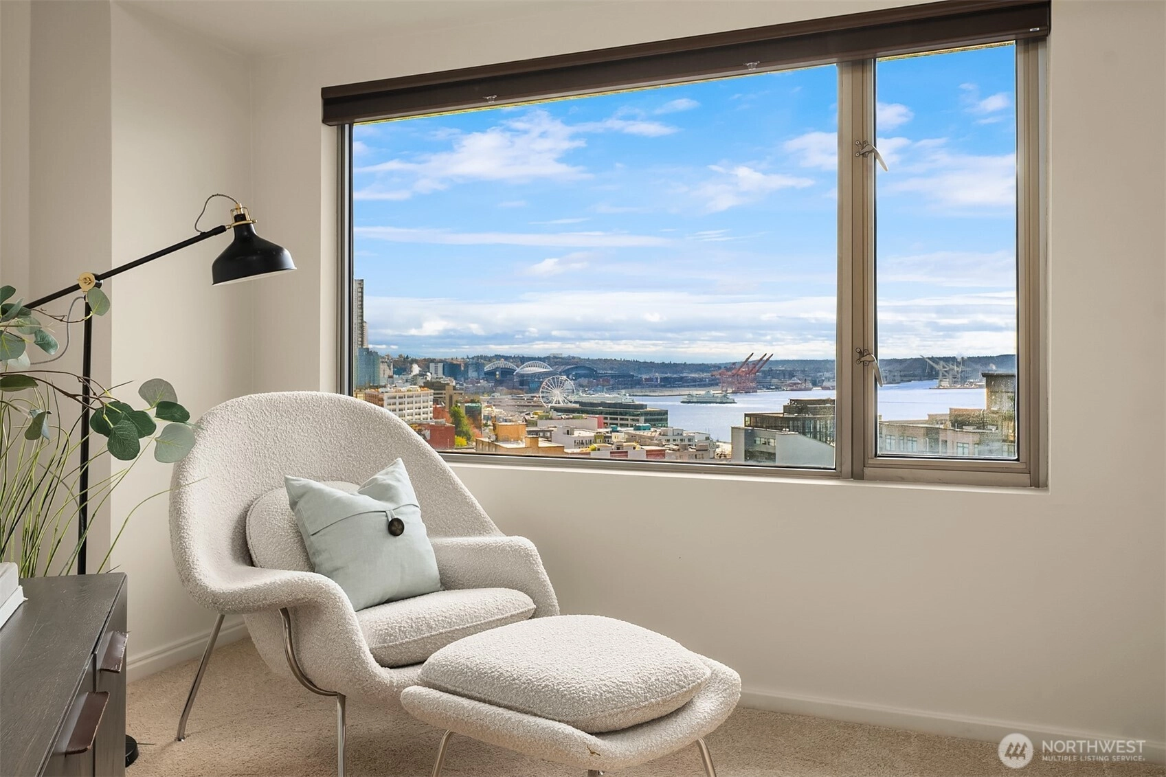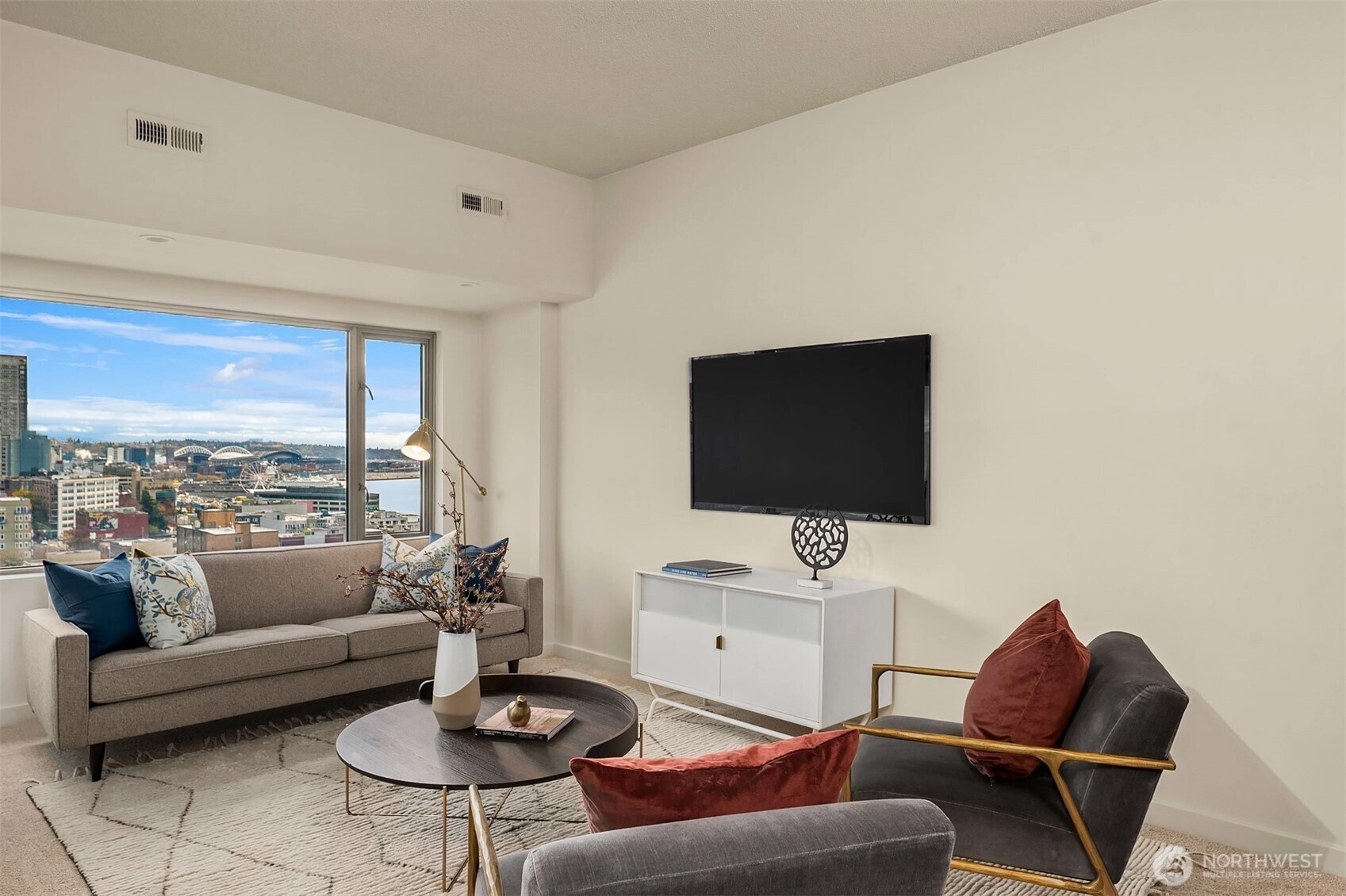 Presenting the Bay Vista- distinctive and elegant urban living at its finest. Wrapped in extraordinary views from Puget Sound to Mt. Rainier to our iconic Space Needle. This 2300+ sq. ft. SE facing home delights at every turn. The flexible lay-out enhances the spaciousness & views from living to dining to family room w/2 south facing balconies. With 3 bed/3bath + modern, bright updated kitchen prepare to live, work and enjoy life at the Bay Vista. Outdoor amenities on the 6th fl. plaza include sport court, walking path, planting gardens, & outdoor kitchen /fireplace to enjoy those views! Don't miss the pool/hot tub, sauna & guest suite. Two parking spots/two storage units. Impeccable 24/7 concierge service. Downtown living at its best.