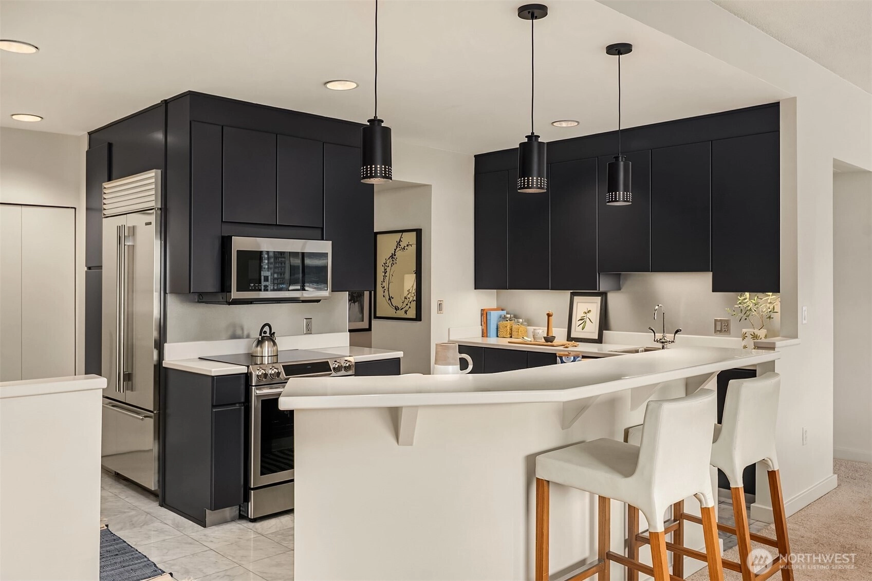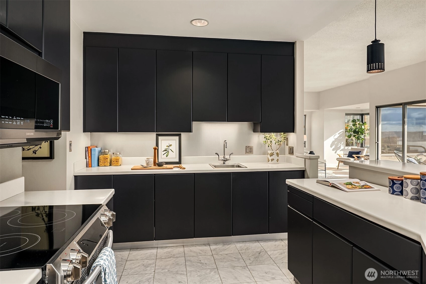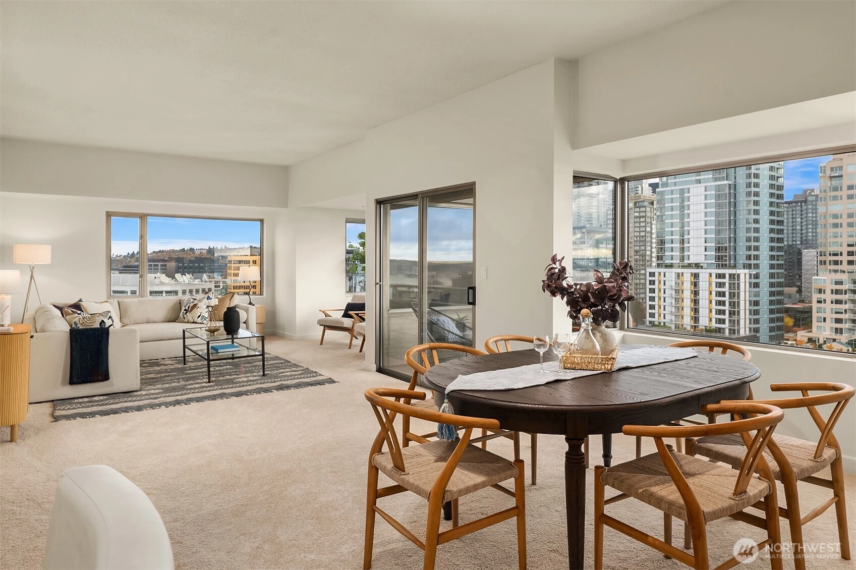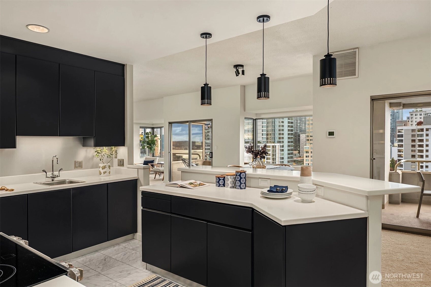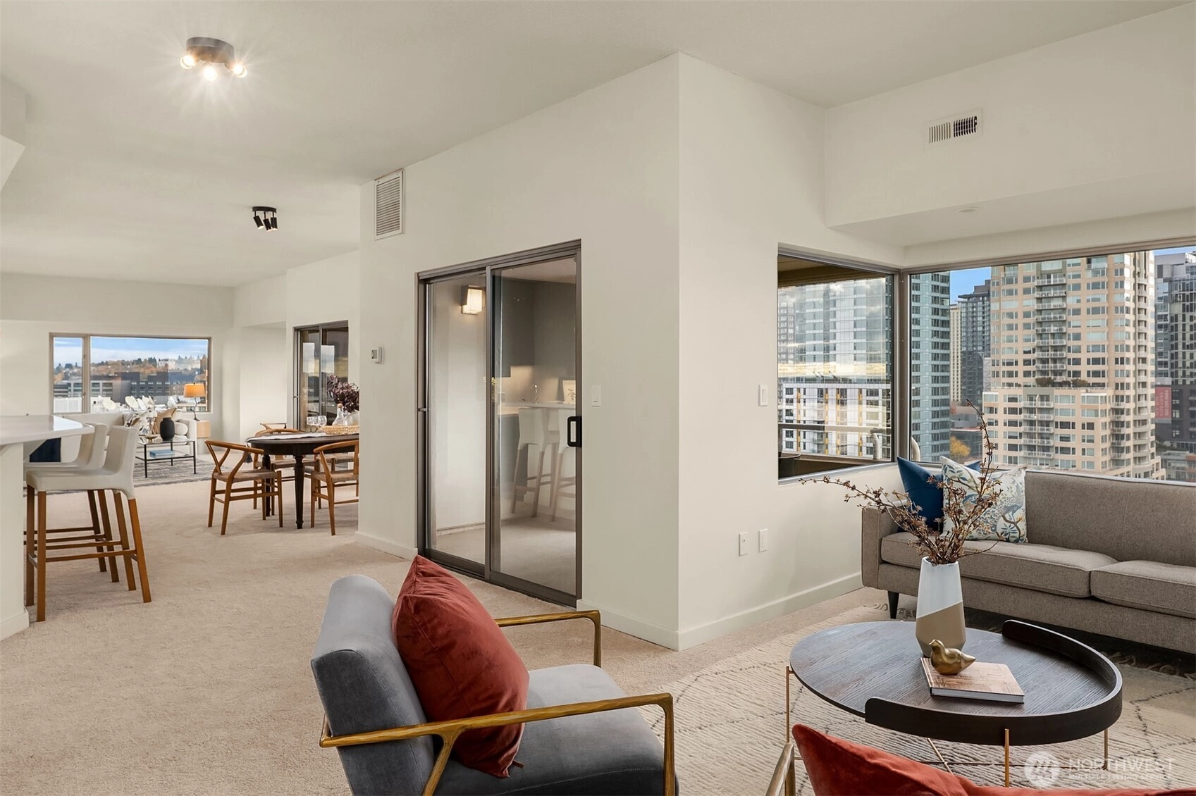 Presenting the Bay Vista- distinctive and elegant urban living at its finest. Wrapped in extraordinary views from Puget Sound to Mt. Rainier to our iconic Space Needle. This 2300+ sq. ft. SE facing home delights at every turn. The flexible lay-out enhances the spaciousness & views from living to dining to family room w/2 south facing balconies. With 3 bed/3bath + modern, bright updated kitchen prepare to live, work and enjoy life at the Bay Vista. Outdoor amenities on the 6th fl. plaza include sport court, walking path, planting gardens, & outdoor kitchen /fireplace to enjoy those views! Don't miss the pool/hot tub, sauna & guest suite. Two parking spots/two storage units. Impeccable 24/7 concierge service. Downtown living at its best.