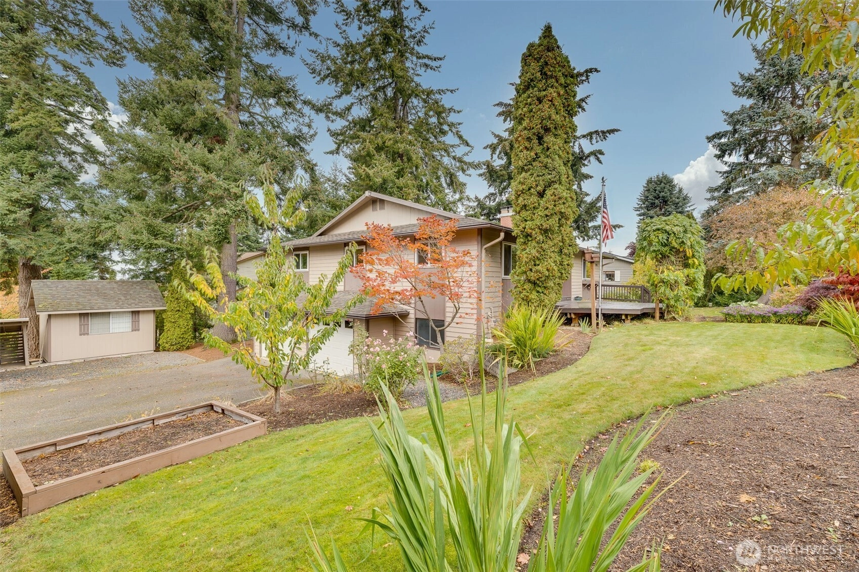Price adjustment on this exceptionally maintained, beautifully landscaped daylight-rambler with peek-a-boo water view. Thoughtfully updated for comfort and style. Main-floor living offers a remodeled kitchen, primary suite, office with both formal & casual gathering spaces. The lower level includes two additional bedrooms, a ¾ bath, and generous bonus room—perfect for guests or extended living. Recent upgrades include dual pane windows, LED lighting, quartz countertop, hardwood & vinyl flooring and new carpets. An oversized two-car garage with workshop & detached powered shop, provide ample hobby space. Landscape is beautiful and includes peach & cherry trees. Ideally located minutes from the Mukilteo Ferry, Hwy 99 & I-5.
