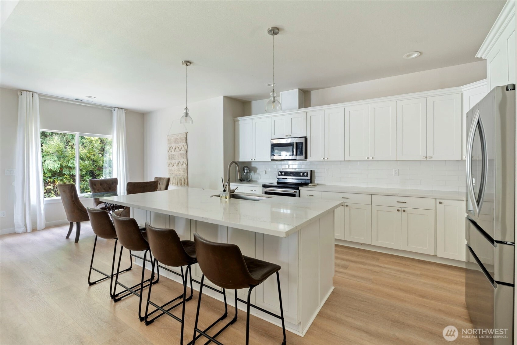 Experience modern comfort and timeless style in this beautifully designed McCleary home. The open floor plan features vaulted ceilings, rich hardwood floors, and a seamless flow between the living, dining, and kitchen areas. The chef’s kitchen is complete with quartz countertops, stainless steel appliances, and a large island perfect for entertaining. Enjoy a spacious primary suite with a luxurious 5-piece bath and walk-in closet. Outside, the covered patio and fully fenced yard create an ideal space for relaxing or hosting guests. A 3-car Tandem garage provides ample storage, and the location offers easy access to Hwy 8 for a quick commute to Olympia or the coast.