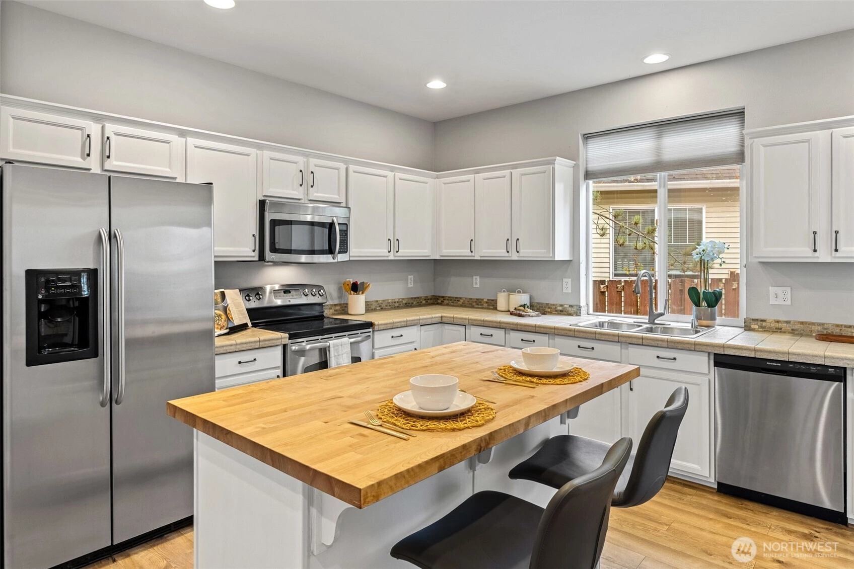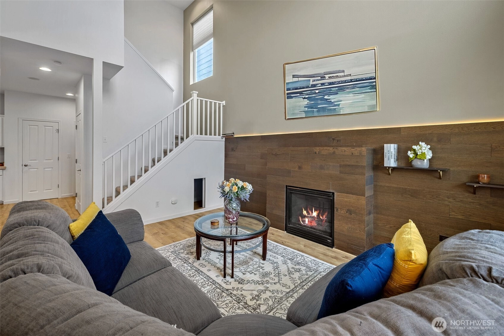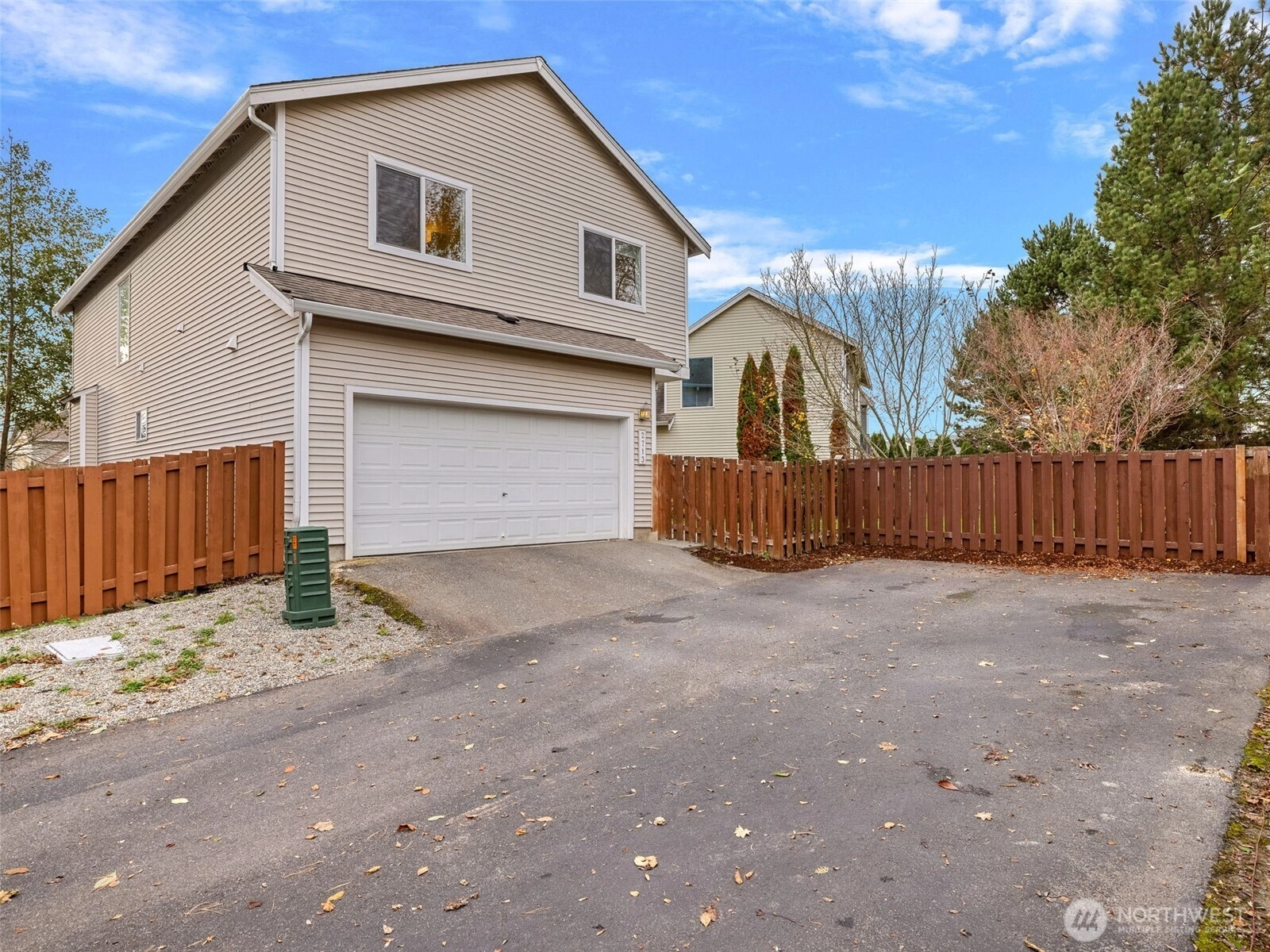 Beautifully maintained Model Home in the desirable Crosswater community! Bright and open floor plan with vaulted ceilings, abundant natural light, and a custom gas fireplace in the living room. The chef’s kitchen features a butcher block island with bar seating, ample counter space, cabinets, and a pantry. Large fenced backyard includes a covered patio and paved area perfect for outdoor dining. Upstairs offers a spacious primary suite with a 5-piece bath and two closets, plus a separate laundry room. New furnace and newer water heater for peace of mind. Attached 2-car garage off a private alley provides extra parking and privacy. Crosswater offers parks, playgrounds, and is in the Lake Stevens School District.