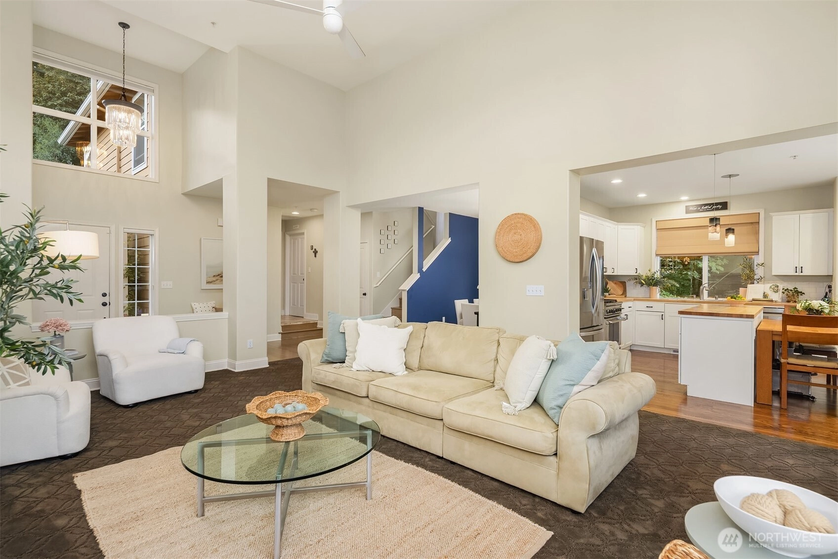 This 2-story contemporary home with basement is adjacent to the wooded trails of Juanita Heights Park that lead to Juanita village, the beach, and Lake WA schools. Offering immense flexibility, this home’s floor plan features 4 bedrooms plus a bonus 5th room and a large den. Potential for a MIL suite with separate entry downstairs. Its spacious primary suite has a boutique feel, with soaking tub and standalone shower. 20ft ceilings show off a huge sunlit great room with separate dining. Step into an eat-in kitchen, with refinished white cabinetry, butcher block countertops and a walk-in pantry. This quiet and private lot offers a tranquil retreat thanks to its Zen Garden and full-length deck with South Easterly views.