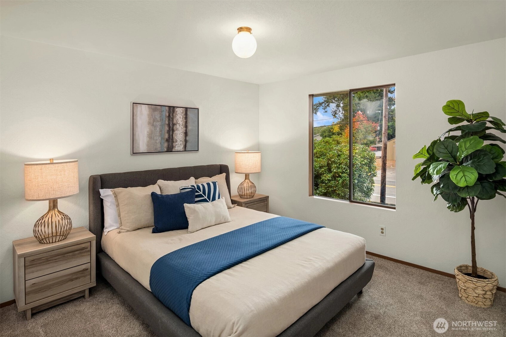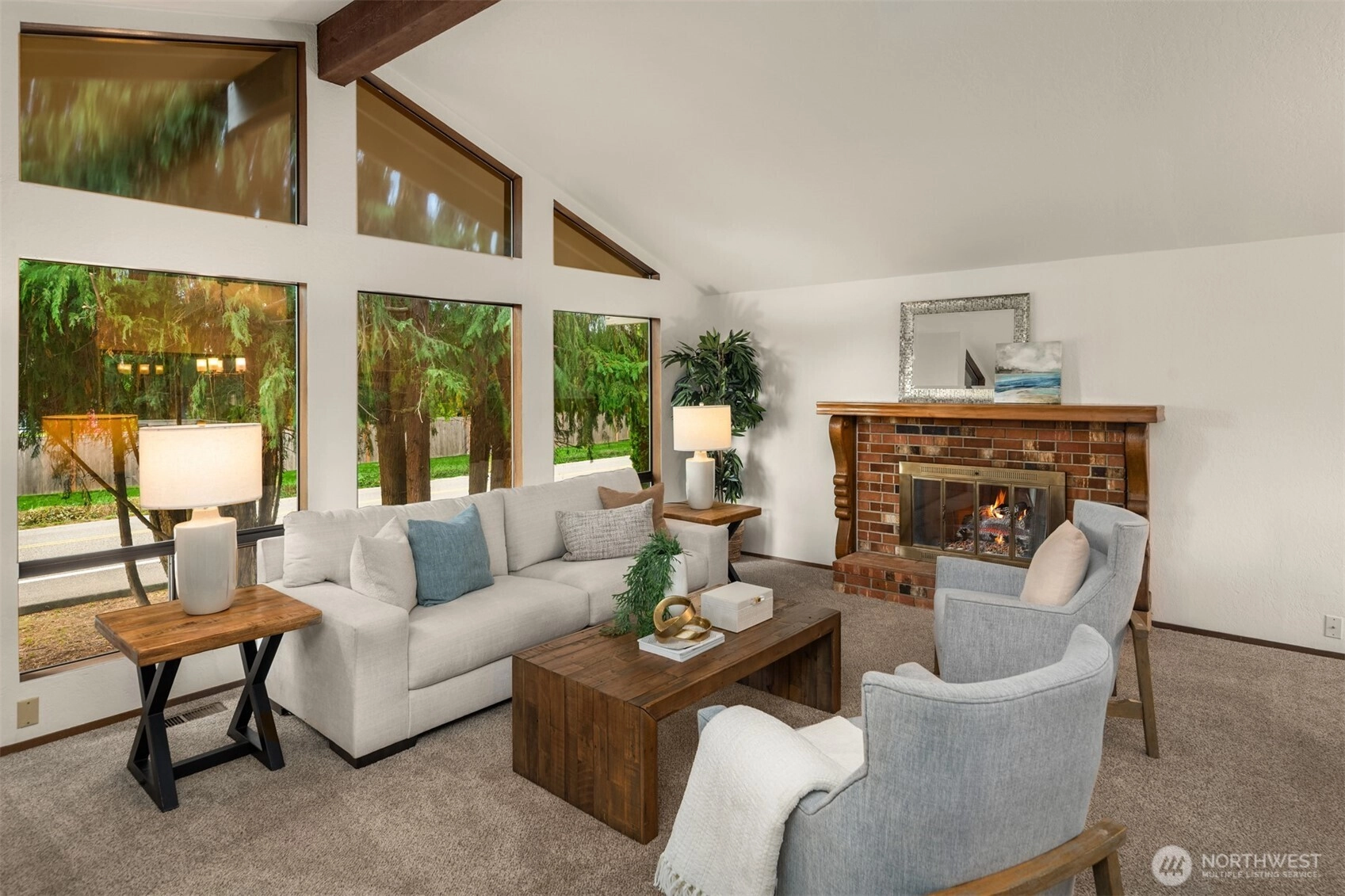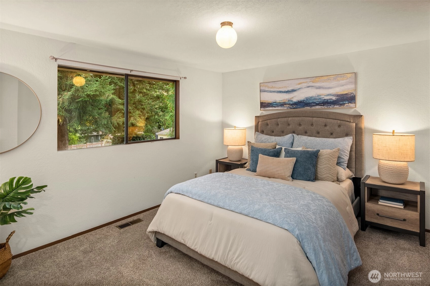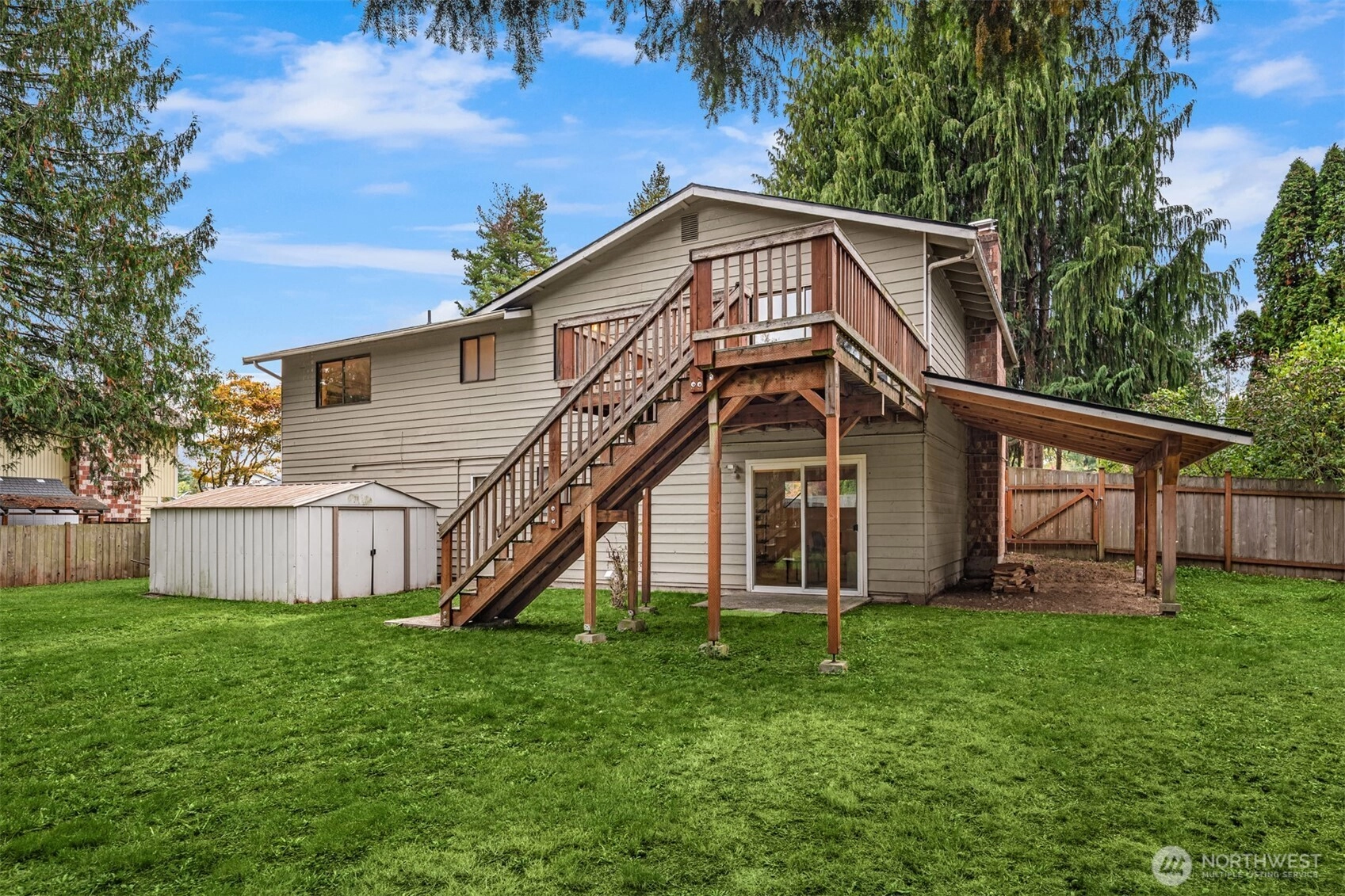 Spacious 3-bed, 2.5-bath split-level home with 1,929 sq ft of stylish updates! Enjoy vaulted ceilings, extra-large windows, and abundant natural light upstairs, plus a second living/rec room with slider access to the fully fenced backyard. Entertain on the large deck and take in the oversized lot. Freshly updated with new carpet, flooring, paint, appliances, lighting, and more—including a stunning master bath with walk-in shower and built-in bench. Cozy up with wood-burning fireplaces on both levels. Minutes to I-5, Mill Creek shopping, groceries, and just 2 blocks from Martha Lake!