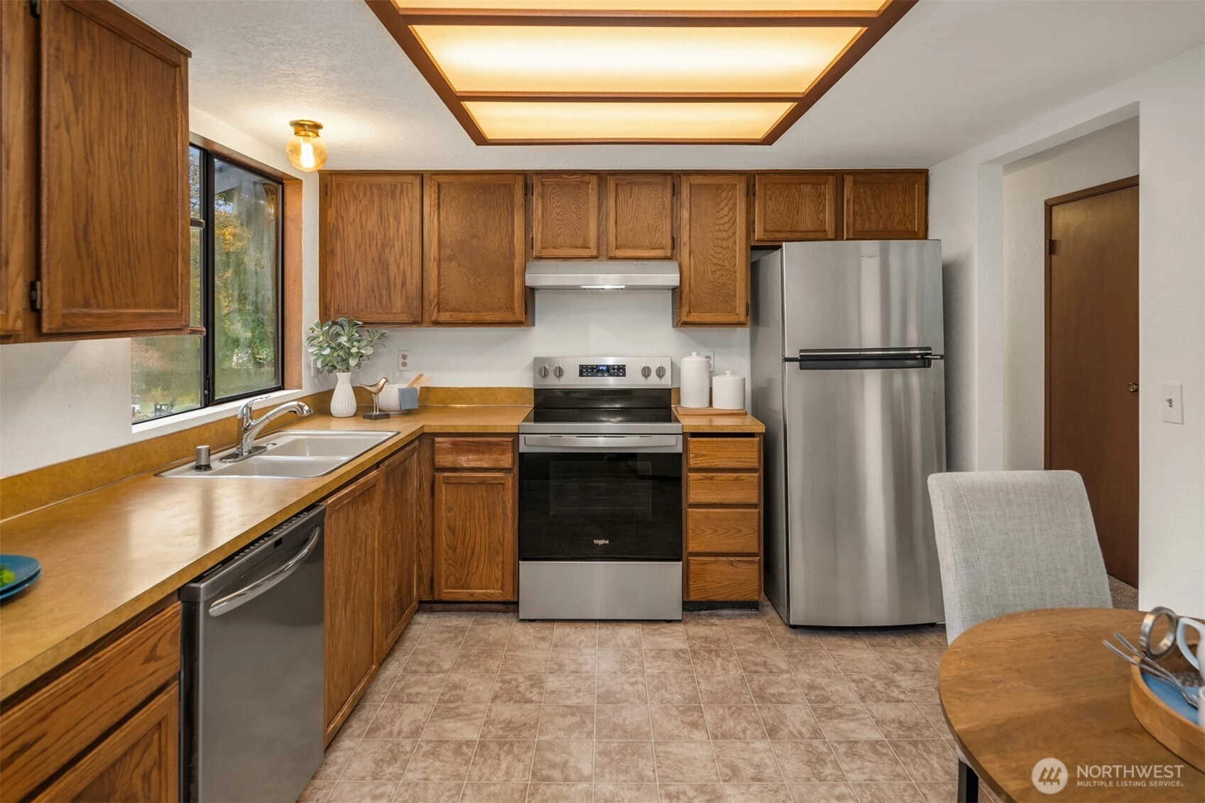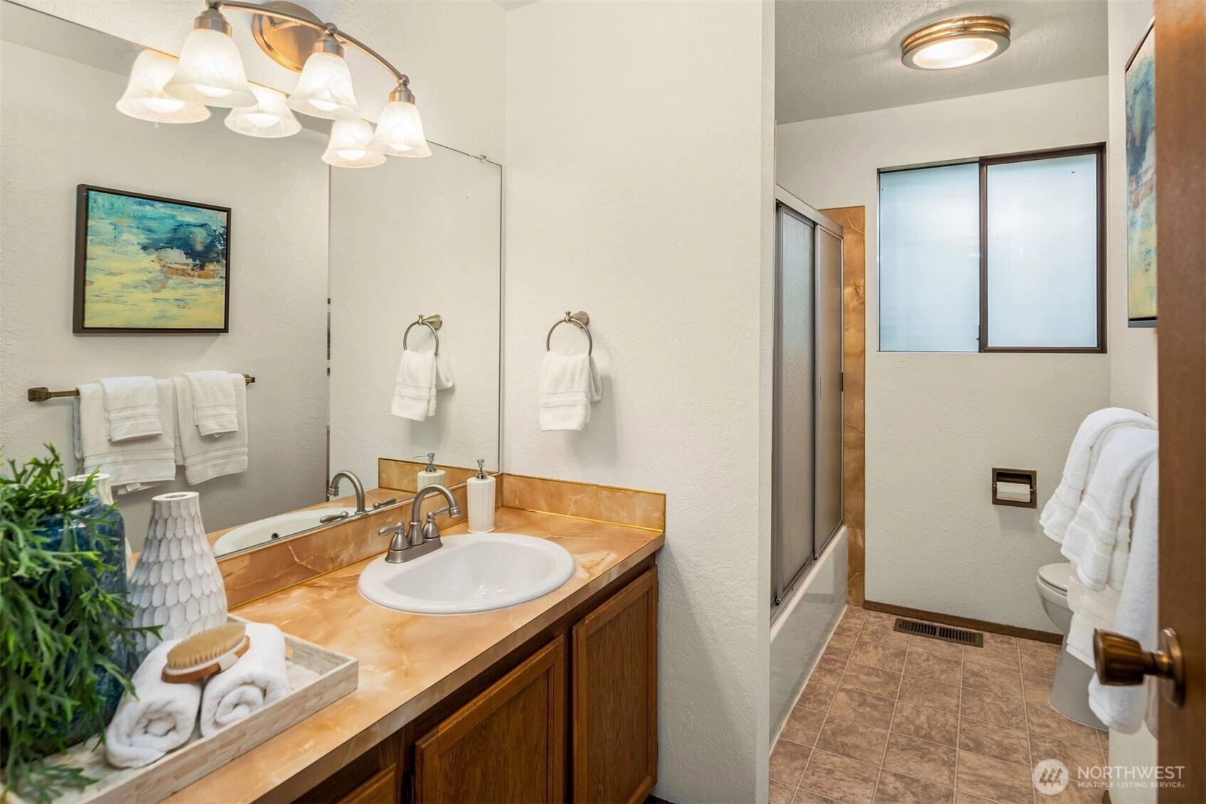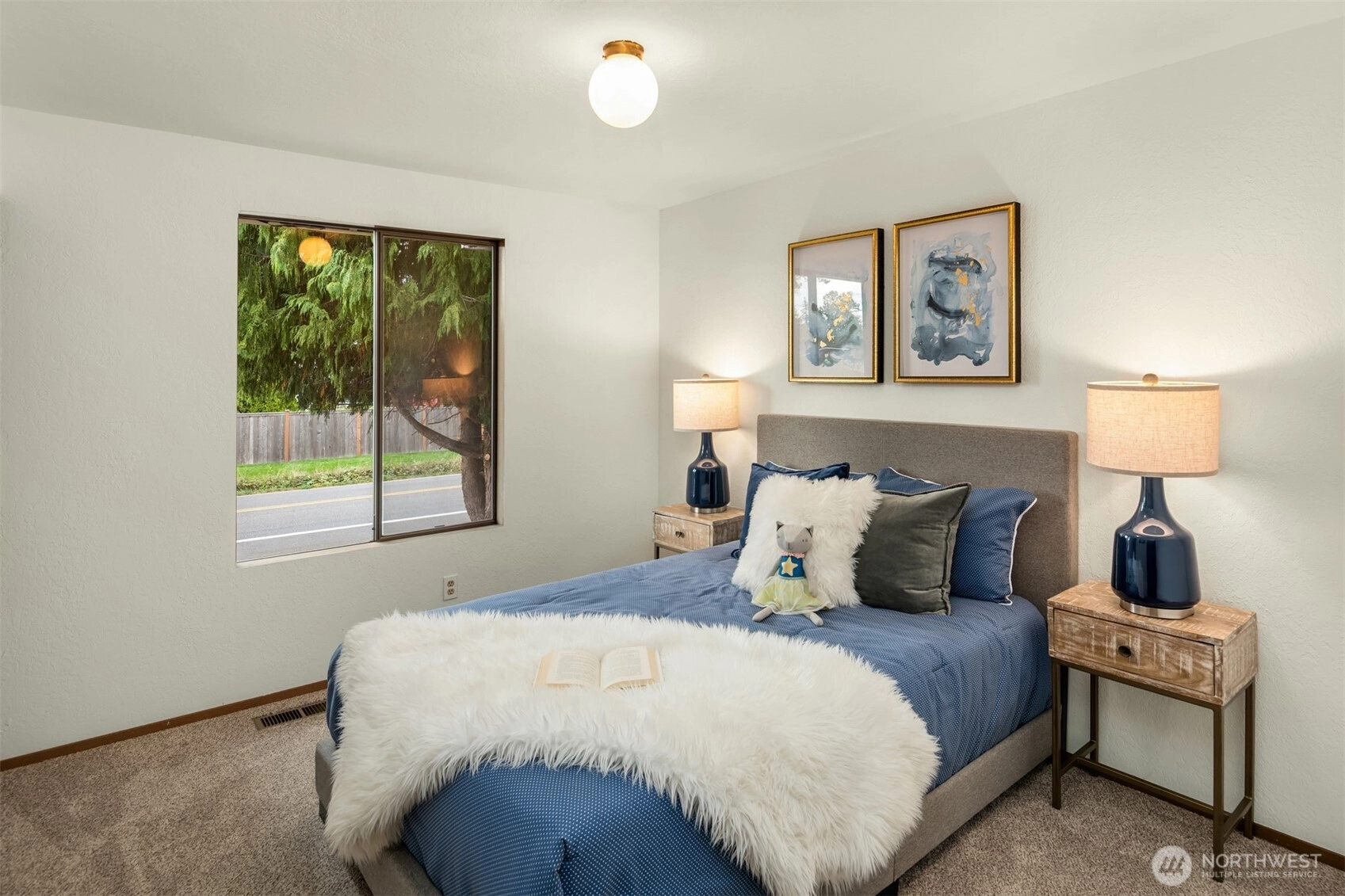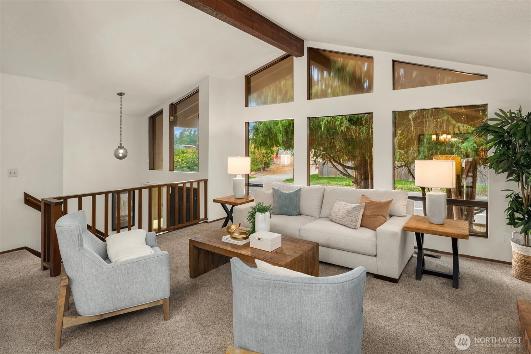 Spacious 3-bed, 2.5-bath split-level home with 1,929 sq ft of stylish updates! Enjoy vaulted ceilings, extra-large windows, and abundant natural light upstairs, plus a second living/rec room with slider access to the fully fenced backyard. Entertain on the large deck and take in the oversized lot. Freshly updated with new carpet, flooring, paint, appliances, lighting, and more—including a stunning master bath with walk-in shower and built-in bench. Cozy up with wood-burning fireplaces on both levels. Minutes to I-5, Mill Creek shopping, groceries, and just 2 blocks from Martha Lake!