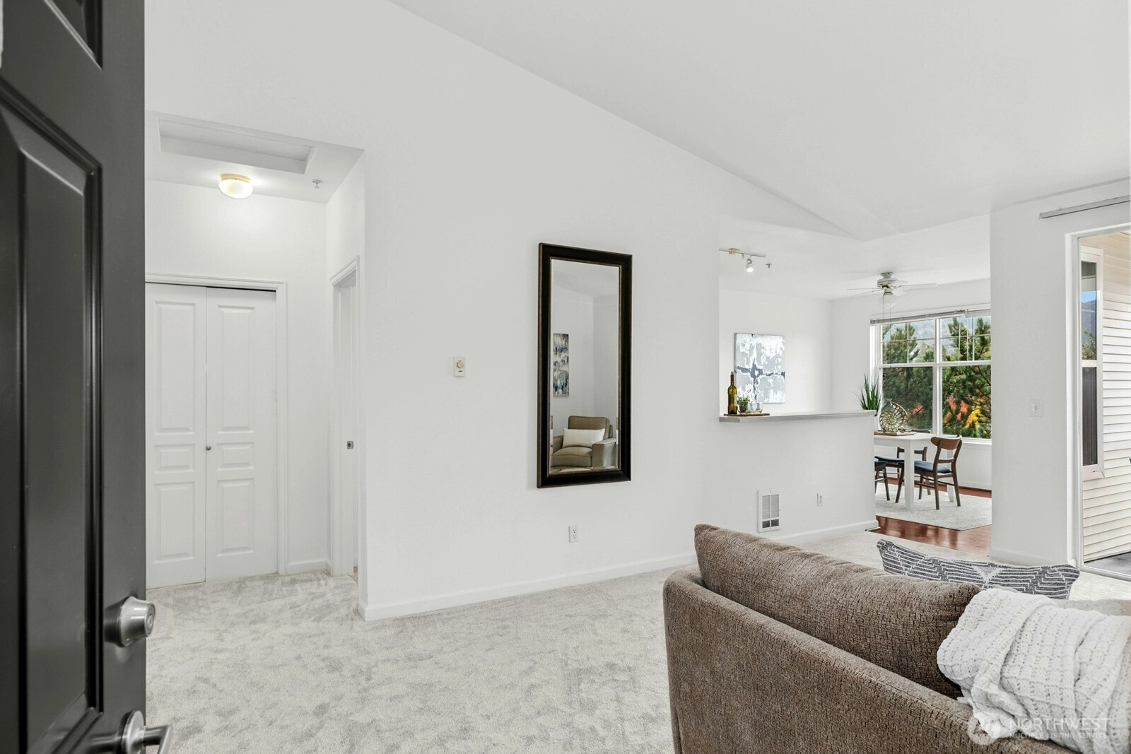 Top floor Penthouse condo with vaulted ceilings and amazing views of the Issaquah Alps on your own private deck. 2 bedroom home with a walk-in closet is centrally located in Issaquah, close to shopping, grocery, entertainment and hiking. Whether you are looking for a new home or investment property (NO RENTAL CAP) this condo has tons of appeal. Your own garage & covered carport. Fresh interior paint, brand-new carpet & abundant natural light throughout. Stainless steel appliances in Kitchen. Cozy gas fireplace. Pet-friendly community. Lots of guest parking. Walk to transit. Welcome home.