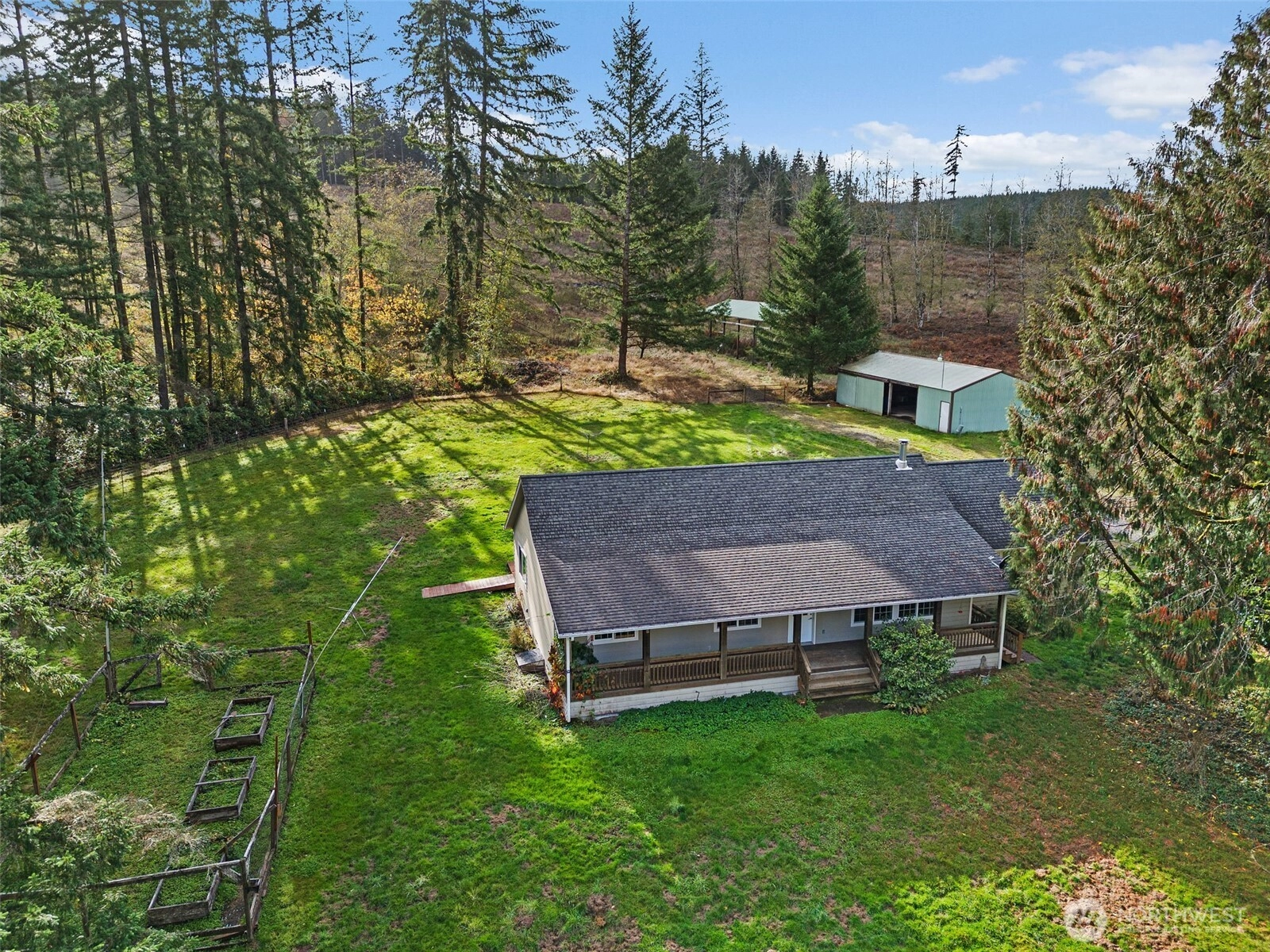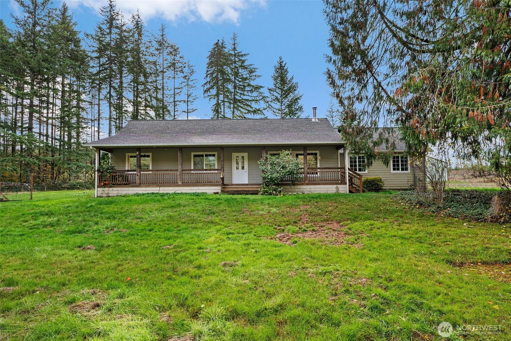 Custom ranch-style home on 8 scenic acres (including 1 fully fenced acre) offers country privacy while close to city amenities. An expansive covered front porch welcomes you to relax and take in the peaceful surroundings, while the spacious back deck is perfect for outdoor dining and BBQs or watching wildlife. Year-round comfort is provided by a heat pump and wood stove, while the open floor plan provides a spacious feel with flexibility in layout and flow. Property includes a 2-car oversized attached garage, 3-stall shop with enclosed workshop, 24x60 canopy-covered pole building, and fenced garden—perfect for hobbies, equipment, or animals. A rare opportunity to enjoy serenity, space and functionality all at an exceptional price!