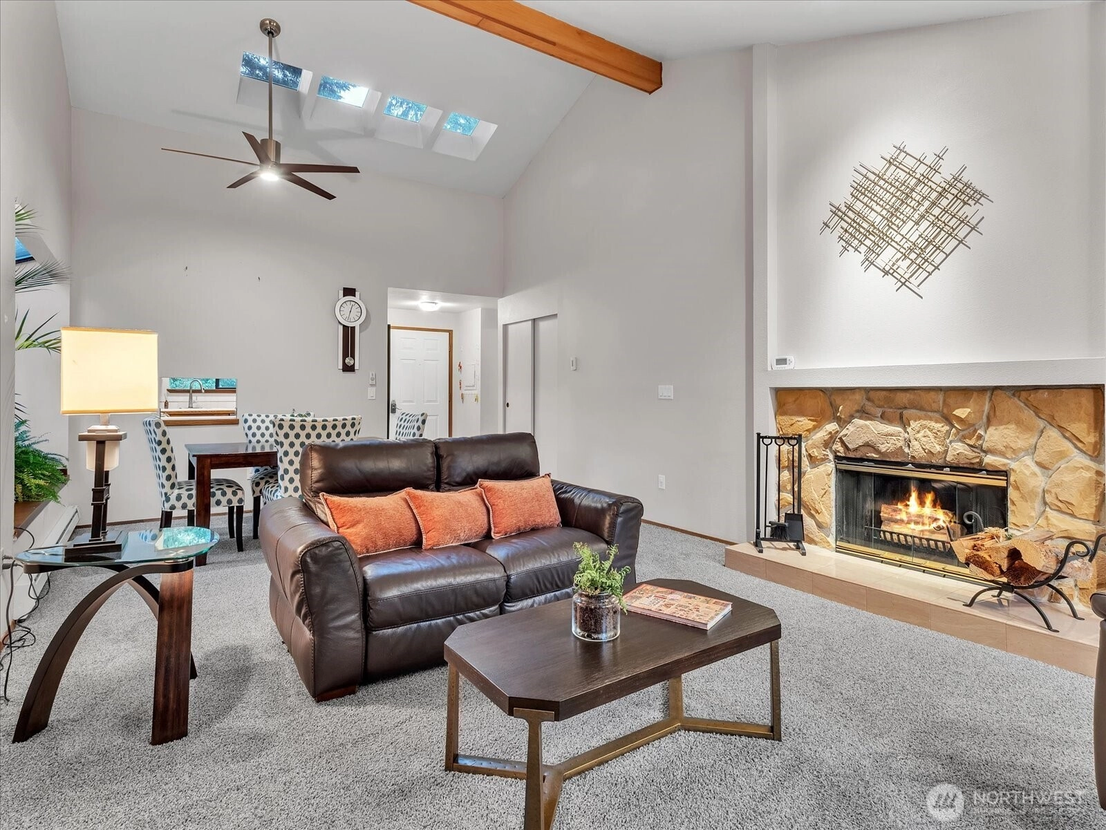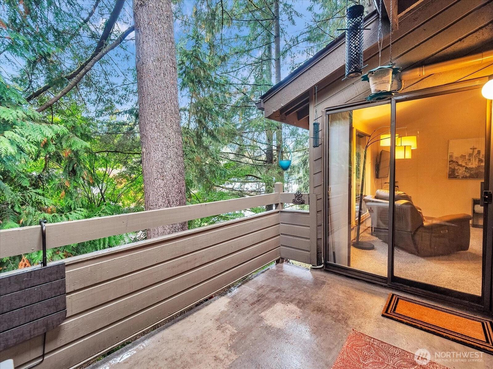 Welcome home to this serene top-floor end unit tucked in the trees of desirable Lake Forest Park—just 20 minutes from Seattle! Enjoy effortless commuting with the new light rail station less than 10 minutes away. Thoughtfully updated with new appliances, W/D, replaced window panes + custom blinds, newer water heater, and energy-efficient mini-split A/C. The vaulted ceilings, cozy wood fireplace, and private deck overlooking lush greenery create the perfect retreat. Includes covered parking and two storage units for convenience. The well-managed HOA recently replaced all roofs and has no rental cap—live in comfort or invest with confidence. Located in the award-winning Shoreline School District, close to Lake Washington, parks, and shopping.