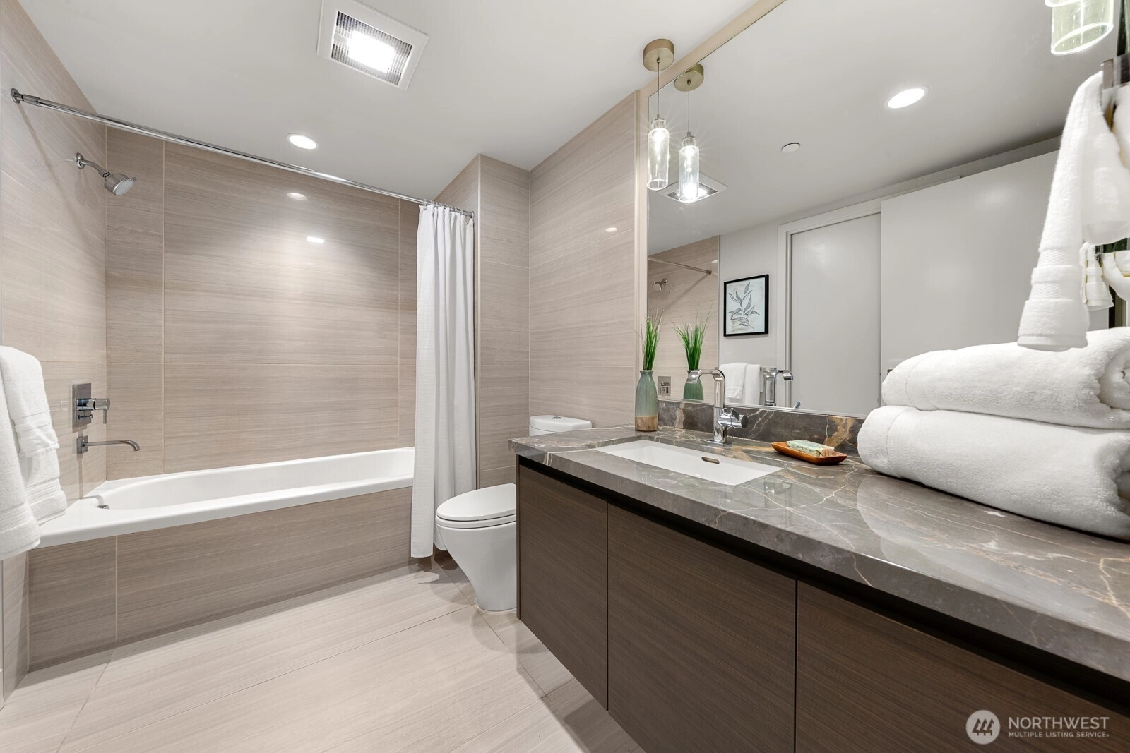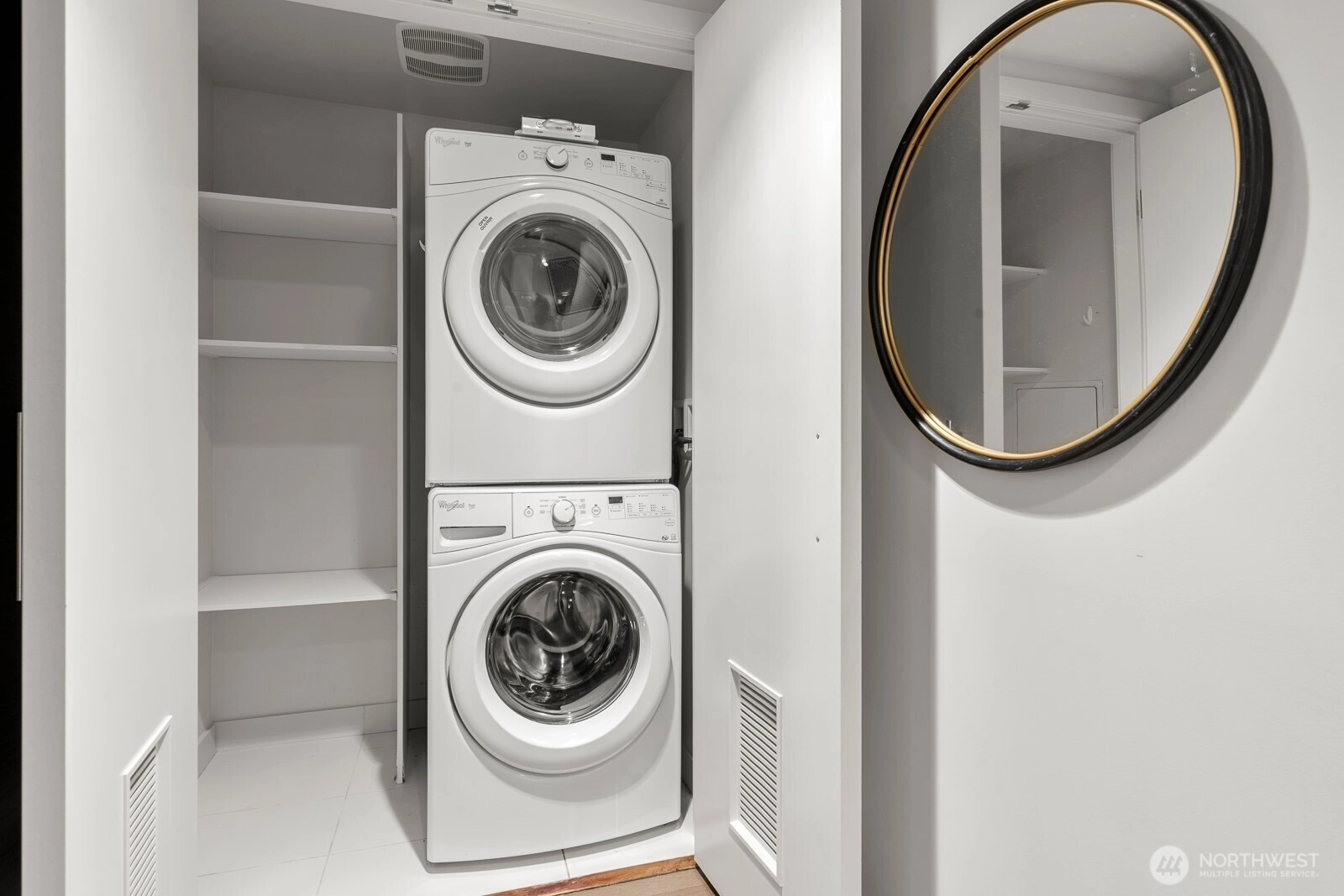 Luxury living at Insignia in this 1 bedroom + den condo. High end kitchen that is open to living and dining rooms. Lovely hardwood floors and carpeted bedroom. In unit washer & dryer and lots of closet space and storage locker as well! Balcony for your plants and table & chairs. Insignia is a unique condo because of all the amenities and community activities. 24hr concierge, indoor pool, hot tub, sauna, steam room, fitness center, yoga and Pilates studio, theater, 41st floor lounges and 7th floor park with BBQs! It even has a car wash and pet spa area. 2 pets allowed. Unique community activities include holiday parties, ice cream social, 70's party, cooking classes, game nights and more.