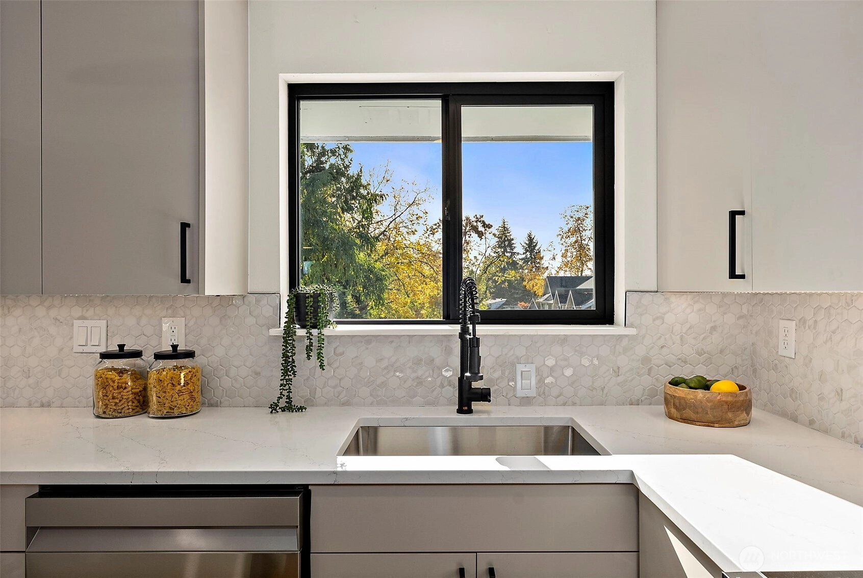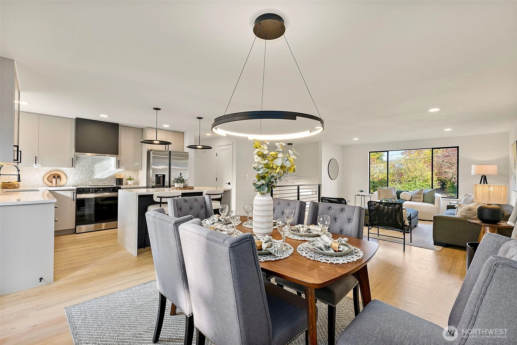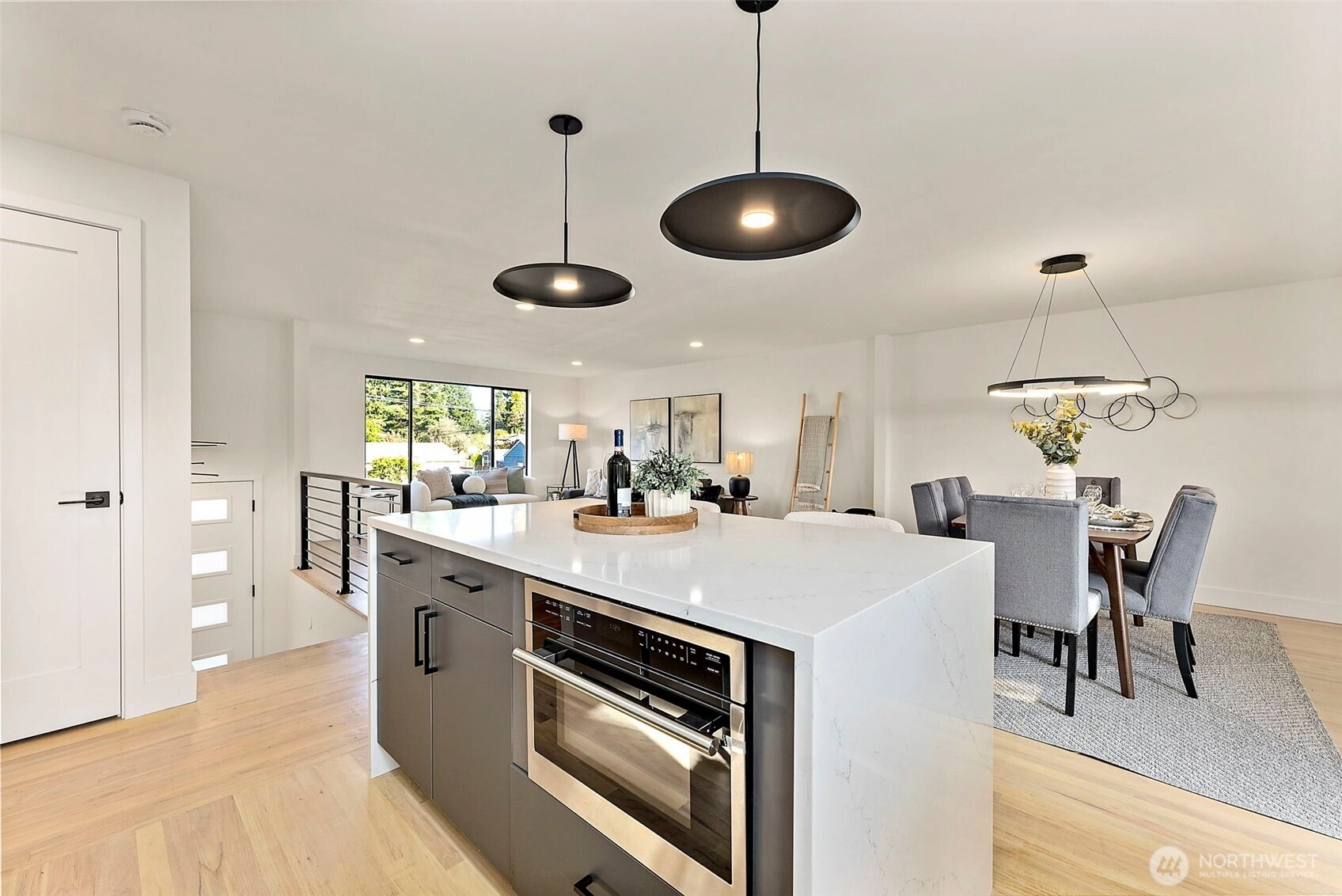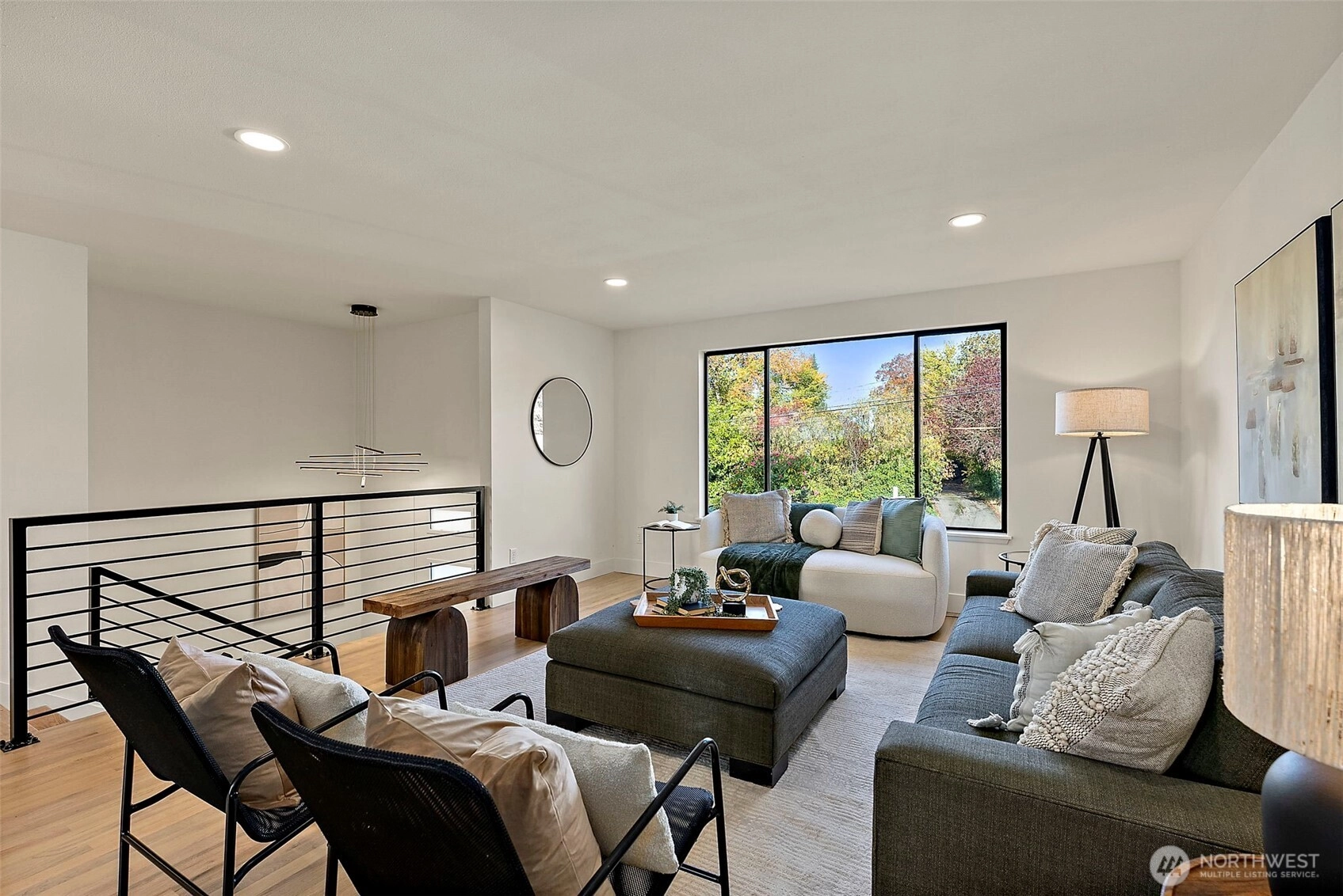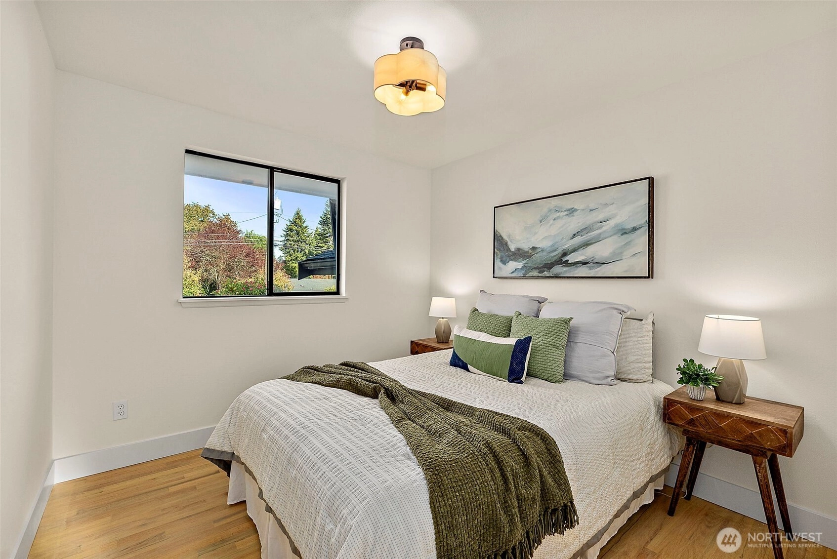 This ultra-modern 4-bedroom, 2.5-bath home has been fully remodeled with chic design elements and clean, sophisticated finishes throughout. The gorgeous kitchen features sleek cabinetry, quartz countertops, and stainless steel appliances, complemented by stunning updated bathrooms and rich hardwood floors. The generous bonus room downstairs provides flexible space for media, work, or play. Enjoy the spacious lot with a deck overlooking the yard below with brand new fence—ideal for entertaining or relaxing outdoors. Ample parking with a long driveway for up to four cars plus street parking. Located near Burien’s boutique shopping, wonderful restaurants, and quick freeway access, this home blends modern luxury with everyday ease.