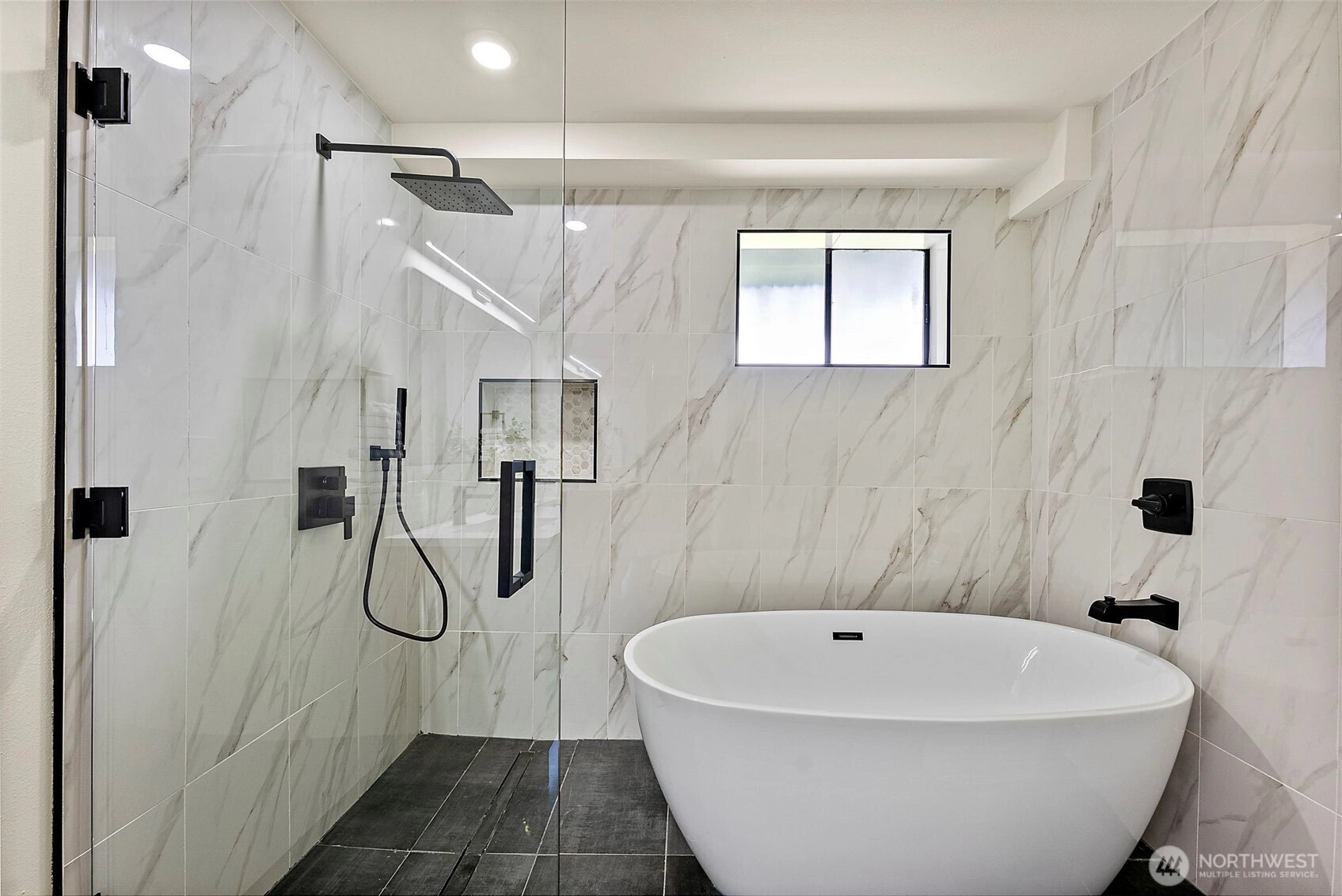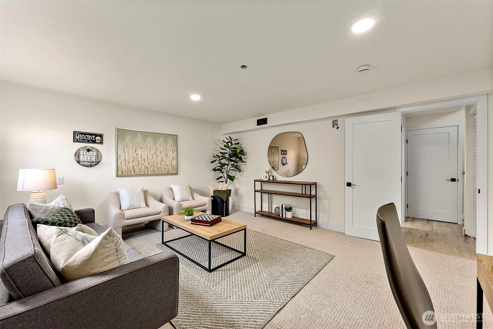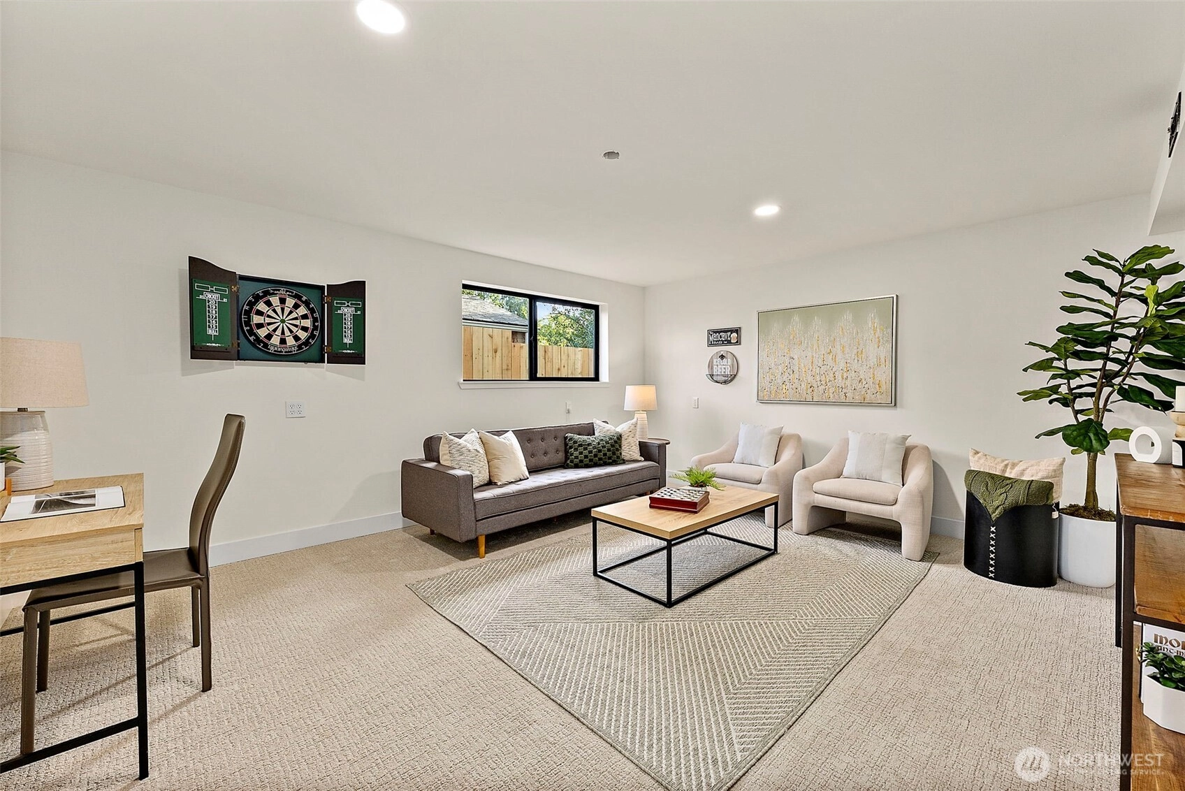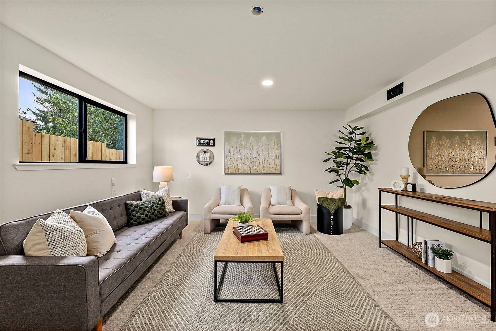 This ultra-modern 4-bedroom, 2.5-bath home has been fully remodeled with chic design elements and clean, sophisticated finishes throughout. The gorgeous kitchen features sleek cabinetry, quartz countertops, and stainless steel appliances, complemented by stunning updated bathrooms and rich hardwood floors. The generous bonus room downstairs provides flexible space for media, work, or play. Enjoy the spacious lot with a deck overlooking the yard below with brand new fence—ideal for entertaining or relaxing outdoors. Ample parking with a long driveway for up to four cars plus street parking. Located near Burien’s boutique shopping, wonderful restaurants, and quick freeway access, this home blends modern luxury with everyday ease.