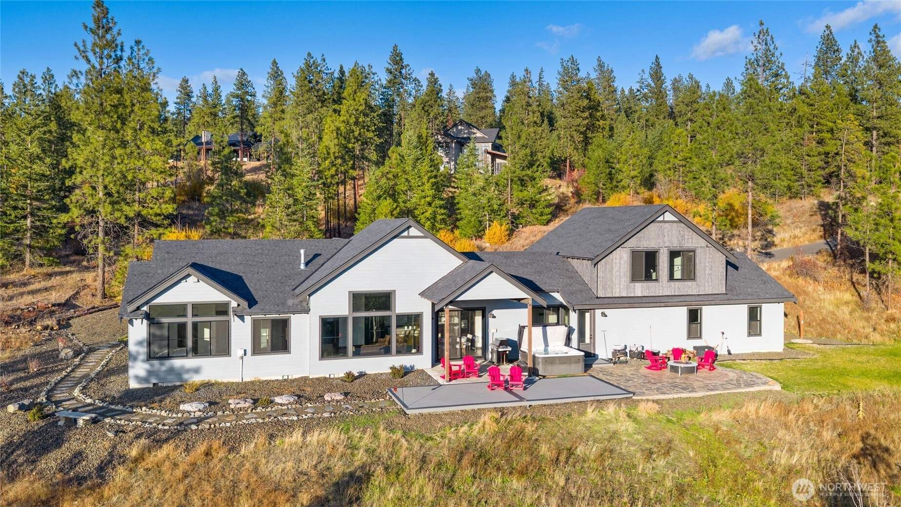 Find your mountain escape in the Timberline at Skyline Ridge neighborhood, Cle Elum’s newest community. Enjoy southern-facing exposure with stunning views of the valley and Peoh Point. This rambler style home offers 3 bedrooms on the main floor, plus a 4th bedroom bonus space with built-in bunks above the garage. Relax in your private outdoor space with a firepit, hot tub, and BBQ. Covered outdoor living to enjoy year round. Explore your 5 acres and discover a custom-built tree fort! A 3-car garage provides room for all your gear. Future community clubhouse underway. Come claim your spot in the sun!