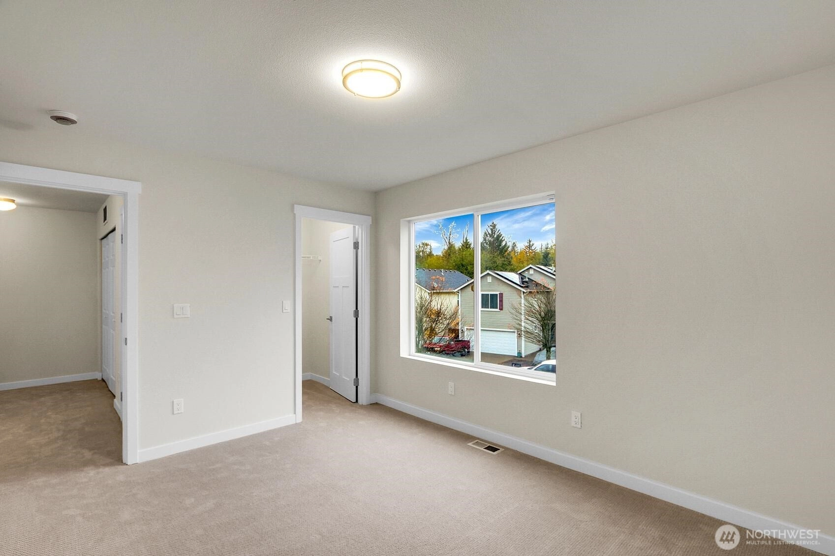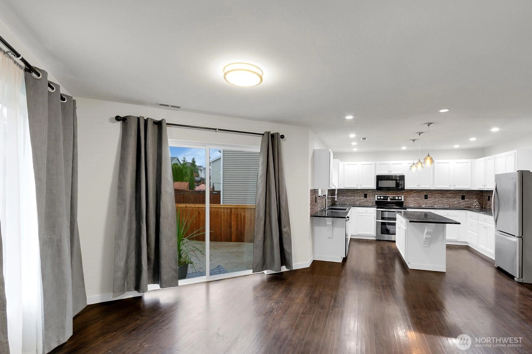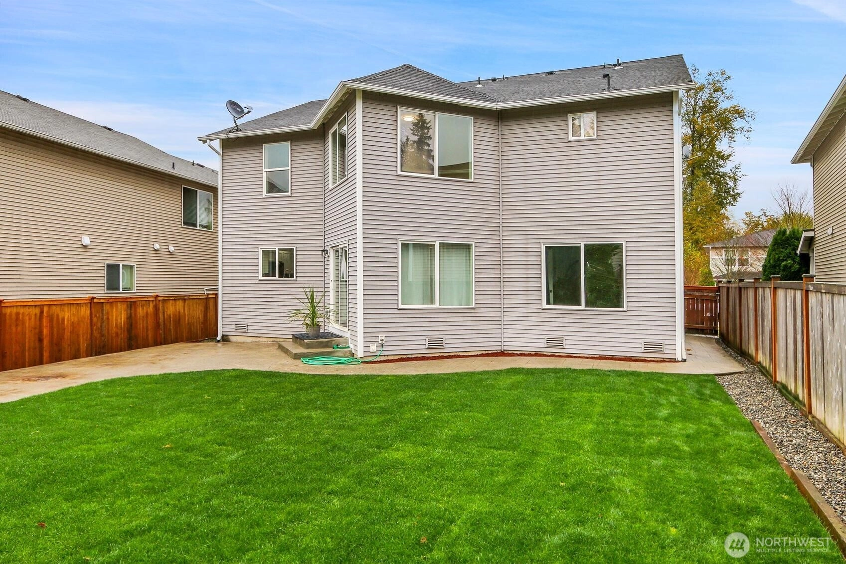 Move-In Ready with Modern Updates! Beautifully refreshed 4-bedroom home with a main-level bonus room offering the perfect space for an office, guest room, or play area. Fresh interior paint, new doors, trim, and carpet throughout give this home a crisp, modern feel. The spacious kitchen features abundant cabinetry, granite counters, stainless steel appliances, and an island. Plus gas heat with the potential to upgrade to a gas stove. Durable laminate flooring provides warmth and easy maintenance. Upstairs, the primary suite impresses with dual closets and a private bath. Enjoy a fully fenced backyard with a patio ideal for entertaining or relaxing. Conveniently located near parks, schools, shopping, and I-5 access.